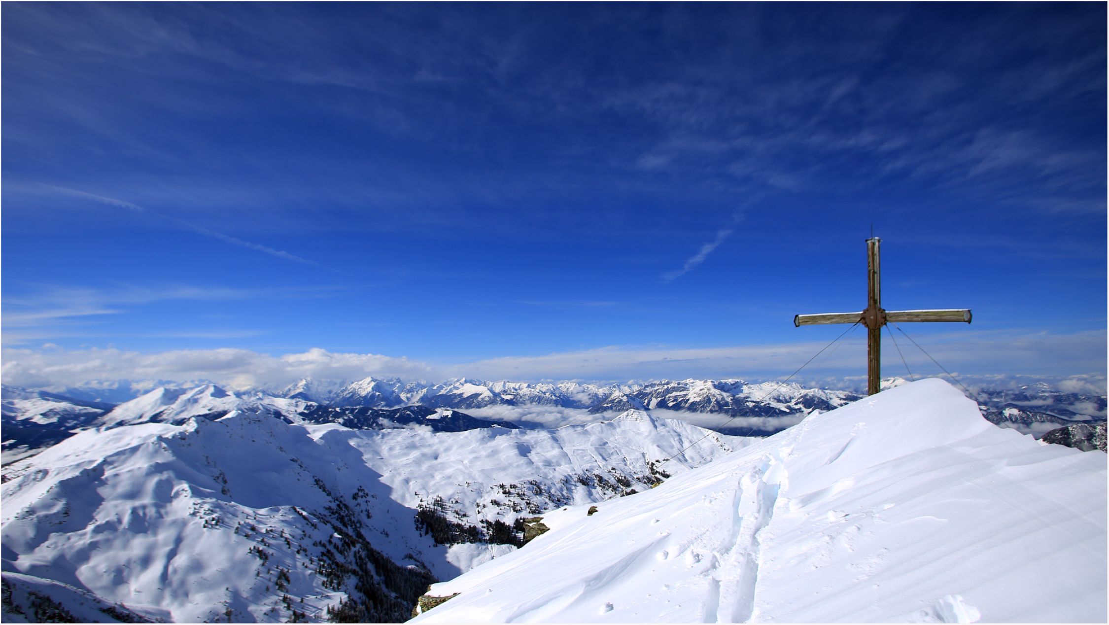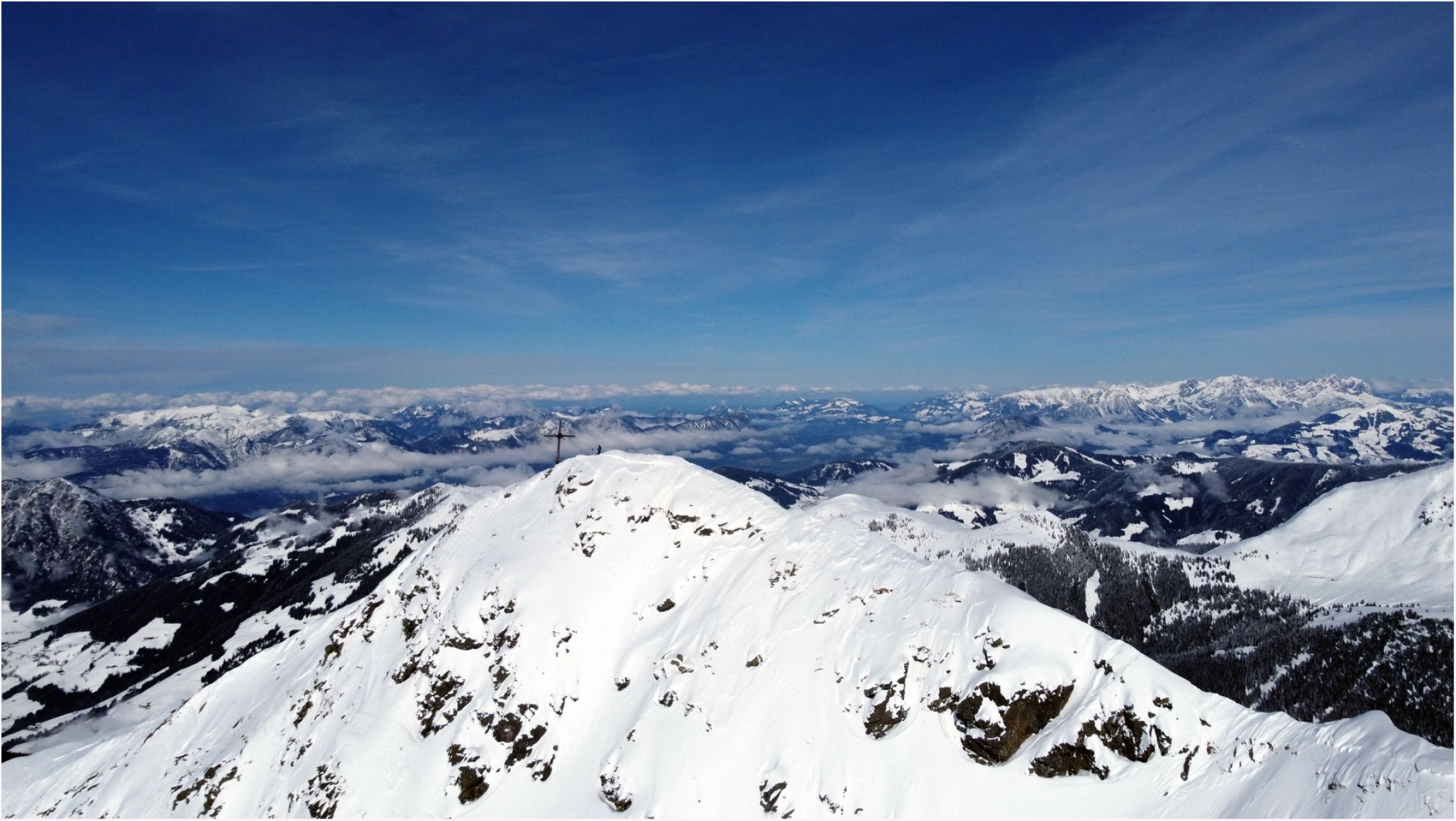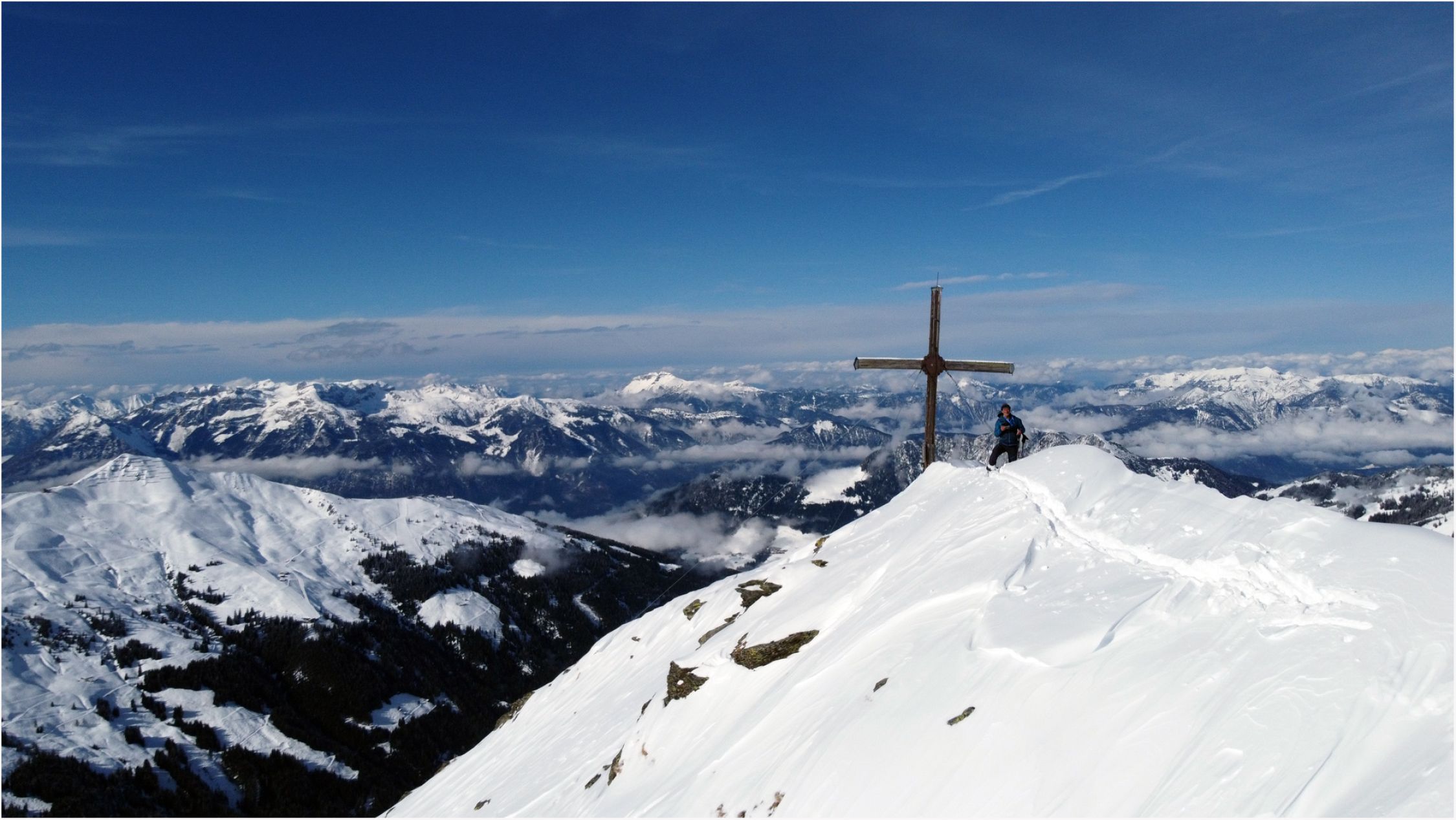 Ab hier leider sehr mühselige Spurarbeit über die beiden Framkehralmen und weiter an den Grat und über diesen zum Gipfel. Sehr viel Schnee, teilweise bis zu 50cm vor allem dort, wo der Wind was hingeweht hatte. Besonders mühselig ab Gratbeginn, weil besonders grundlos. Gipfelschneefeld ging dann wieder etwas besser.