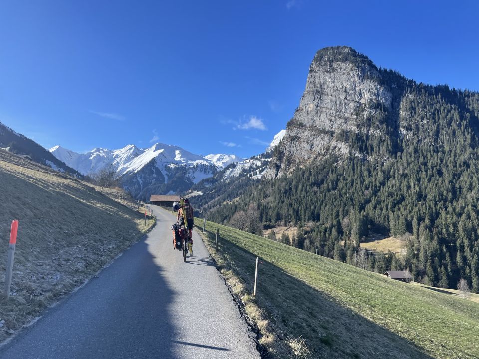Mit dem Velo bis 1500 m. Man kann aber auch schon bei der Brücke starten, manche sind auch schon von Hindere Fildrich mit Fellen los und bis dahin abgefahren. Ausgeholt über Alpstrasse, da Bachroute wohl z.T. aper. Leider ist die Alpstrasse bis Mittelberg schon gefräst, so dass viele apere oder eisige Stellen da sind. Ins Obertal die direkte Aufstiegsvariante genommen, wobei heute die Hauptvariante entlang des Wanderweges war (sowohl im Aufstieg als auch in der Abfahrt, sah aber auch gut aus). Gipfelhang ging gut ohne Harscheisen, teilweise windgepresster Pulver. Oben kam dann der kalte Wind dazu.