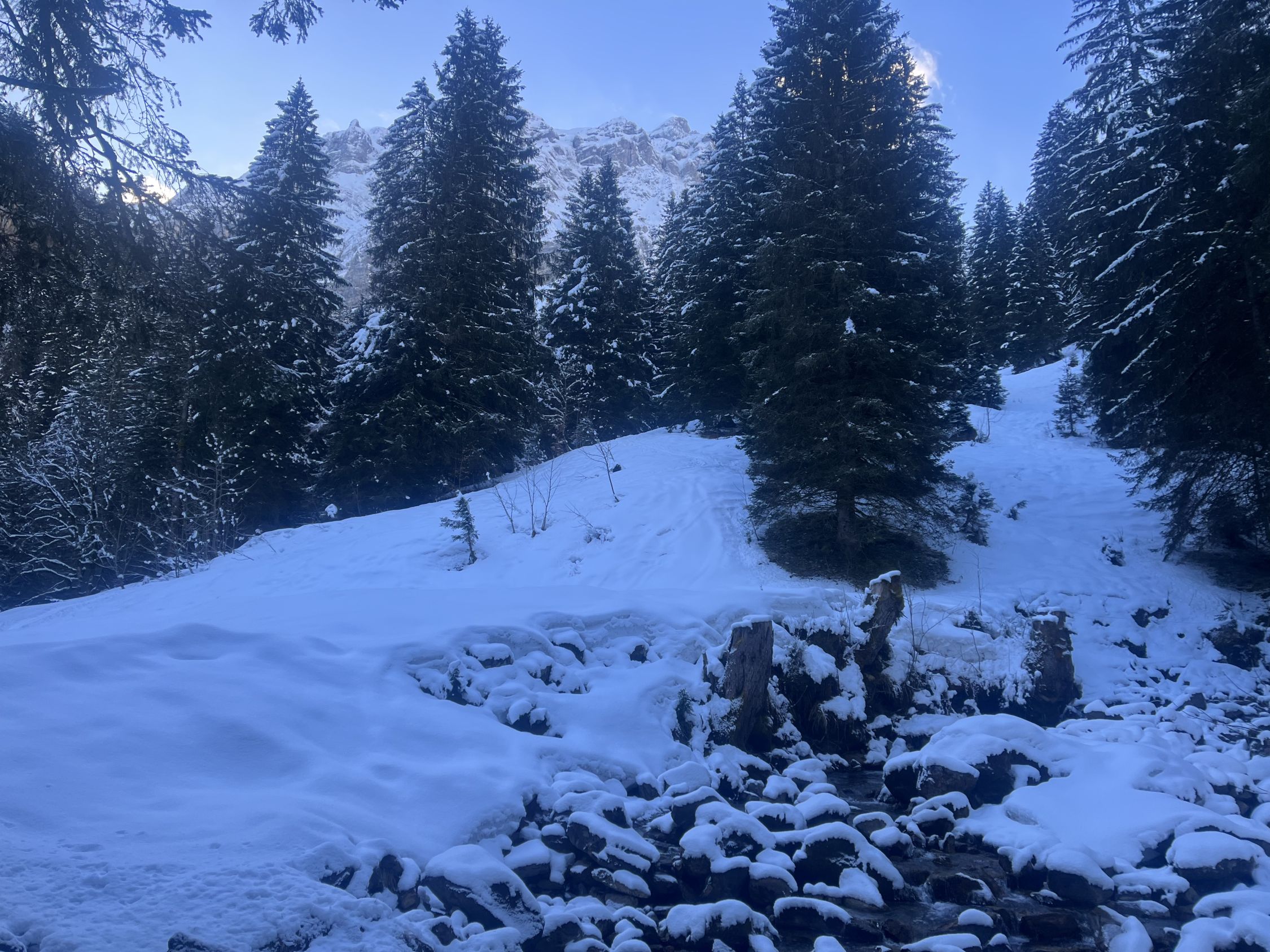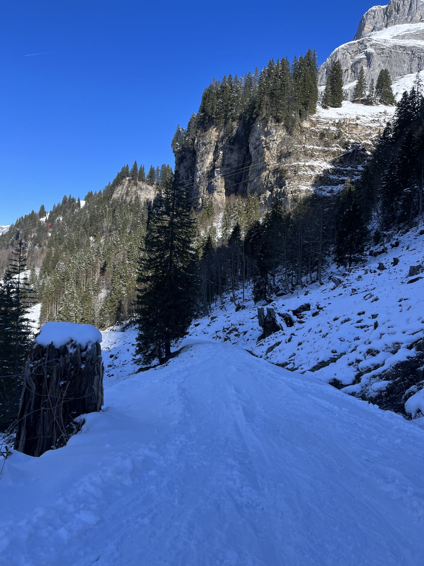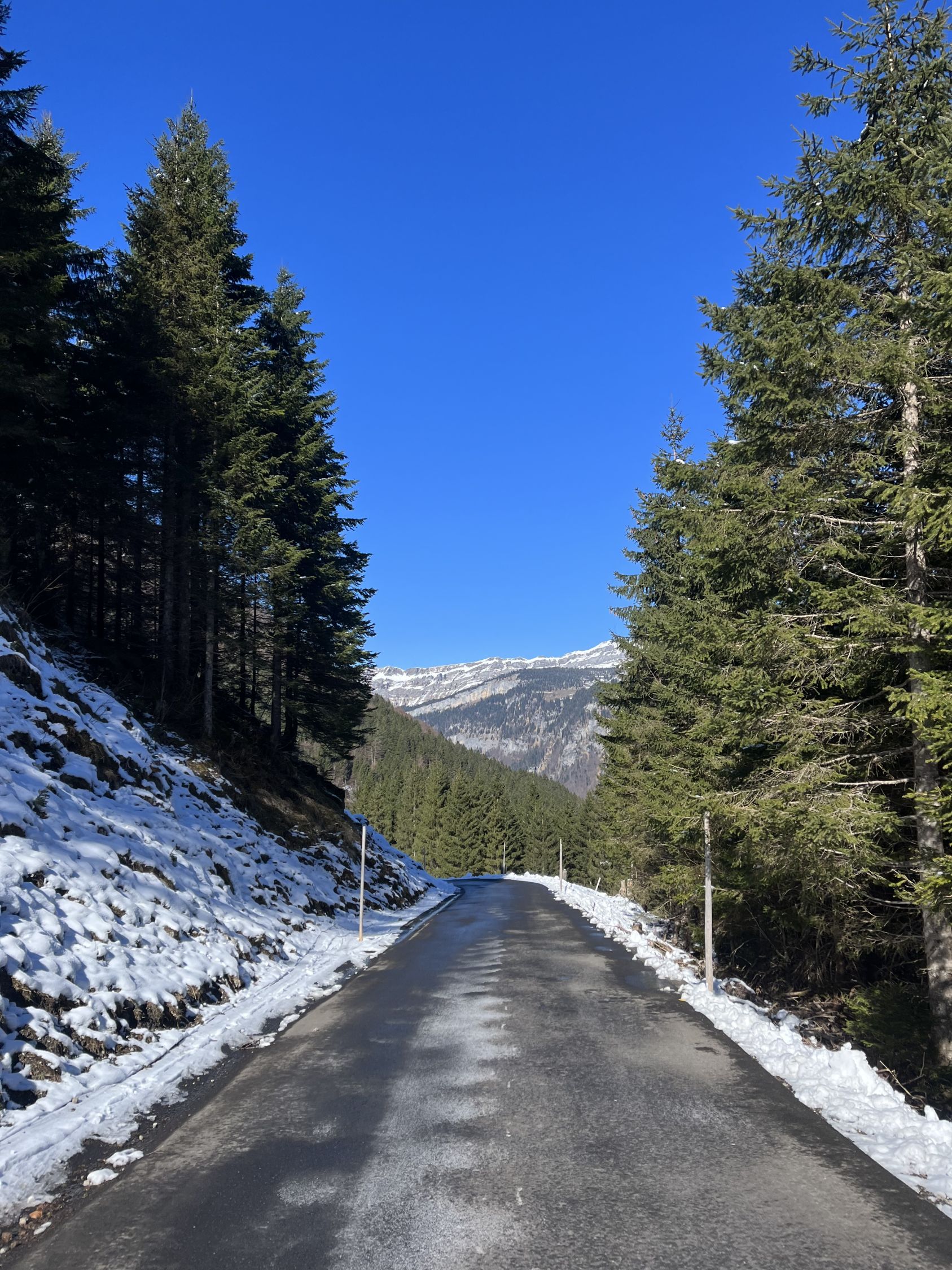 Strasse bis Sali ohne Schnee und durch den Ruosalper Wald auch eher wenig.