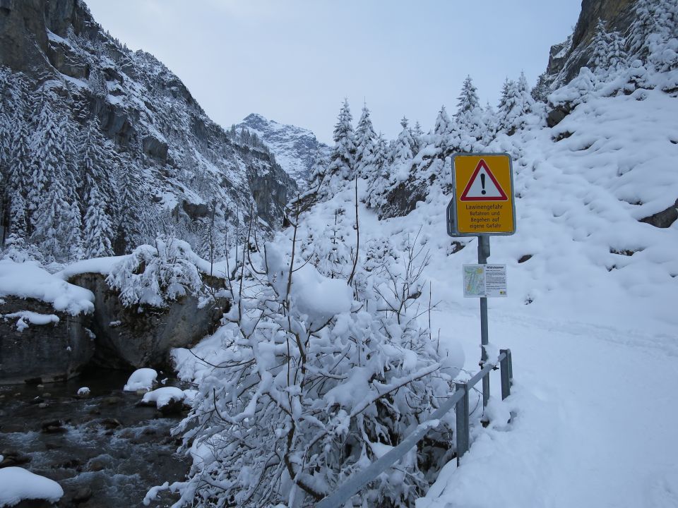 Das ganze Gebiet ist gut eingeschneit. lawinengefahr beachten! Zurzeit noch viel von der Route im Schatten.