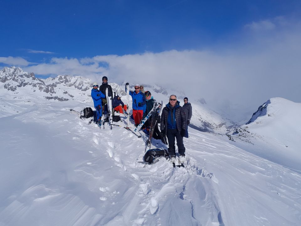 Alle 11 glücklich auf dem einsamen Gipfel 2752m. Wunderbarer Blick westwärts auf die unberührte Winterlandschaft, aufgenommen von Boris.