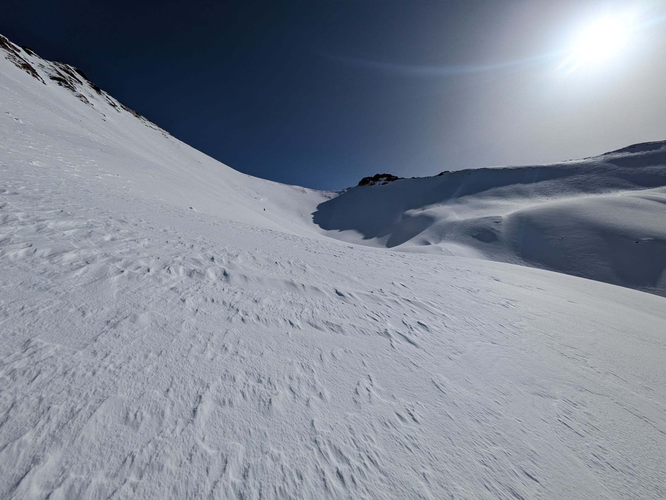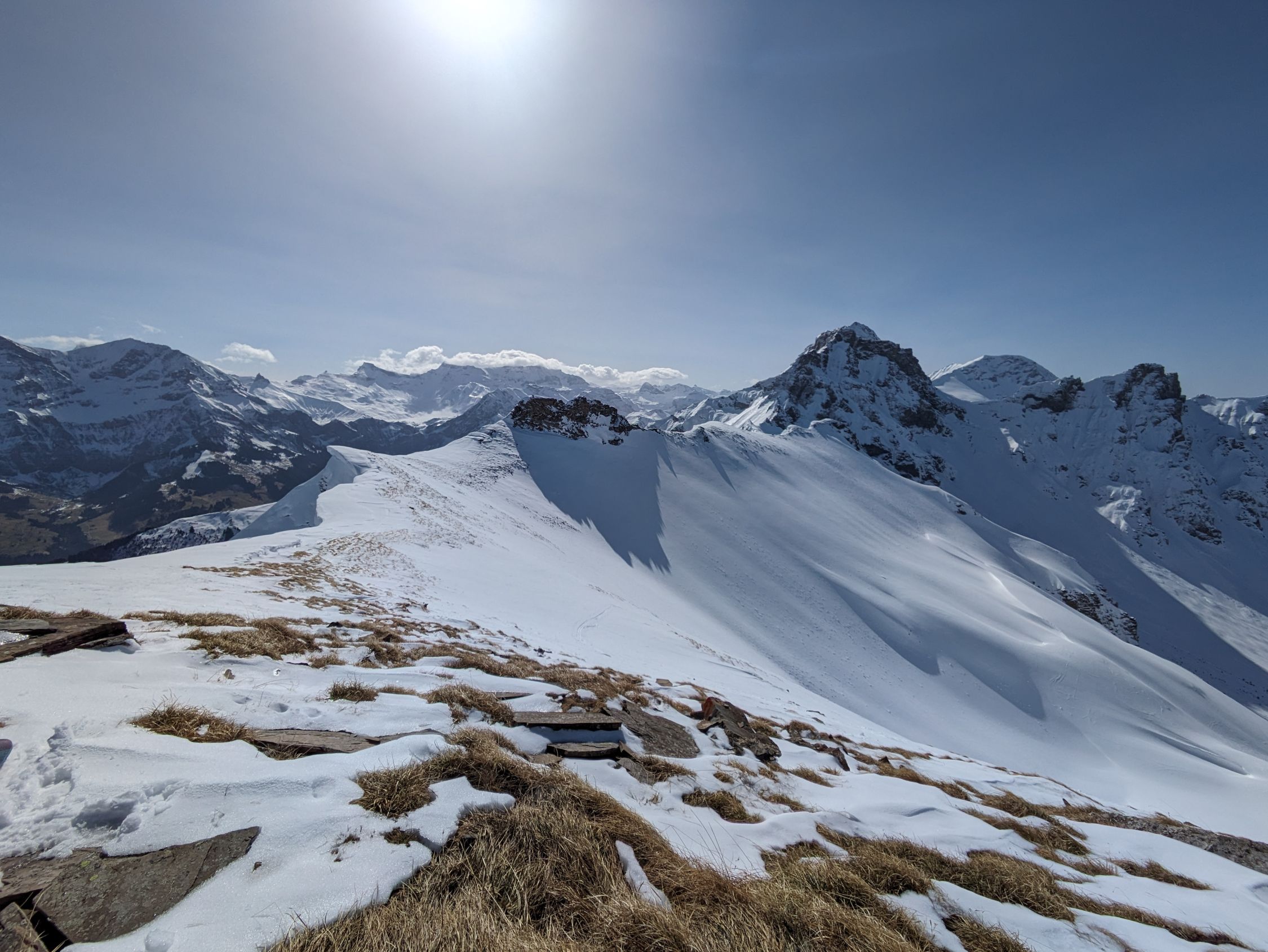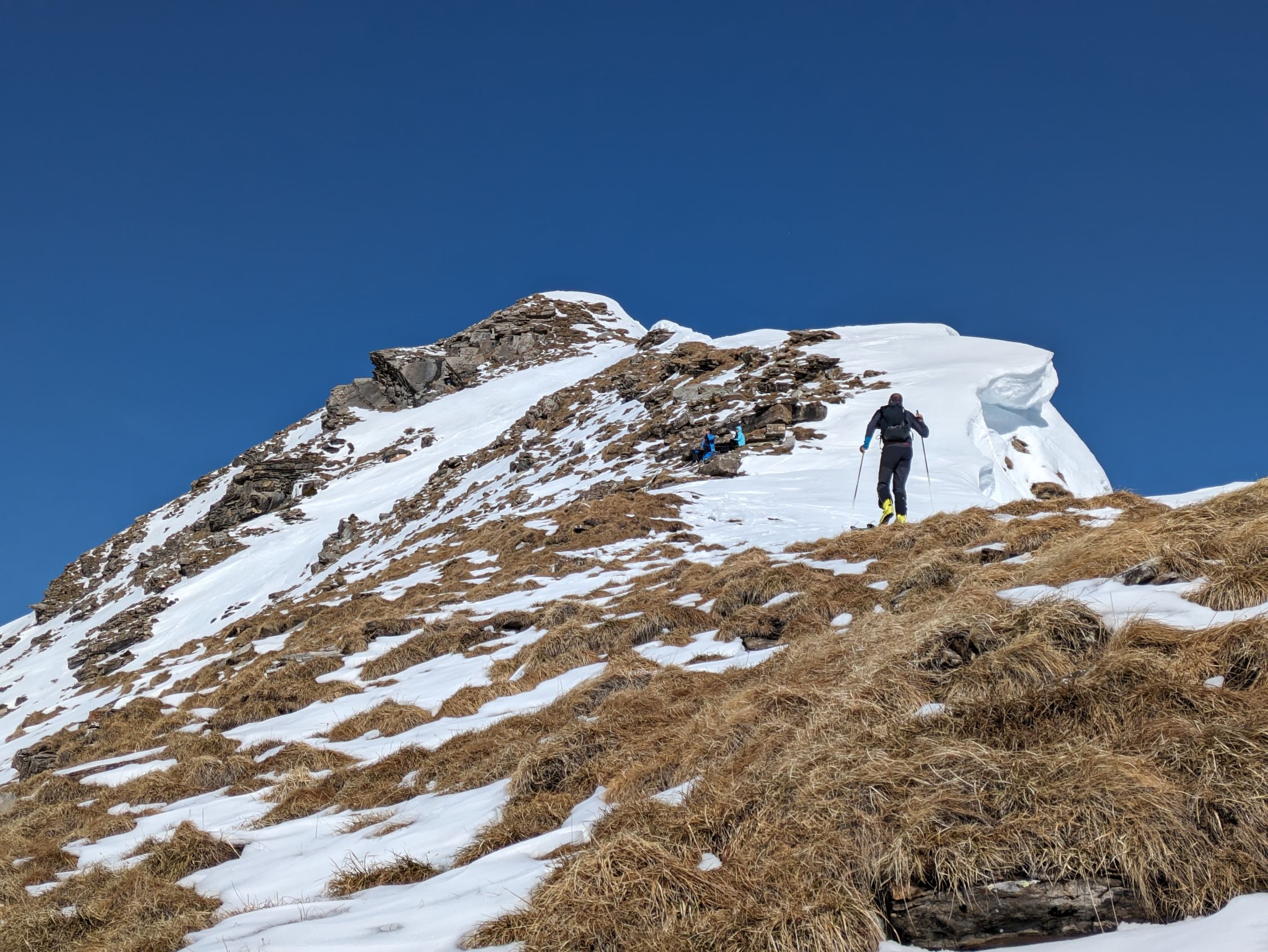 Wir sind heute nur zum Skidepot (ca. 2'370m) gegangen und liessen den Gipfel aus. Die Besteigung ist aber möglich und wurde heute auch gemacht.