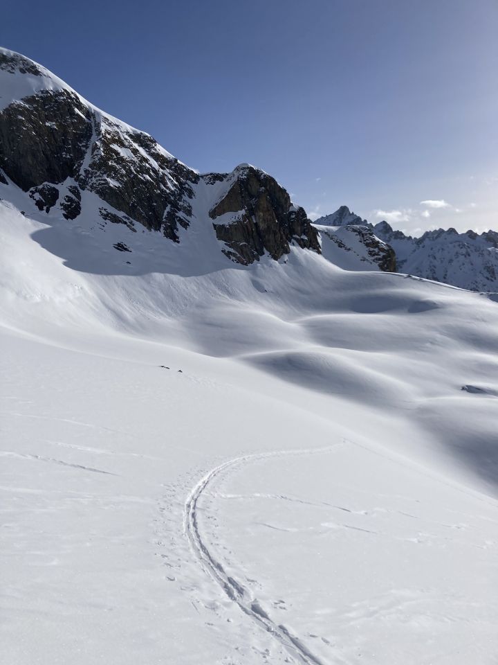Schnee hat es ab Gorezmettlen bis zum Skidepot genügend. Aufstieg durch das Couloir bei Wissgand ging gut, obwohl es relativ viele Abfahrtsspuren hat. Vom Skidepot auf den Gipfel, liegt an gewissen Stellen mässig viel Schnee. Ein Pickel und die Steigeisen haben da Abhilfe geboten. Aufgrund der warmen Temperaturen, war die Abfahrt kein schmaus. Daher das "machbar". Oben schon gut verfestigter Pulver. Ab ca. 2250 wurde der Schnee dann ziemlich pappig und anstrengend. In der Talsole der Chlialp gabe es noch etwas Sulz.