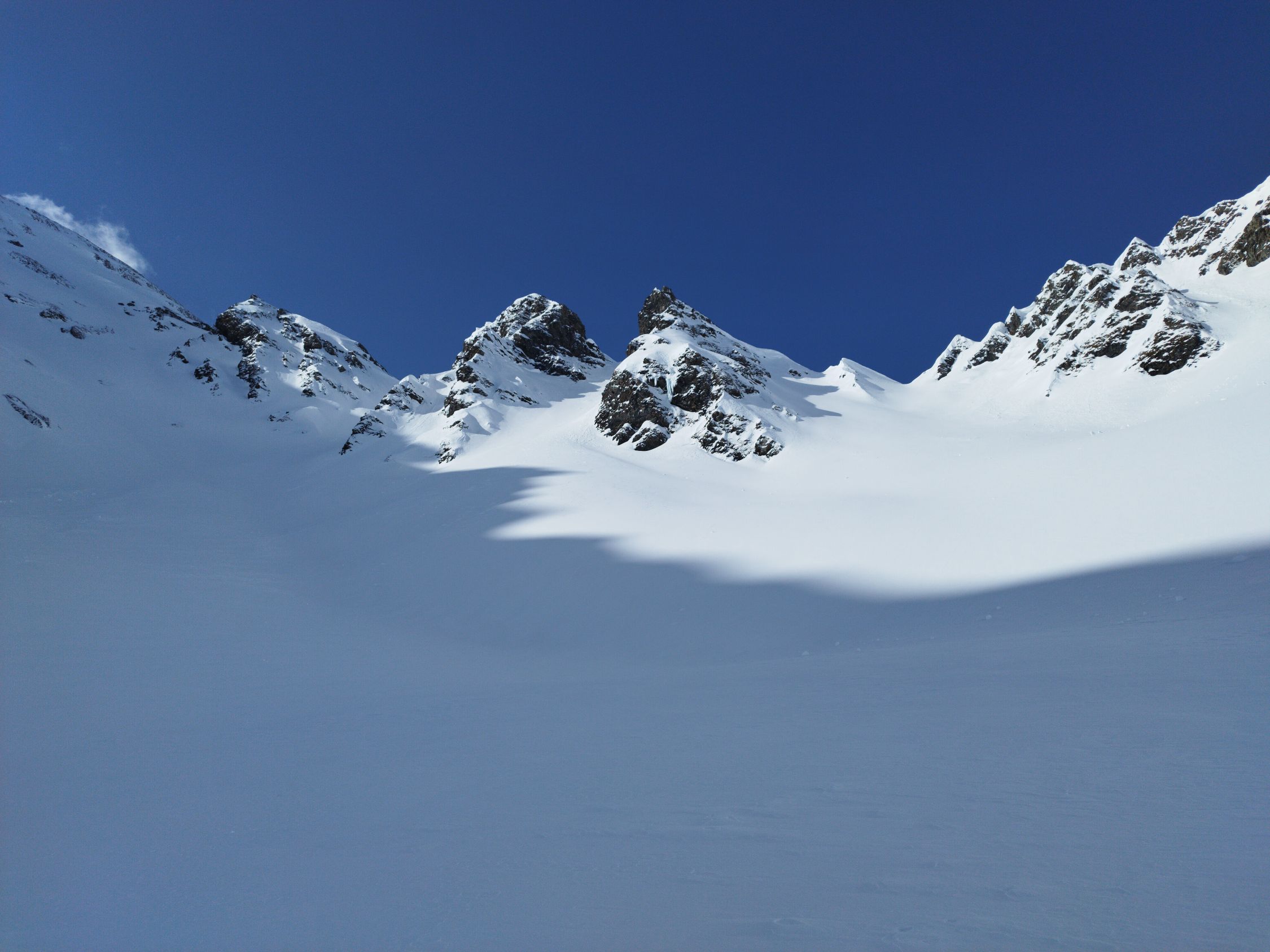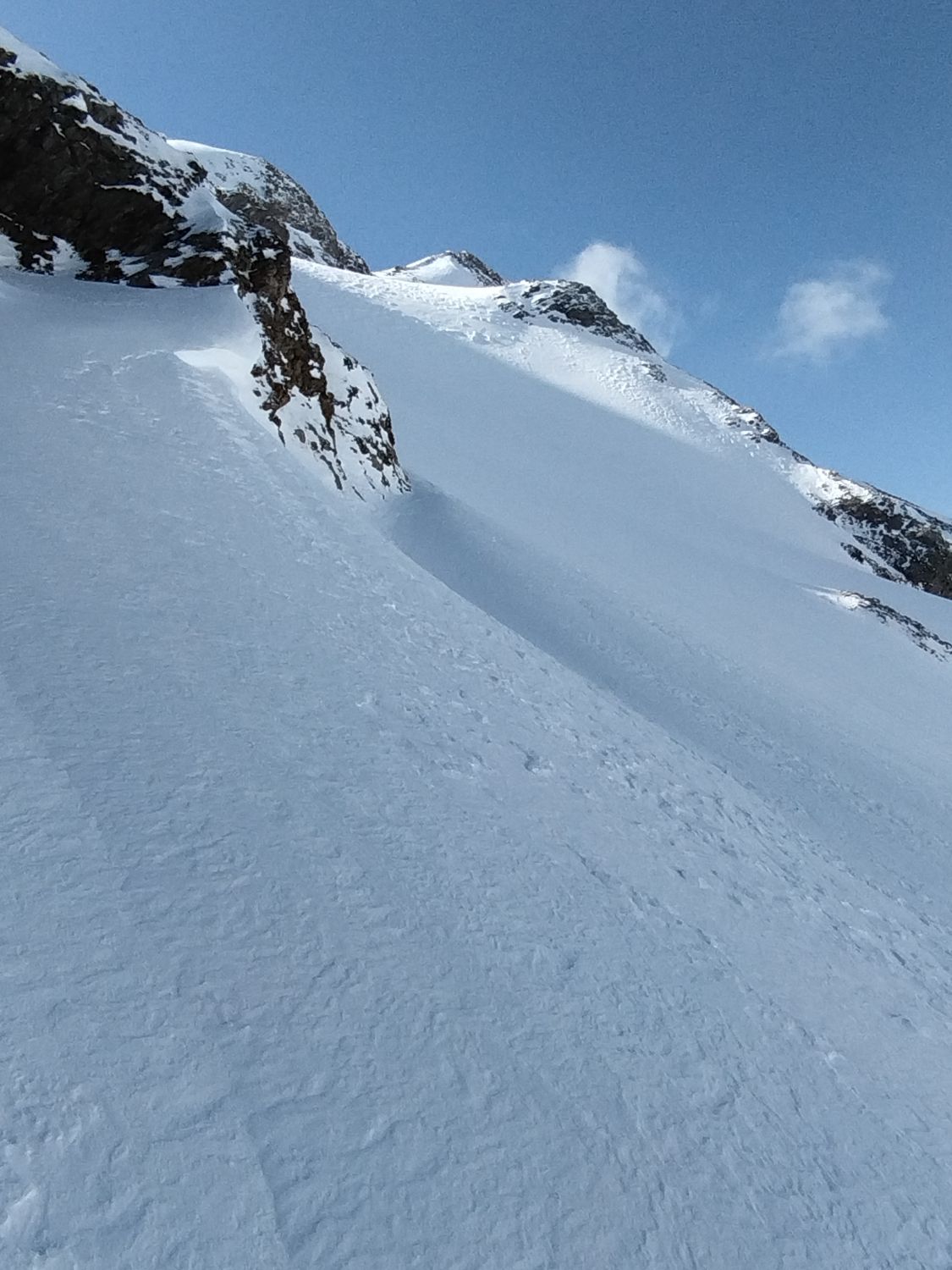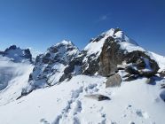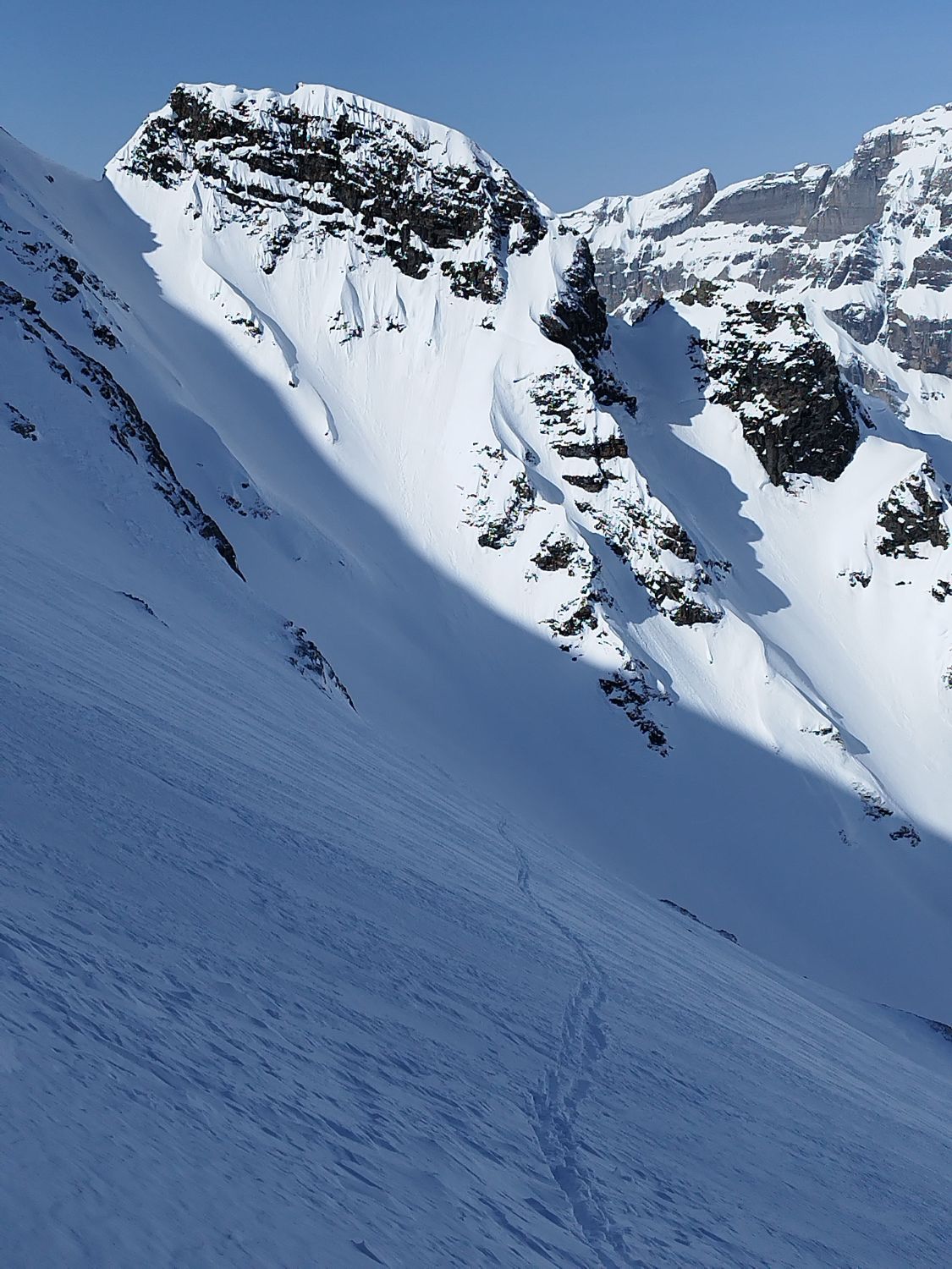 Vorab die Überschreitung habe ich nicht gemacht. In den "Nordwänden" (für mich gibt es keine Wände nur Flanken aber hat sich im alpinen Sprachgebrauch etabliert) von Hinter Schloss und Vorder Schloss fehlt definitiv der Schnee. Ziemlich abgeblasen die ganzen steilen Nordflanken wo der Wind sehr oft über den Surenenpass bläst. Von Brüsti nach Waldnacht fehlte auch der Schnee, so dass ich dort das aller erstemal zu Fuss den Waldweg runterlaufen musste. Es schien zwar den ganzen Tag die Sonne aber es windete auch ziemlich arg und somit bin ich ohne Pause aufgestiegen. Zur Überraschung es war windstill auf dem Gipfel. Es war eine einsame Tour und Spuren hat es überhaupt gar keine gehabt. Meine einzigen Bedenken waren Triebschneeansammlungen auf dieser Tour in den oberen sehr steilen Bereichen/Kuppen. Aber letztendlich war alles entspannend. Ab Pkt 2775m war Skidepot. Der Punkt 2872m war sehr gut in der steilen Südflanke mit tollen Tiefblicken zu umgehen. Mit dem Einsatz des Pickels ist man auch wieder auf den Grat gekommen. Dort war es kurzeitig über 60 Grad steil und ich musste mich dort regelrecht auf den Grat hochwühlen. Bis zum Gipfel zieht es sich dann noch ziemlich am Grat entlang. Am besten immer einen gebührenden Abstand zu den Monsterwechten halten. Ich brauchte hin und zurück über 1 1/2Std. Tolle Tour wenn man die Überschreitung machen kann ohne nochmals den Rückweg zum Skidepot machen zu müssen. Der Rückweg war durch die jetzt vorhandenen Spuren einiges angenehmer. Press Powder zu Anfangs in der Abfahrt machte die Schwünge nicht locker flockig aber dennoch im geniessbaren Bereich. Ab Guggitaler Schnee harter Schnee der pistenähnliches Abfahren ermöglichte. Und zu guter letzt der ungewohnte Aufstieg zu Fuss zur Seilbahnstation Brüsti.