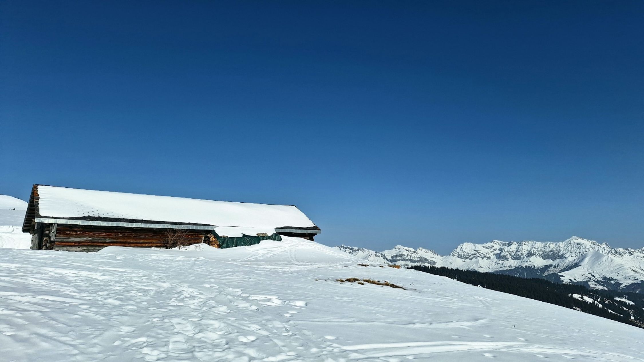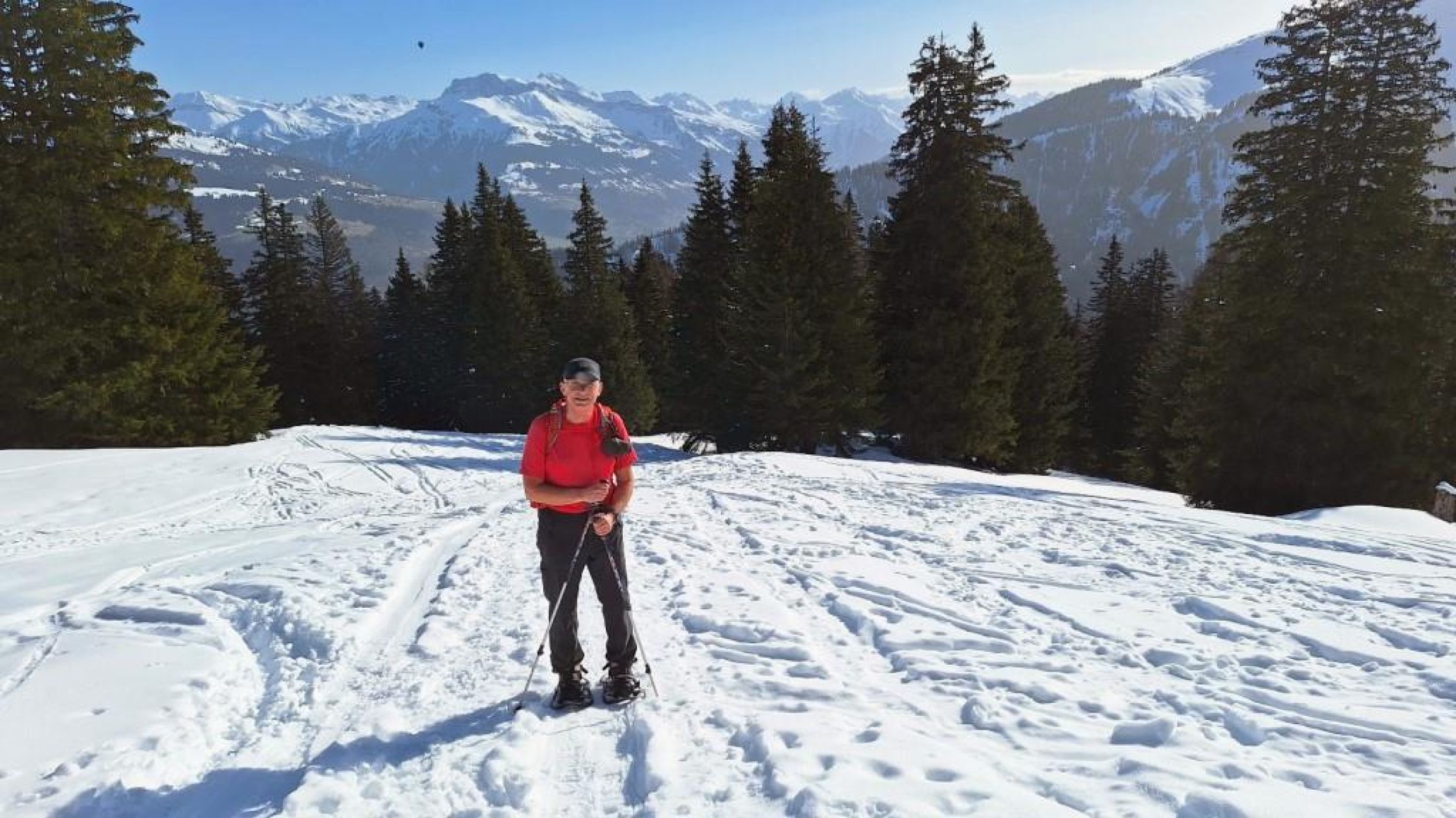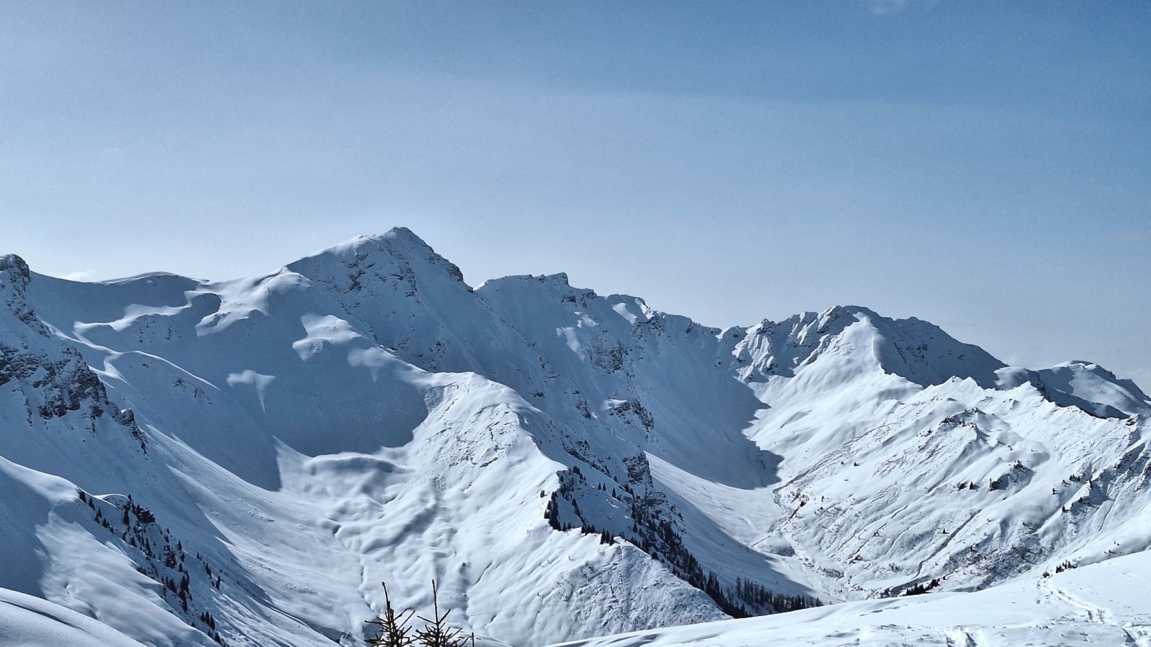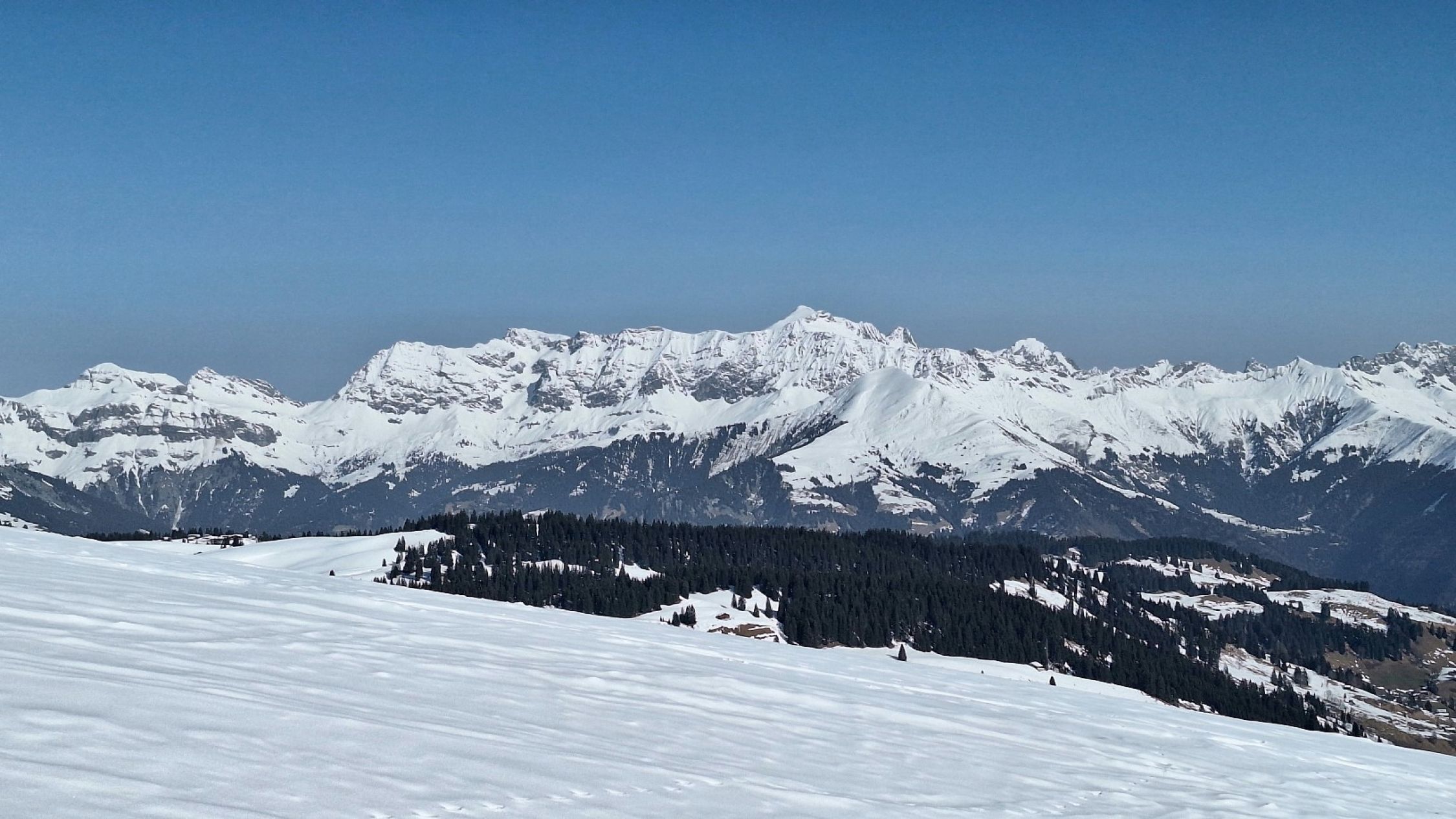 Die Route war erwartungsgemäß gut gespurt. "Im grüenen Wald" im unteren Teil ein paar Stellen unter Bäumen, wo wenig Schnee lag. Ansonsten sehr gute Schneelage im Gebiet mit Nord- oder Ostexposition.