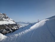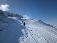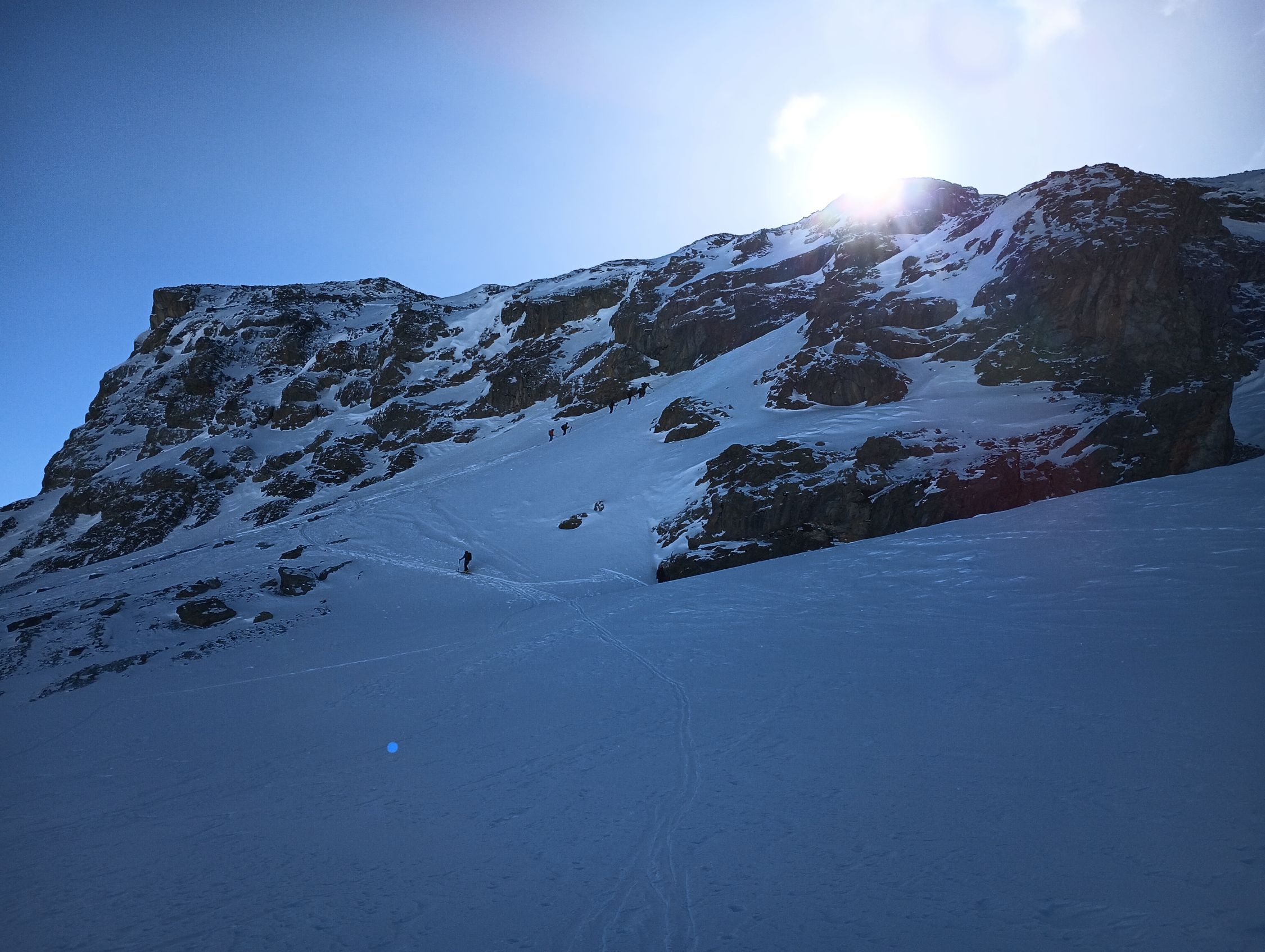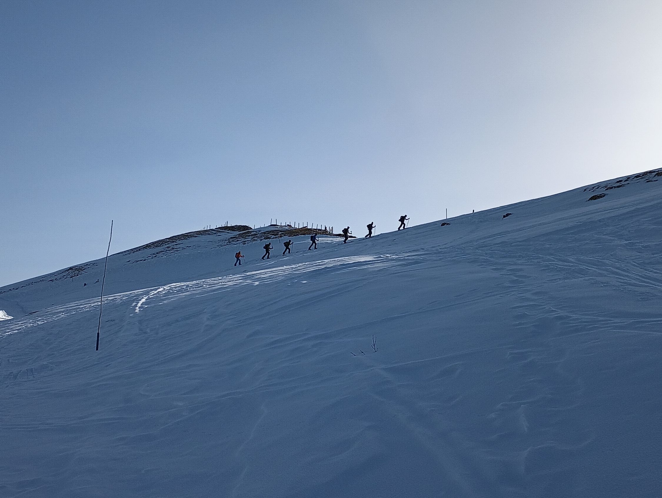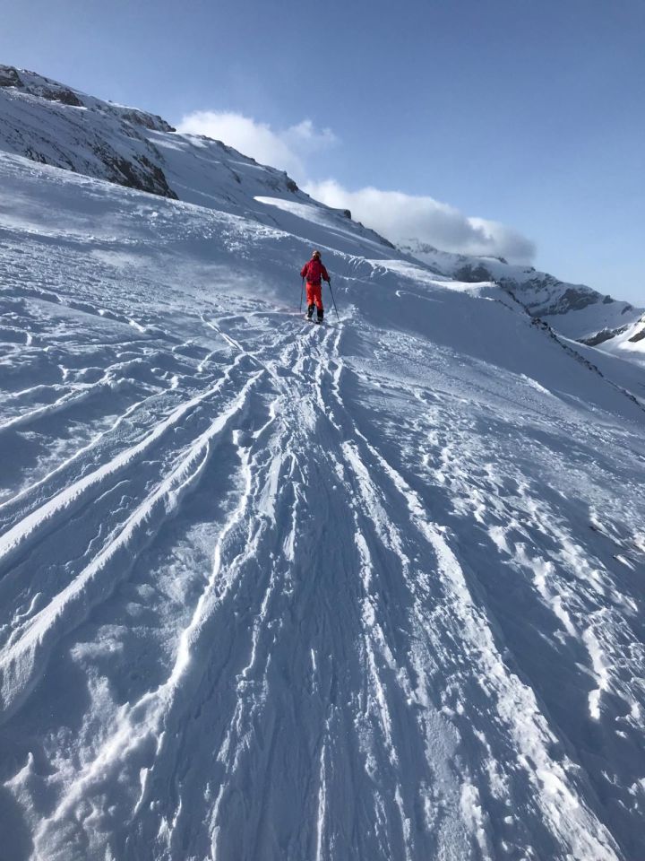 Ich bin mit dem Splitboard unter den Füssen auf dem Gipfelgrat 30 m unter dem Gipfel ausgerutscht und 10 Meter in weichen Schnee runtergepurzelt. Kollege mit Schneeschuhen und andere Tourengänger, die Ski zurückgelassen haben, waren auf dem Gipfel. Ich mochte nach dem Ausrutsch nicht mehr auf windigen Gipfel hoch. Hat mir trotzdem Spass gemacht!