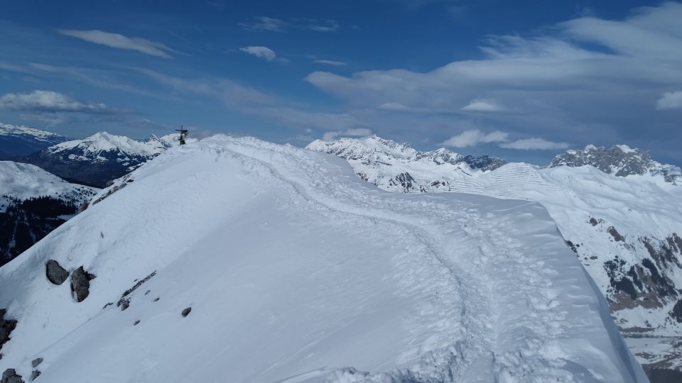3cm Neuschnee auf harter Unterlage. Gipfel Aufstieg oben leicht vereist in der Spur aber machbar ohne steigeisen. Extrem viele Leute im Gebiet 200+