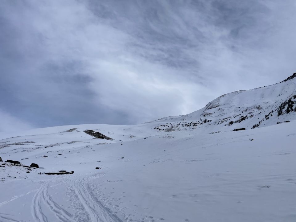 Fahrbar bis vorderste Chirel. PP schneefrei. Portage 20min bis zum Anfellen. Einzelne kurze Tragestellen im Wald. Ab ca 1900m wenig Pulver auf harter Unterlage, zT rutschig, wenig griffig. Schneelage etwas mager. Nordwestliche Expo in der Abfahrt schön in oberer Streckenhälfte