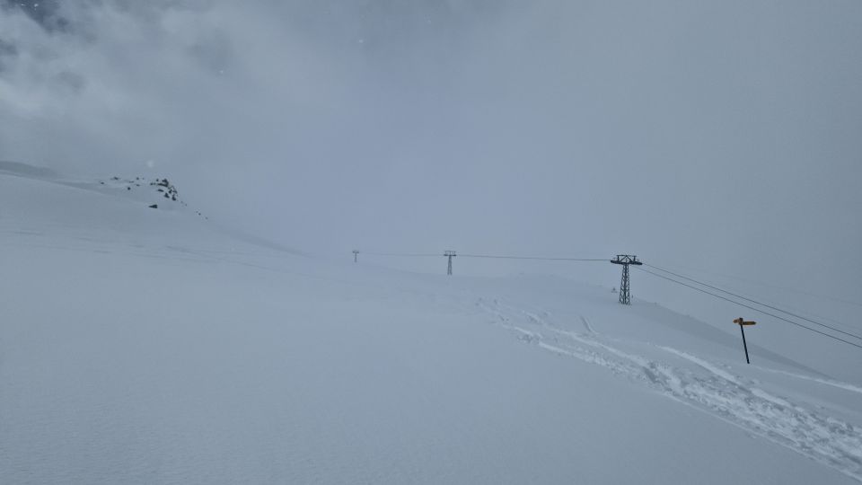 Viel Neuschnee (auf 2200m mind 30cm), aber sehr schwer und unten nass.