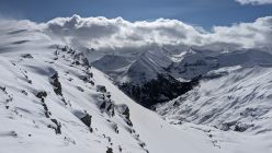 Schnee liegt ab ca. 1400 Meter. Die Cholschlagstraße ist bis hier frei, kleine Ausweichstelle für 2-3 Autos (Tamonserstraße von Vermol bis 1350 beim Älpli frei, Achtung Wildschutzgebiet). Bis Cholschlag Vorsäss noch Lücken in der Schneedecke, danach bis zum Gipfel durchgehend.