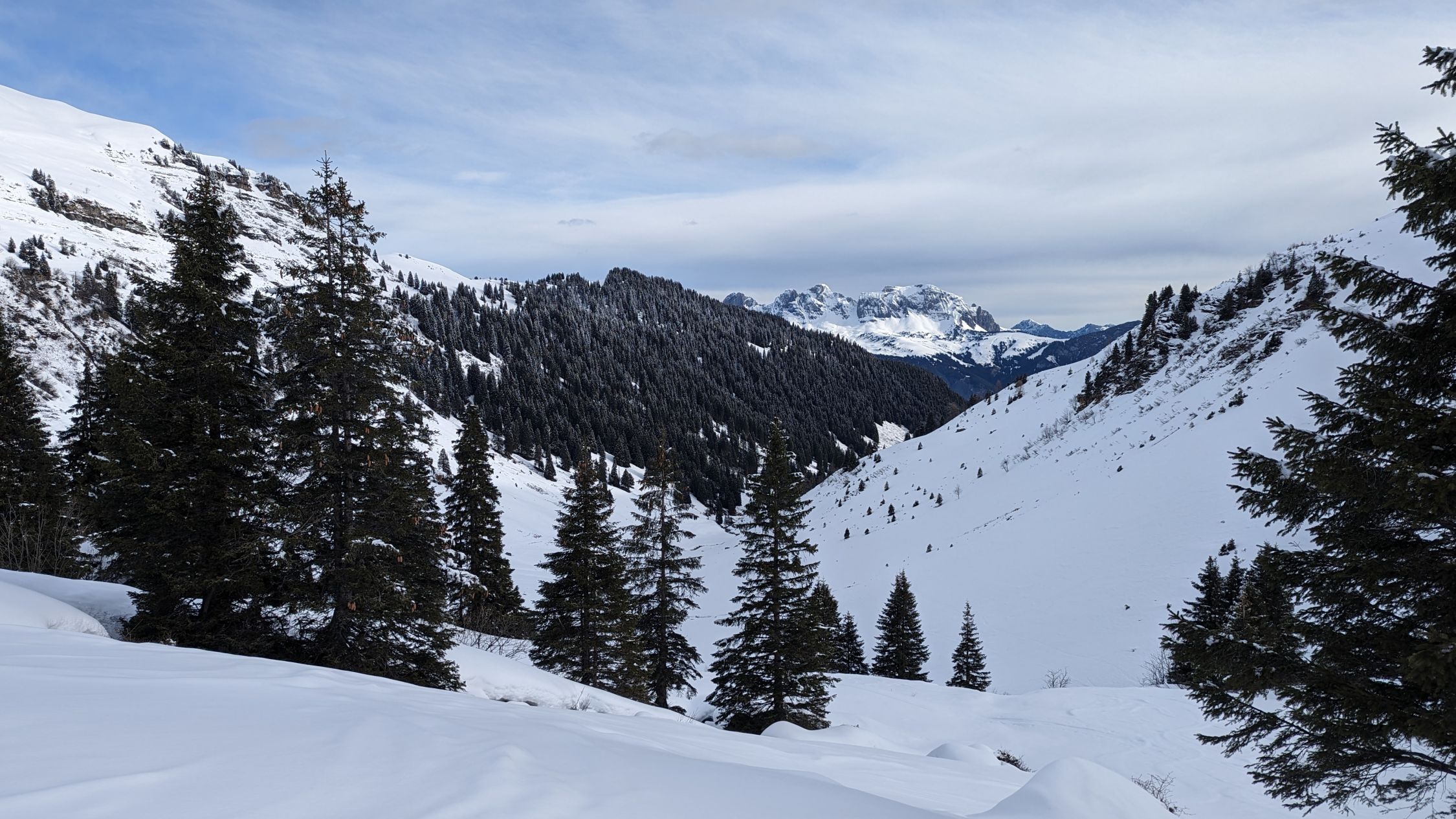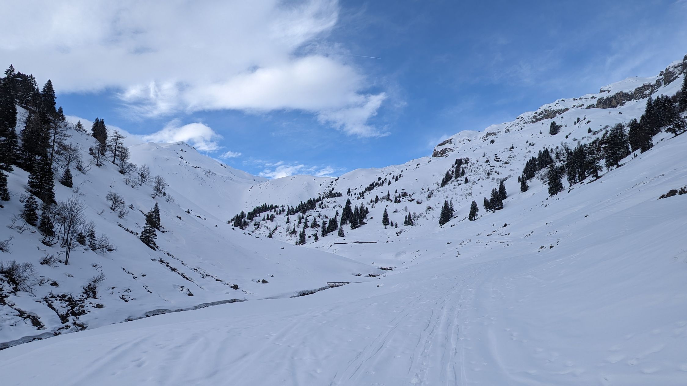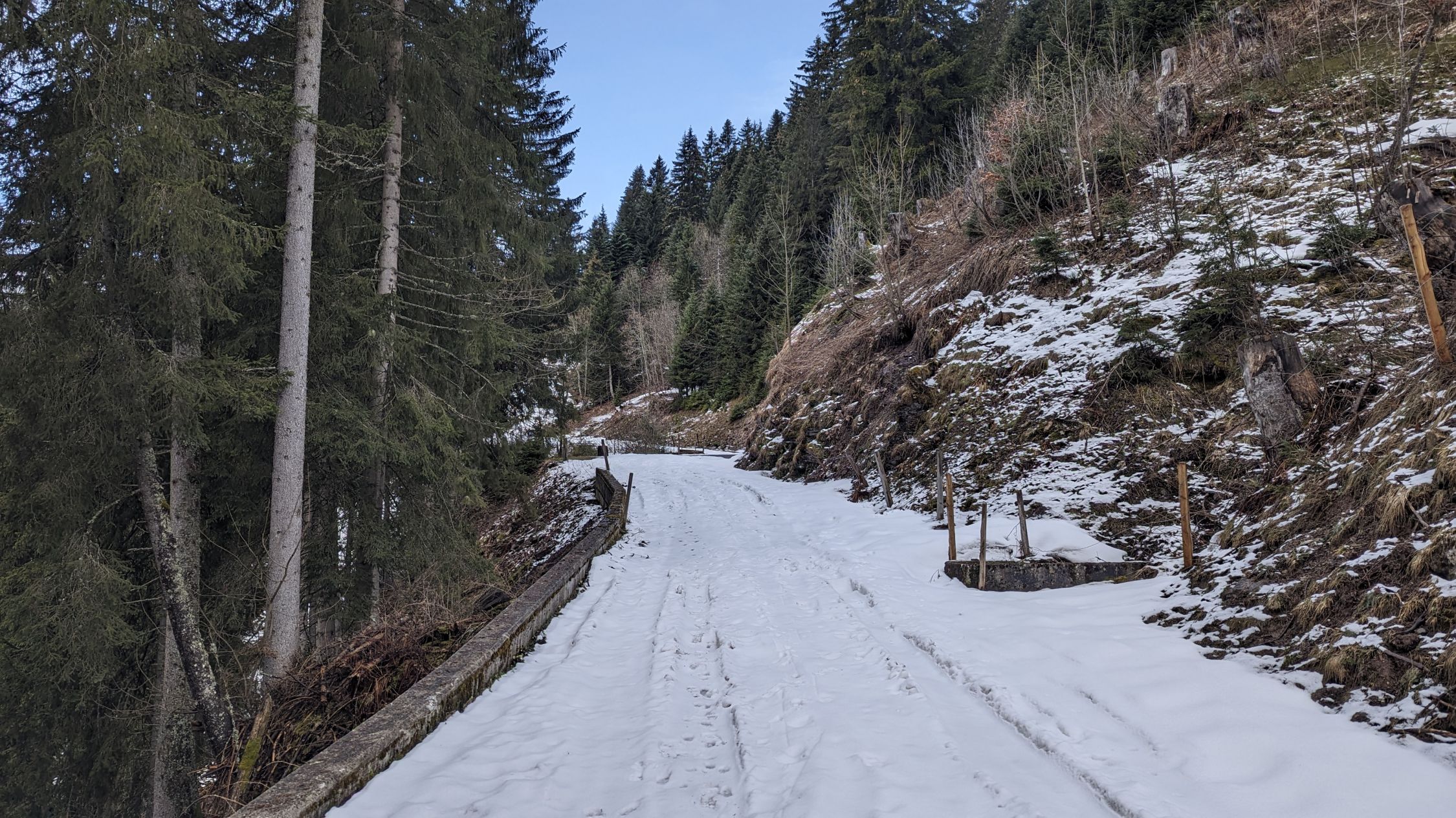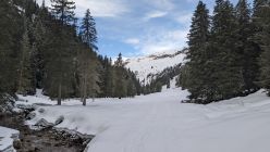 Bei solchen Verhältnissen ist die Tour wie beschrieben eher etwas für Liebhaber. Bei Schnee bis zum Parkplatz wäre das für mich eine wirklich empfehlenswerte Tour. Da sich die Sonne ein bisschen verzögert hat, habe ich mich doch hierfür entschieden, damit ich mal das Cholschlag kennen lernen kann. Der Fußabstieg war natürlich nicht so toll.