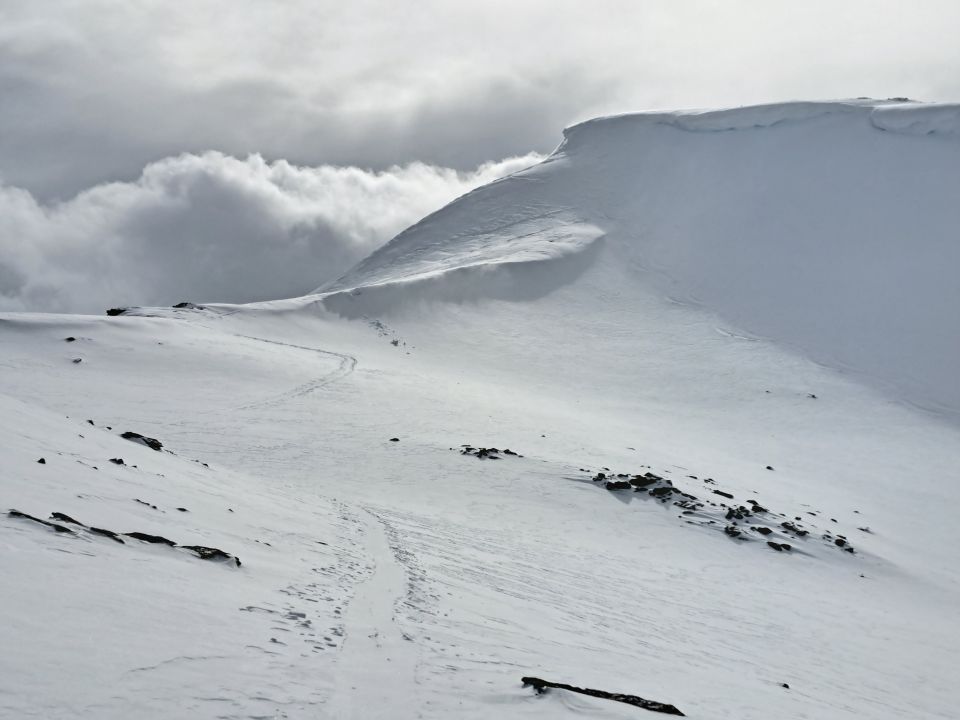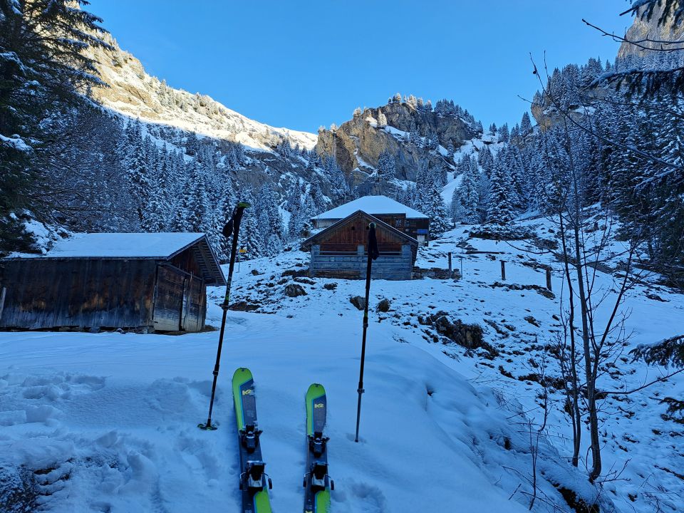 Ab Glütschnessli dann mit Ski und ab 1666m durchgehend Schnee im Aufstieg zuerst 5-10 cm Pulver und ab 2000m 10-20cm
