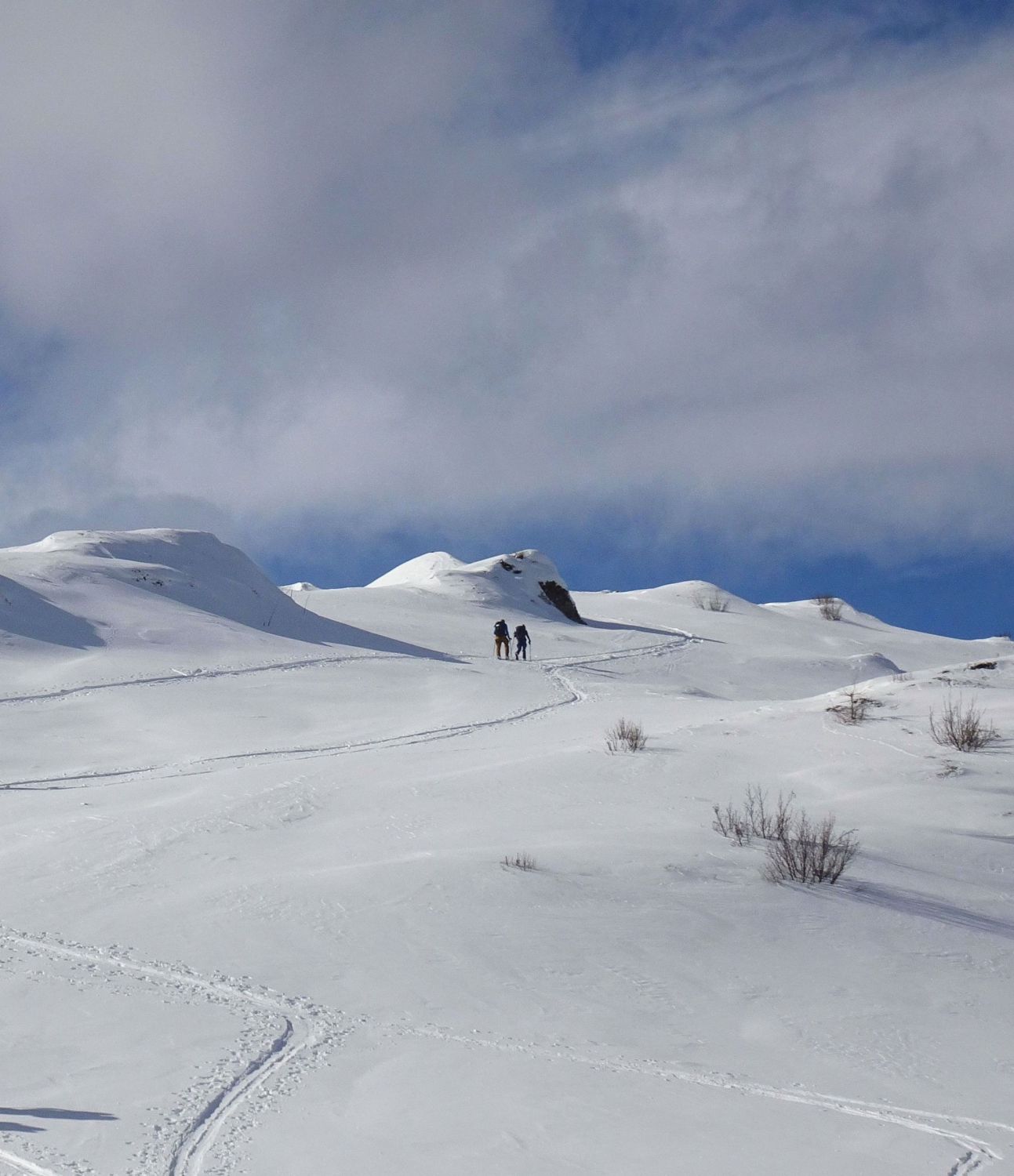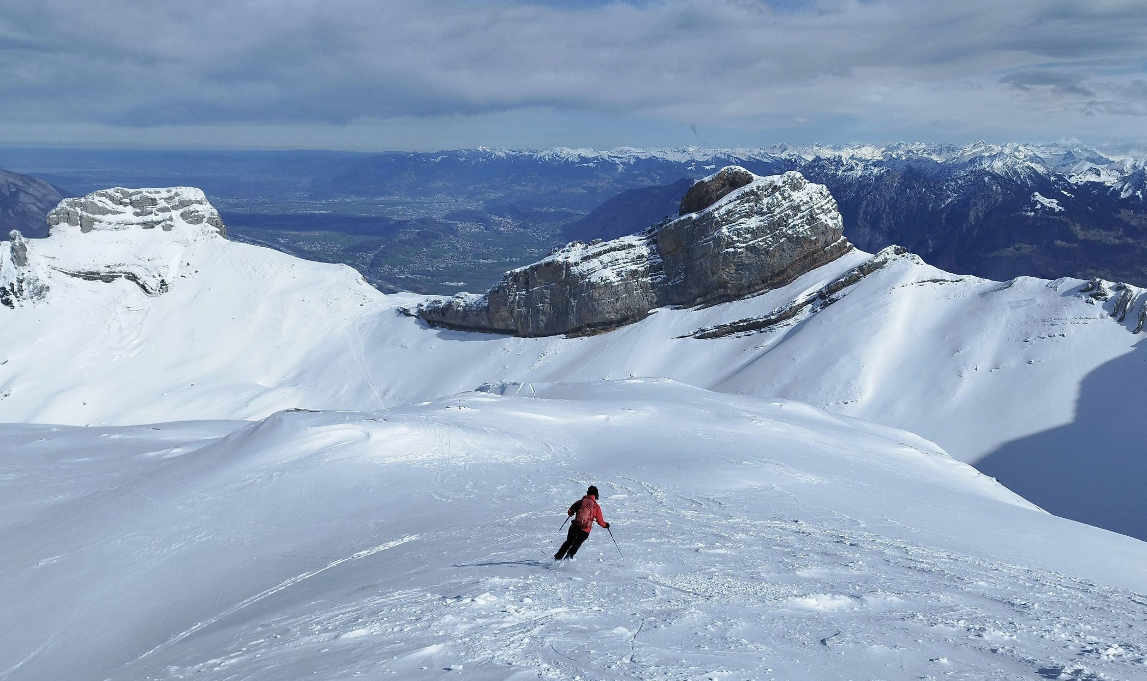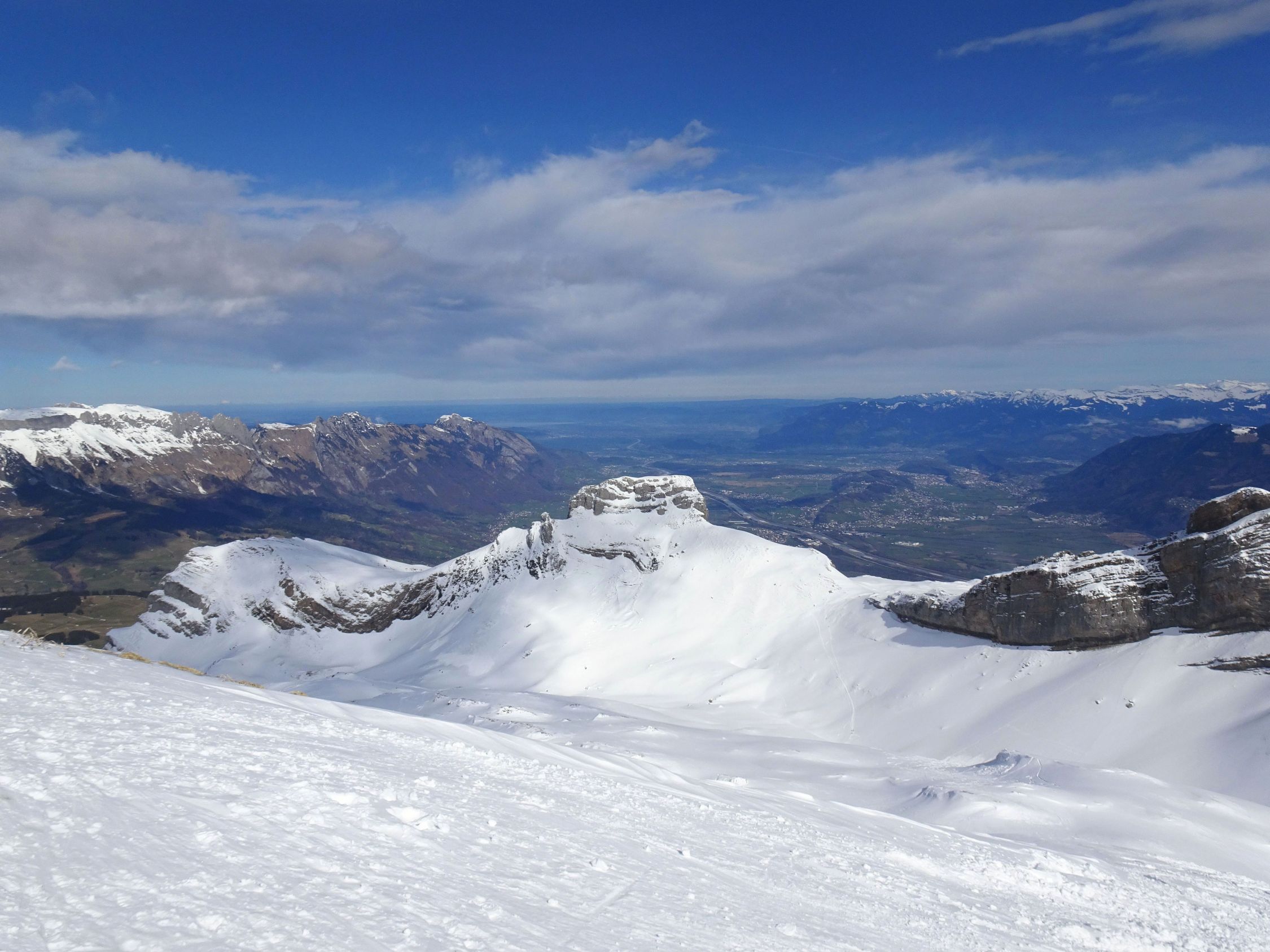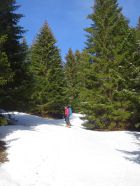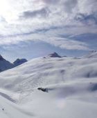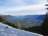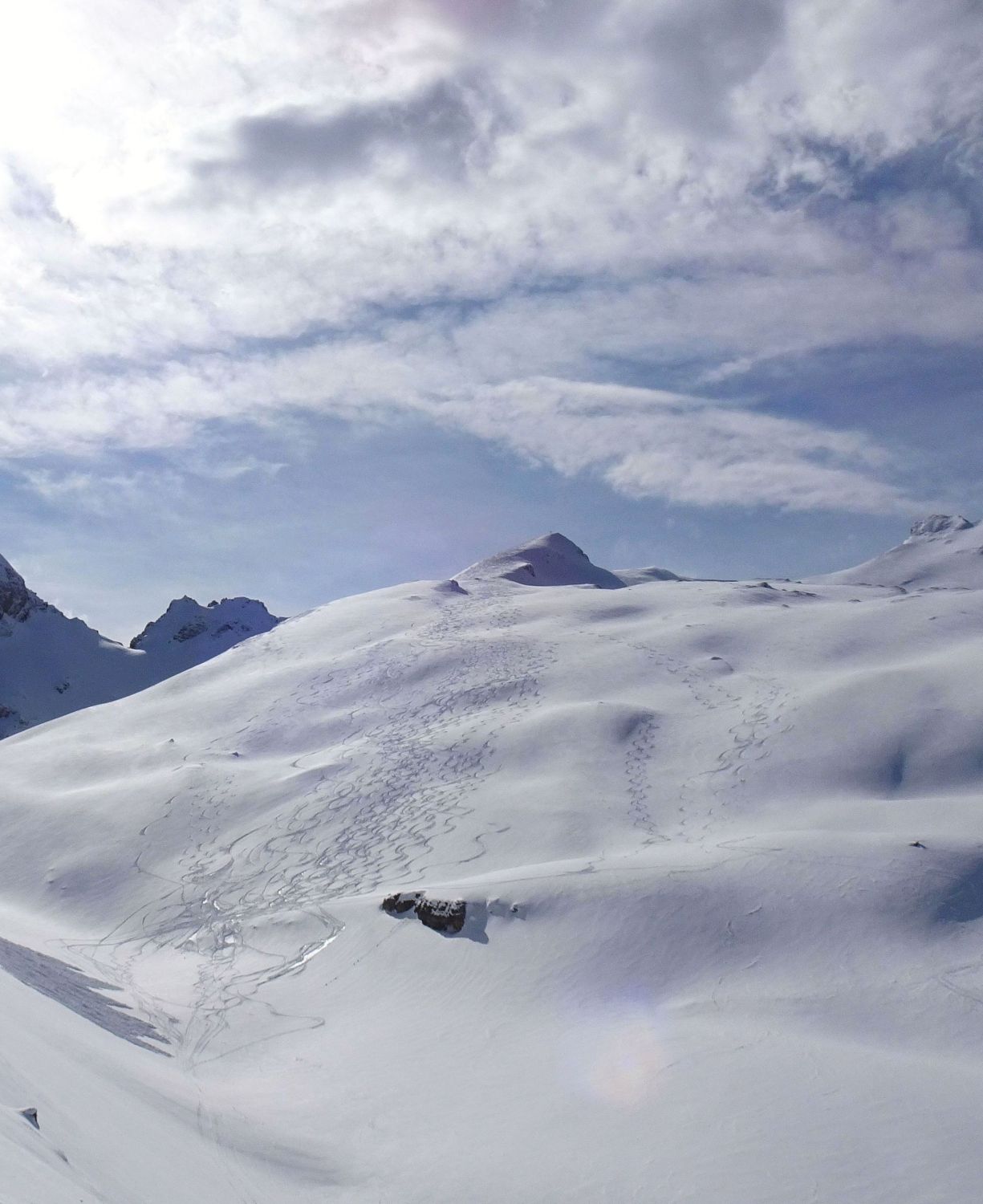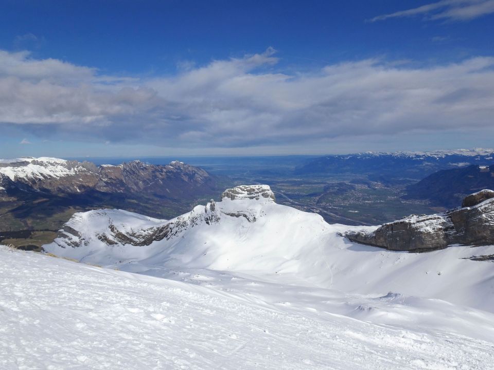 Abfahrt deutlich besser als erwartet, oben windgepresster Schnee, aber gut fahrbar. Trotz einiger Spuren noch genügend Platz vorhanden. Nach unten hin Schneedecke zunehmend feucht, teilweise firnartig. Insgesamt durchaus lohnend.