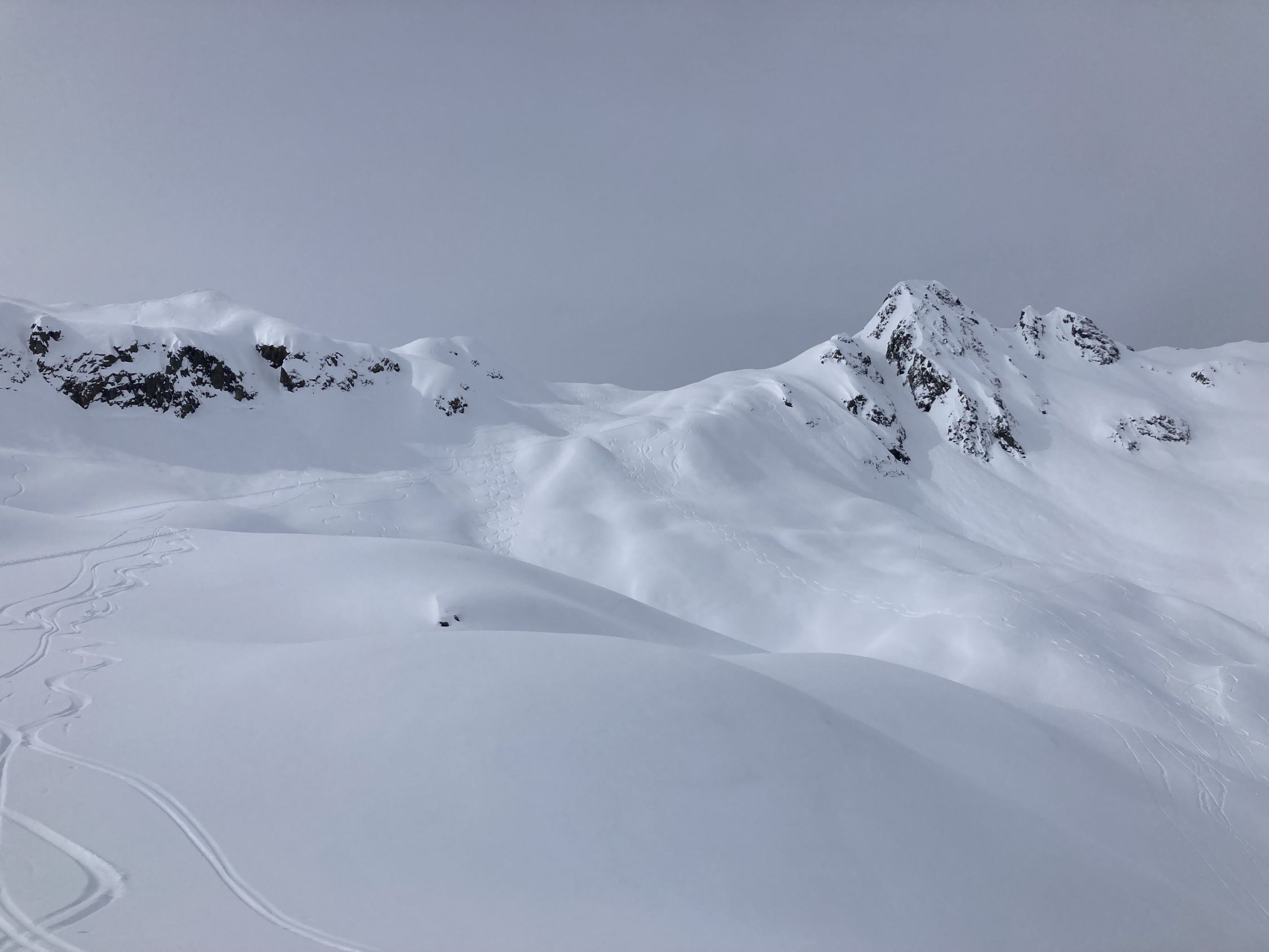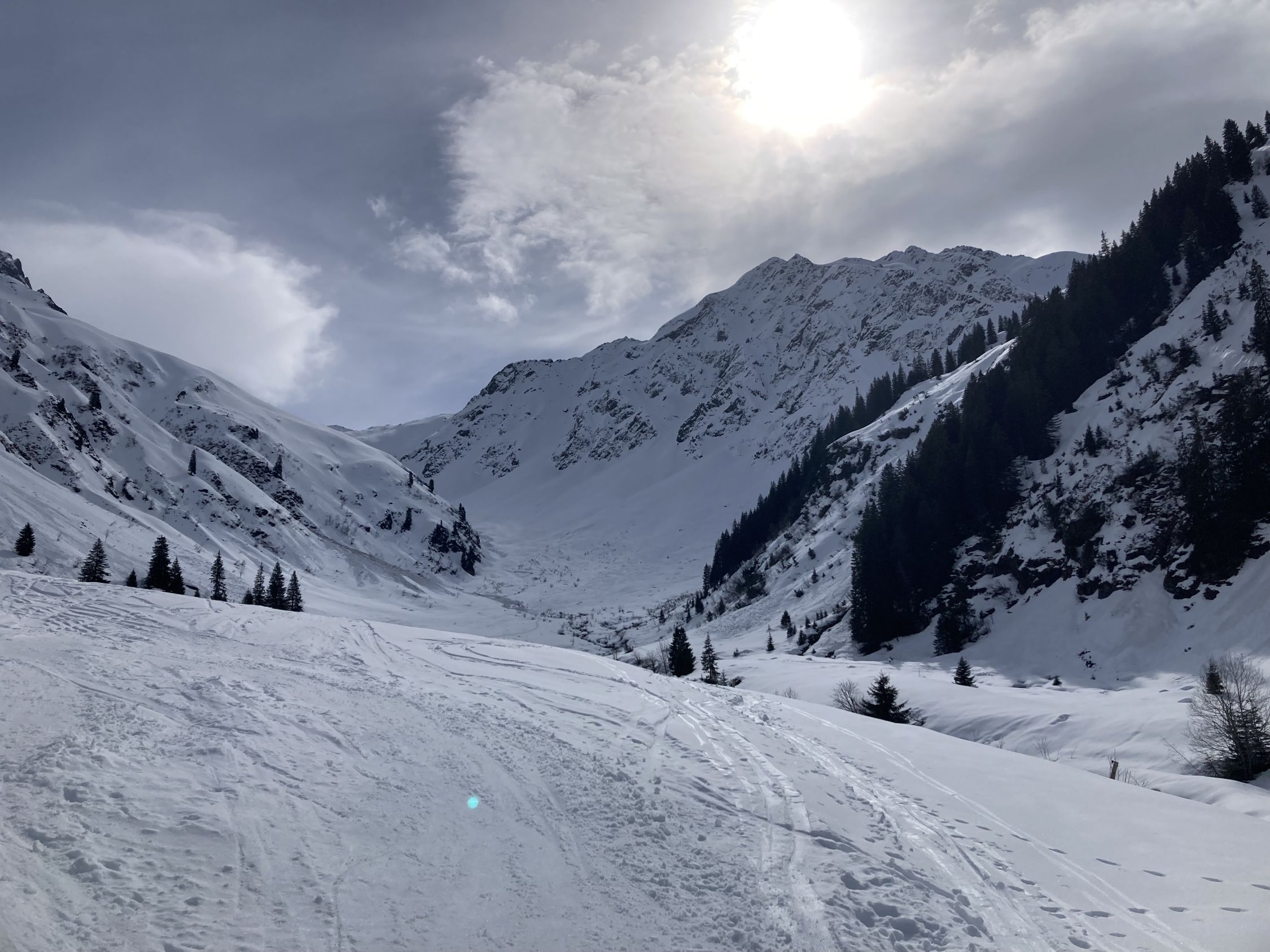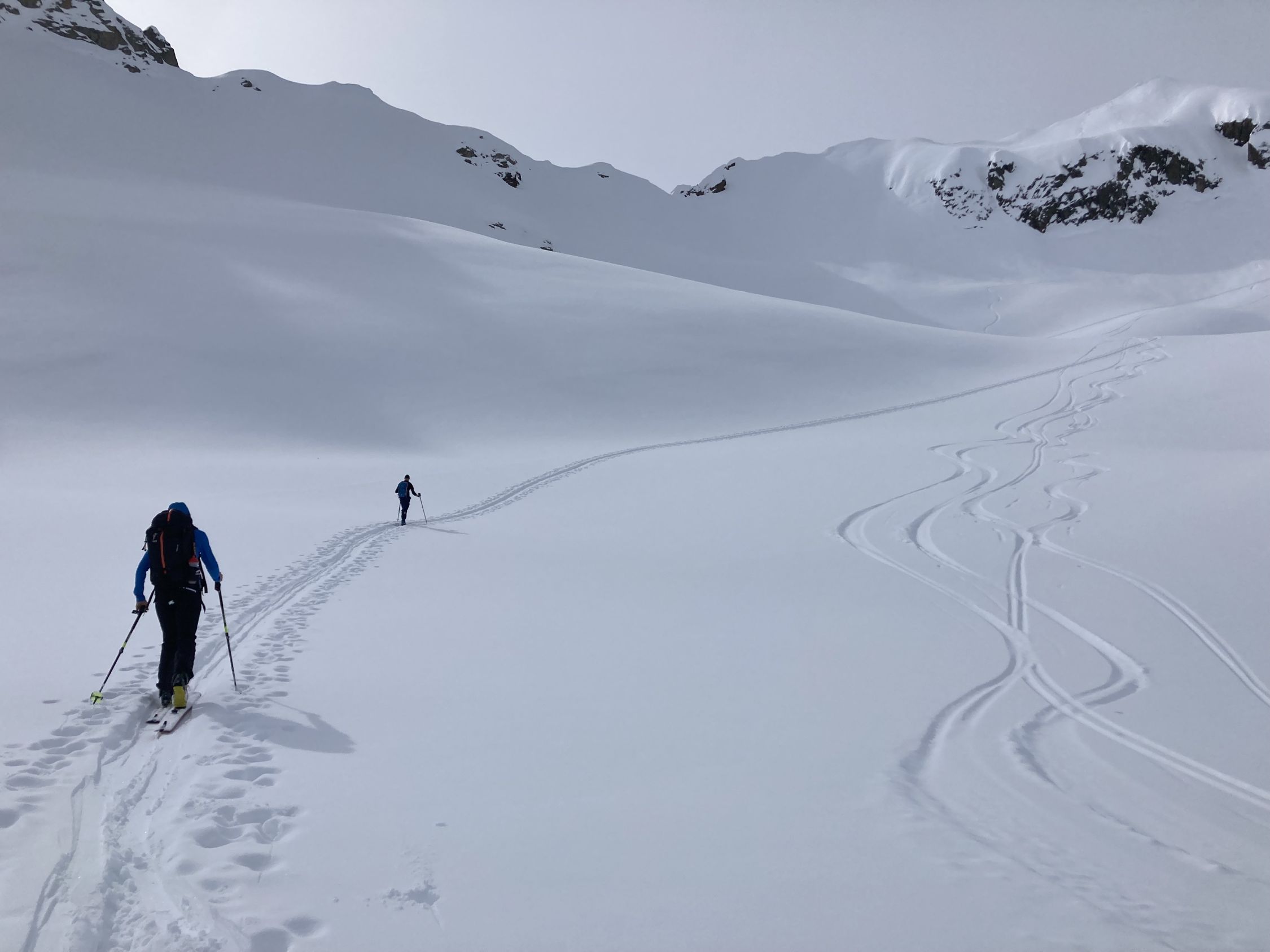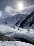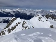 Top Aufstiegsspur! Abfahrt vom Ameisenjoch im oberen Teil schon etwas verfahren. Aufstieg auf den Gipfel zu Fuß. Abfahrt bis zum Nenzigasttal im Pulver. Leicht diffuse Sicht. Nenzigasttal sulzig, aber super zu fahren. Straße nach Langen schon teilweise aper. Eine lohnenswerte Skitour.