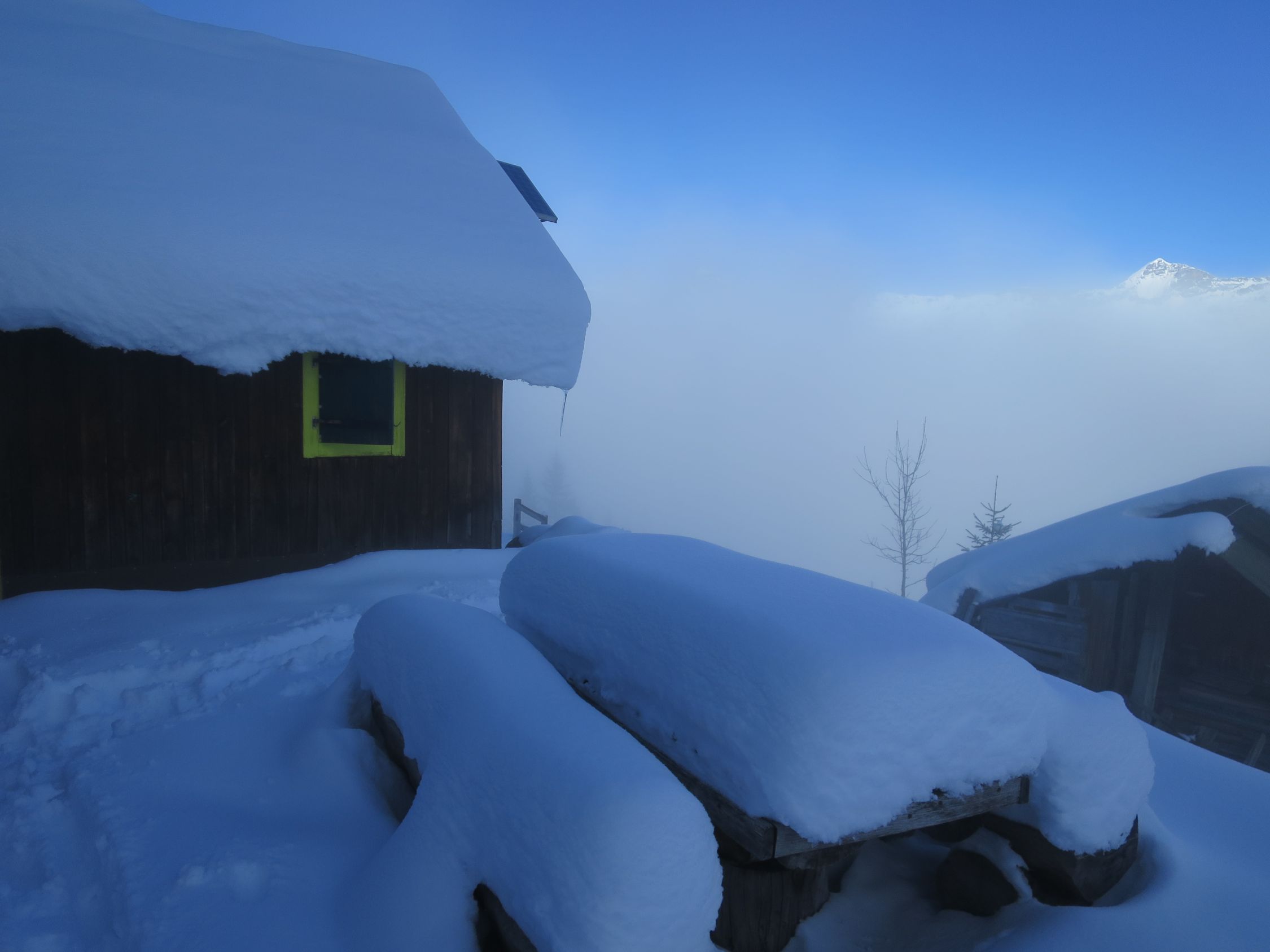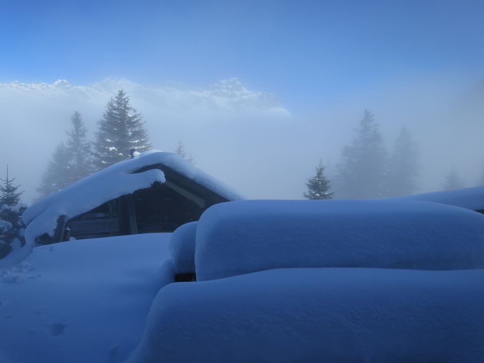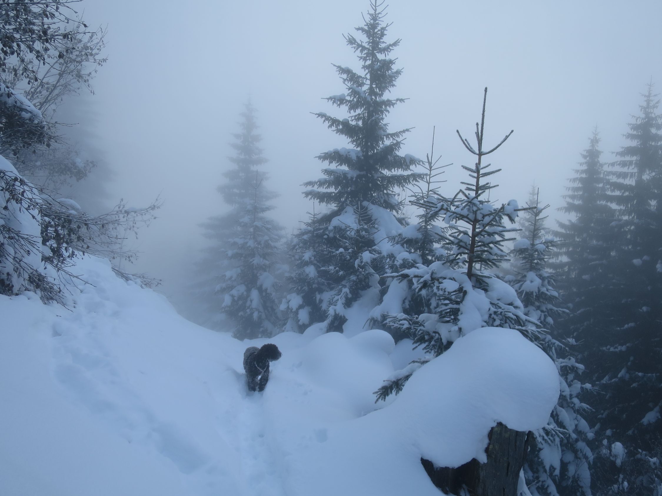 Viel Neuschnee im November. Ganze Route lag im Nebel.