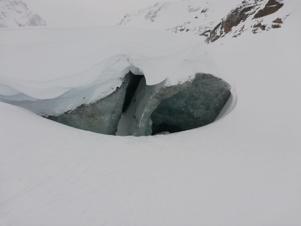 Aber bei diesem Wind, zur Zeit noch Achtung wegen windgepressten Schnee. Wir haben unter dem Ochsentalgletscher auf einer Höhe von ca. 2550m ein Schneebrett losgelöst.