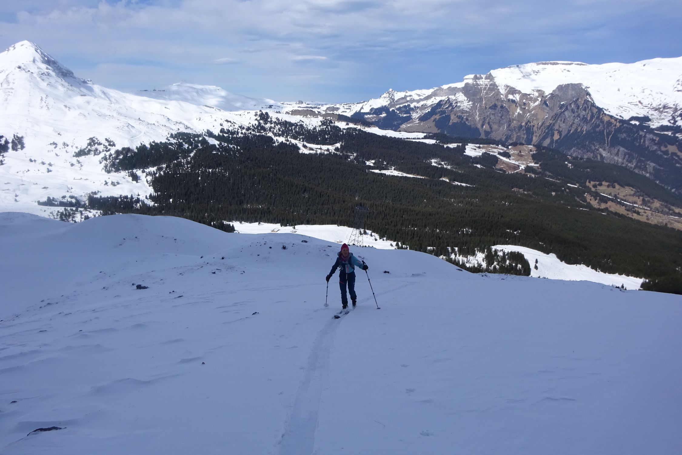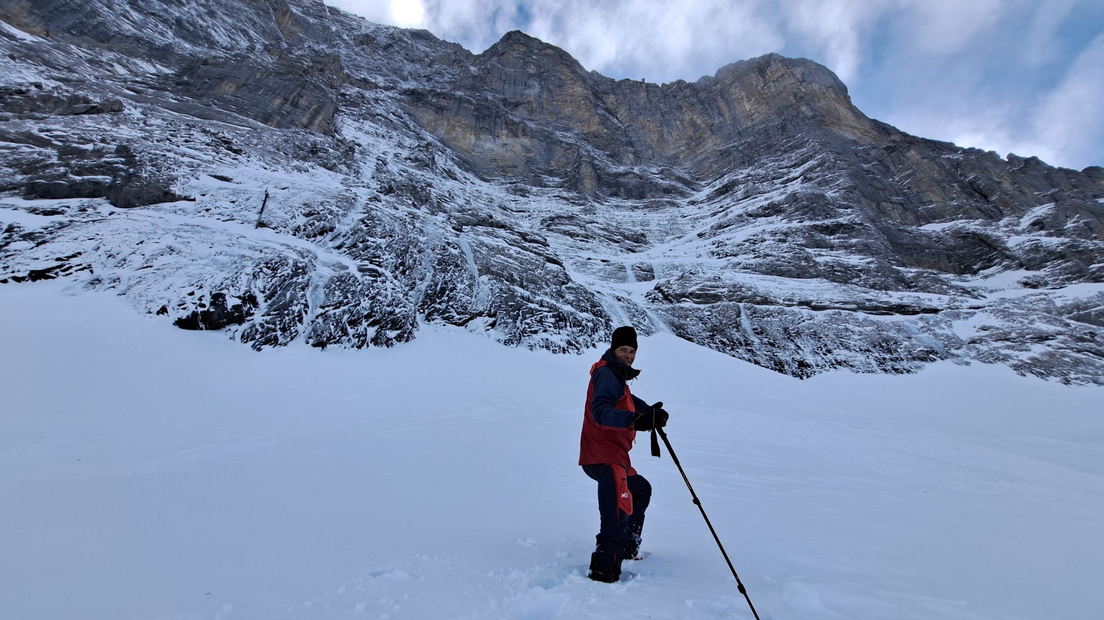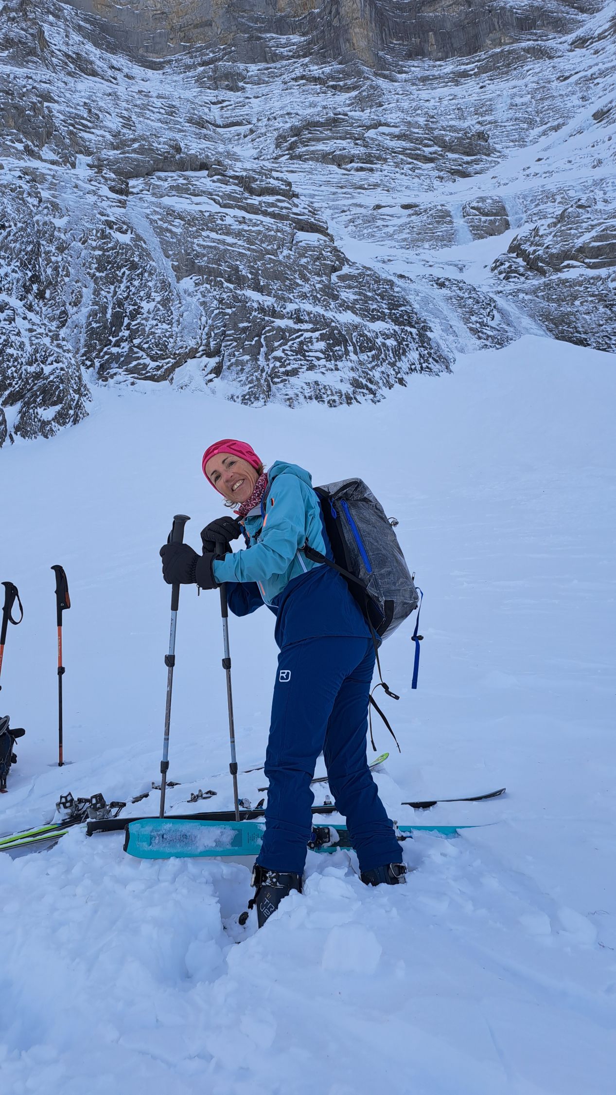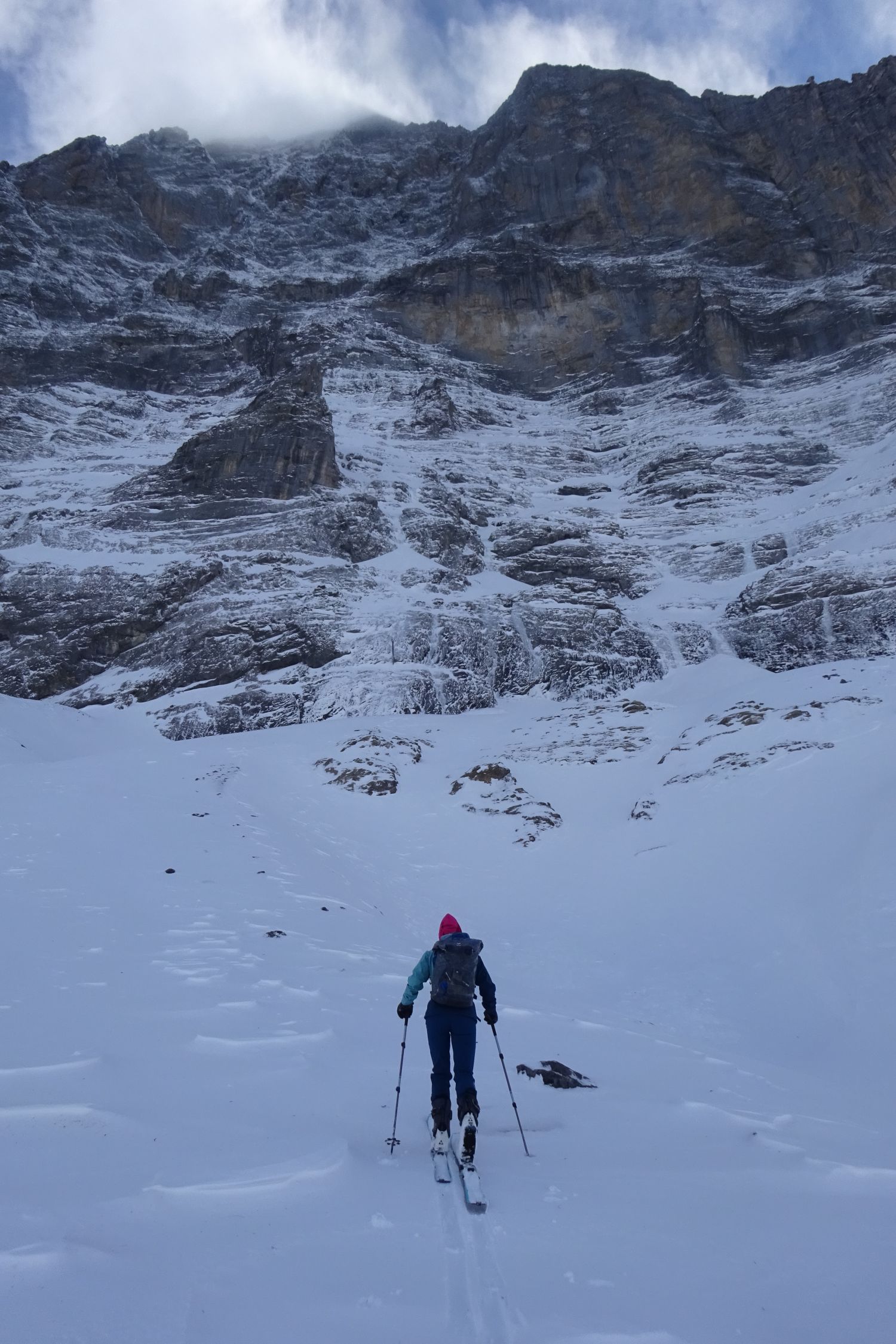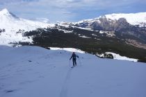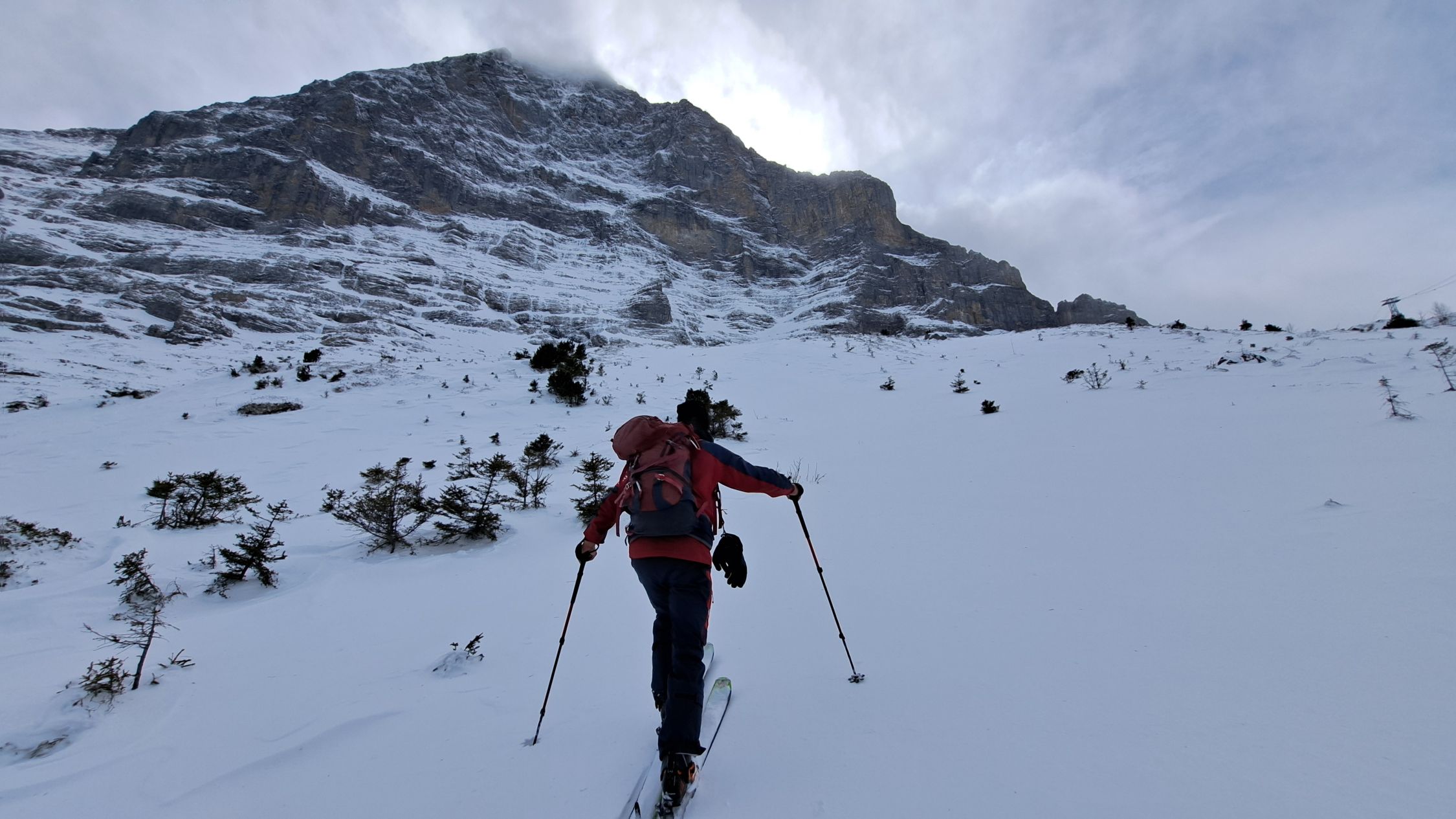 Meistens findet man hier nordseitig lange ausgezeichneten Pulverschnee. Diesmal waren allerhand Schneearten vorhanden. D.h. Hart-, Pulver- und Bruchharschschnee. War spannend zum Aufsteigen und Abfahren.