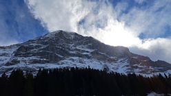 Im Glatten Wang Bei diesem starkem Föhnsturm waren wir unter der Eigernordwand sehr gut geschützt. Diese Route hat eine spezielle Ambiente, und vermittelt verschiedene Welten.