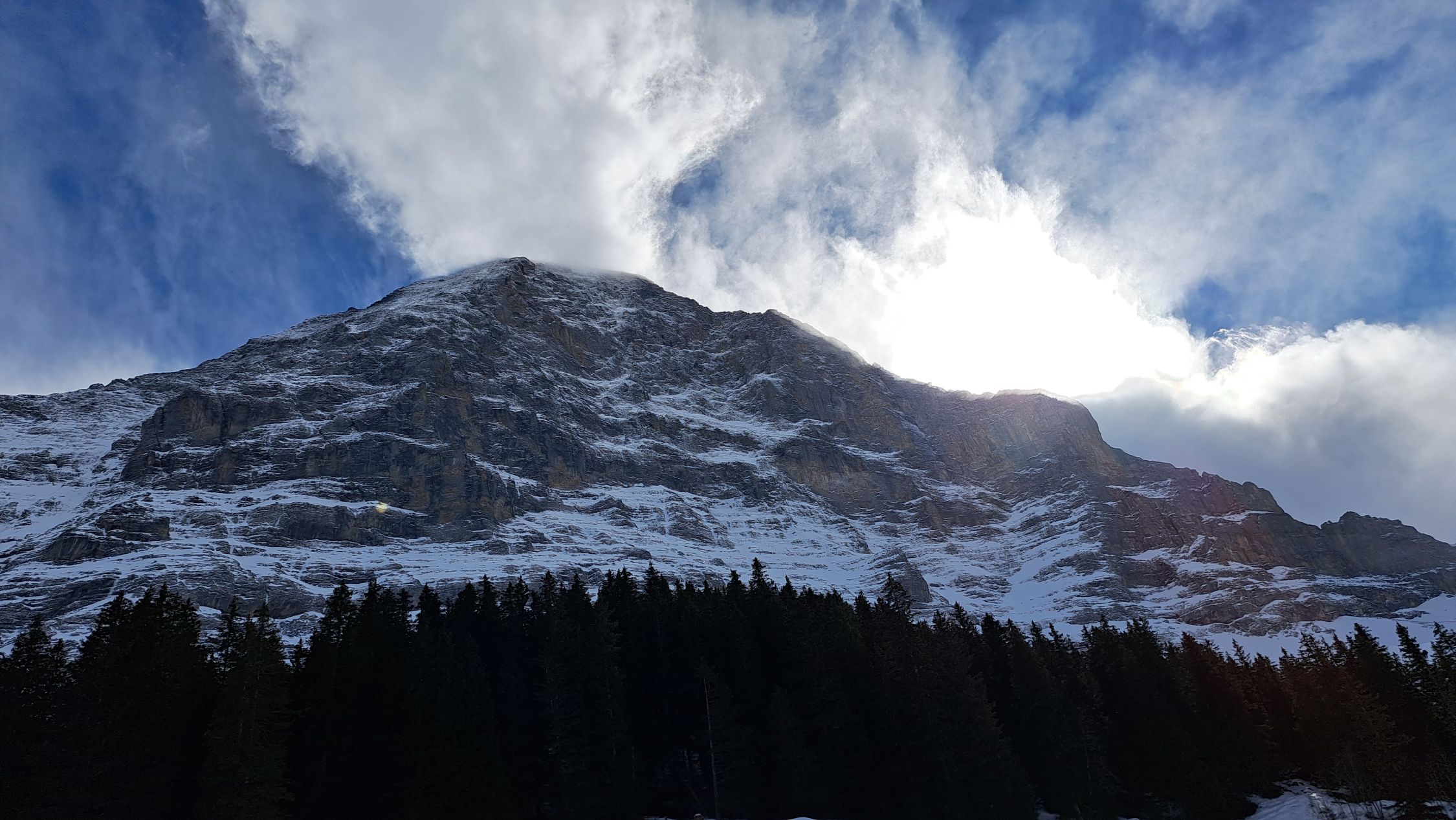 Wetter: Die Jungfraujoch-Bahn ist infolge wegen dem starken Wind nur bis Alpiglen gefahren. Der Eiger schützte uns vor diesem Sturm.