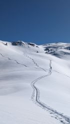Habe bis etwa 1900m gespurt, dann hat ein zweiter Skitourengeher aufgeschlossen und wir haben uns abgewechselt.