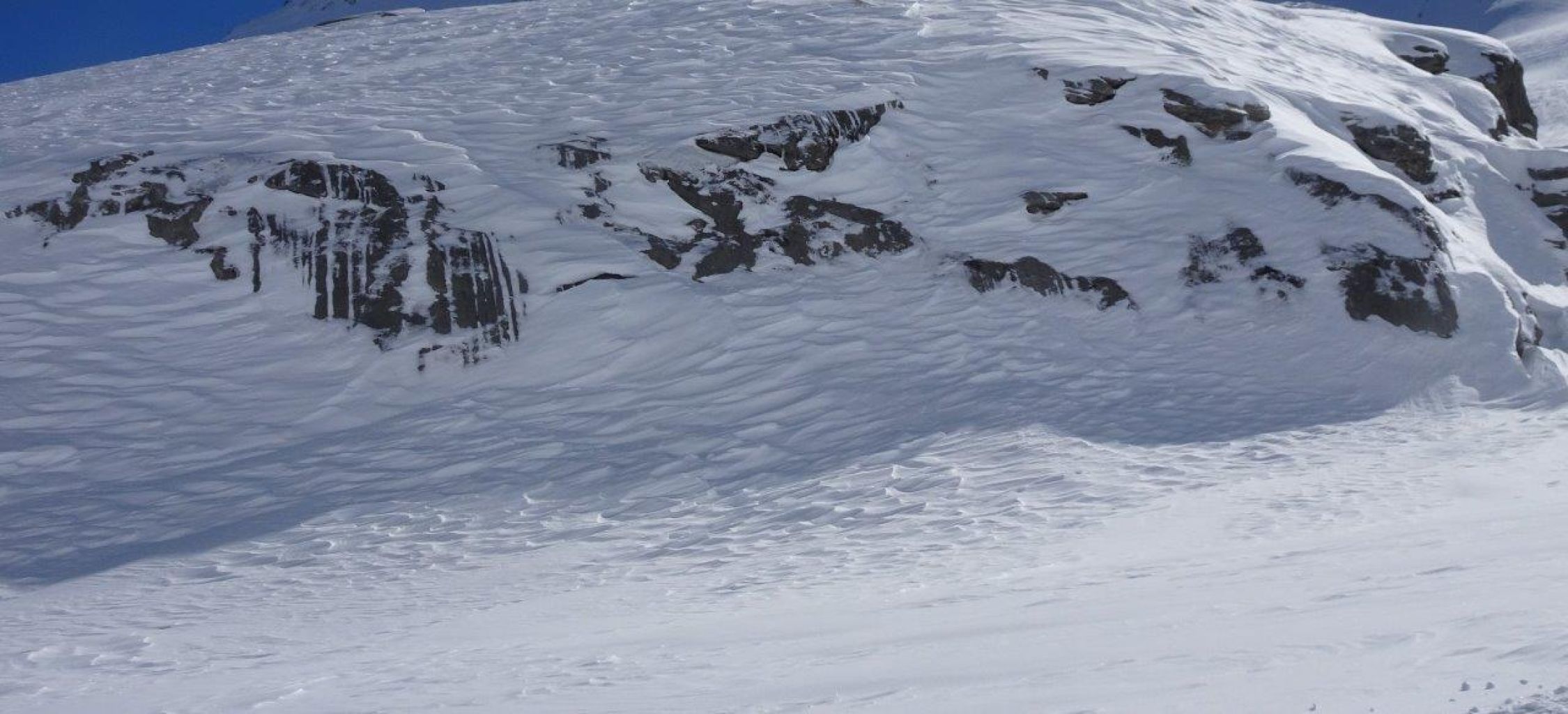 die Region ab Sunnbüel - Gemmi - Wildstrubel hat mittlerweile Schnee erhalten. Wobei der starke Wind der vergangenen Tage die Schneedecke ordentlich bearbeitet hat.