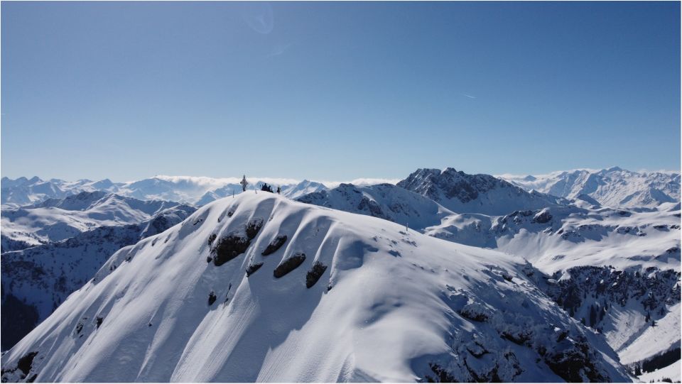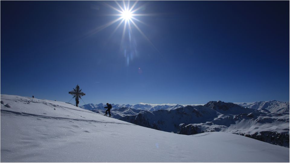 Blick in die Runde: Wer sich nicht dran stört dass man unten rum die Skier tragen muss, der wird aktuell mit guten Verhältnissen und wenige Frequentierung belohnt.