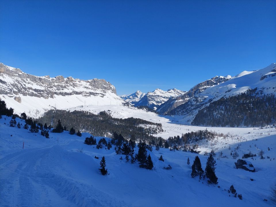 Da es sehr viel Schnee hatte und das Gelände eher flach ist, gab es nicht viele Schwünge. Der Föhn wehte relativ stark und verfrachtete den Schnee in die Leehänge.
