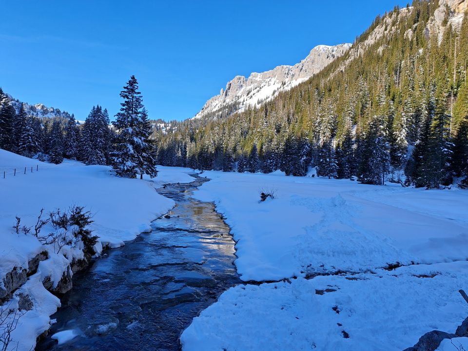 Heute Schnee ab Parkplatz Meniggrund 1345m bis1516m mit teilweise schon kurze tragstrecken aber oberhalb Ausgezeichnete verhältnisse mit 20-40cm Pulverschnee.