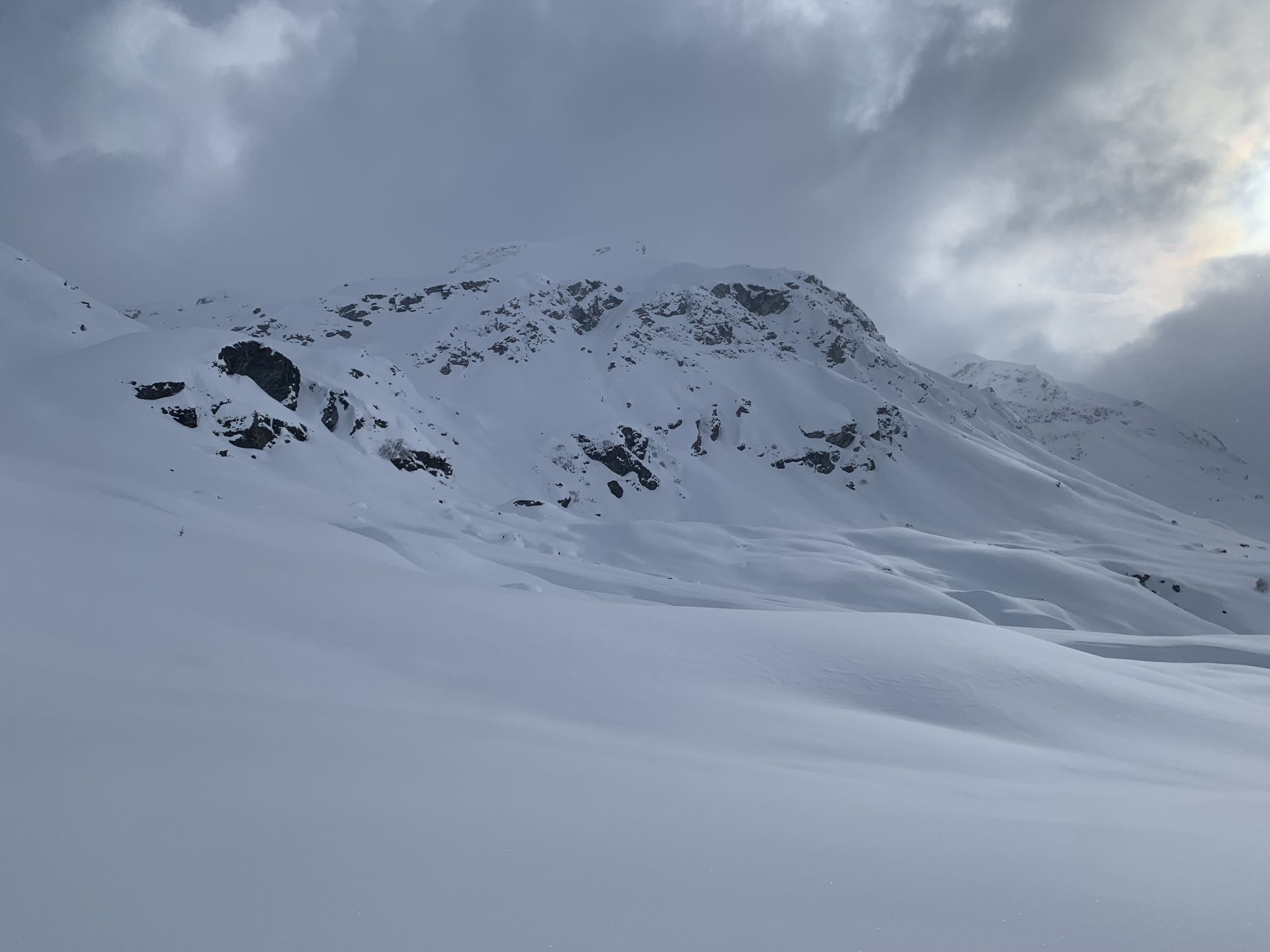 Vom Schnee her super. Leider kaum Sicht und mühsam zum Spuren. Die Steilstufe war mir zu heikel bei dieser Sicht. Abfahrt via Punt Brüscheda.