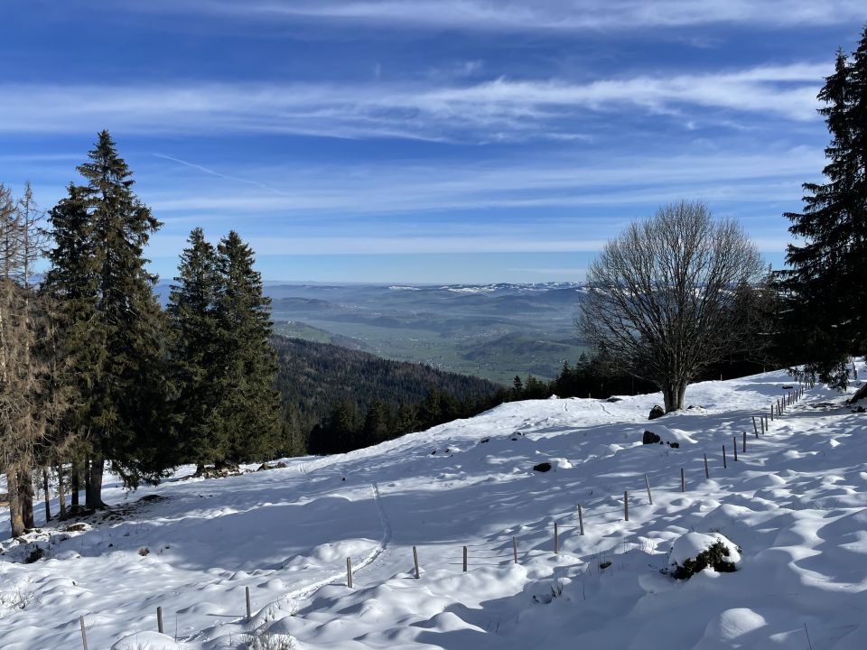Unterhalb 1500 m eher schlecht, insbesondere die Hänge von Unterwirtnere und Bärgli gleichen eher einem Steinfeld als einer Wiese, leider zahlreiche Treffer abbekommen. Da müsste mal sehr viel Schnee mit Unterlage liegen, damit sich das lohnt, dann kann aber auch über Langenegg gegangen werden. Bei der Abfahrt war der Schnee unten schon angeweicht, so dass der Deckel nur auf ca. 1500 m störend war.