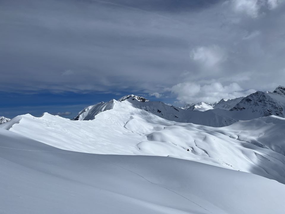Start beim Parkplatz Tschingelbähnli, bis 1400 muss man die Ski Tragen, ab dort wenig Schnee, ab 1700m gute Schneelage. Bis Gipfel gute Spur. Am Gipfel wie erwartet Wind 40 kmh, gerade noch OK.Haben in den oberen 300hm noch Pulver gefunden in Rinne, sonst eher Deckel, unten bereits aufgesulzt trotz wind um 13:00