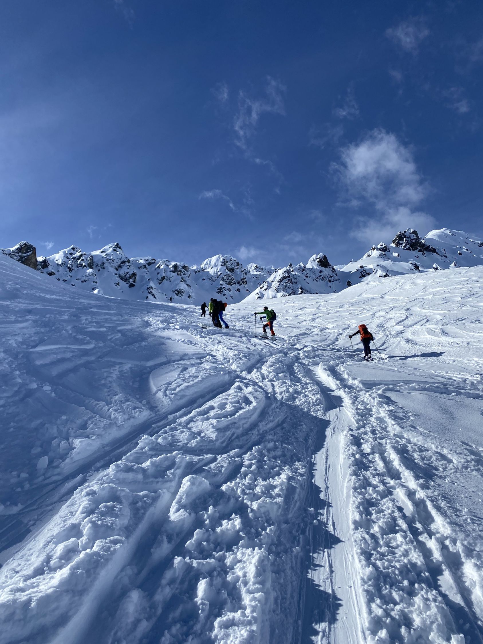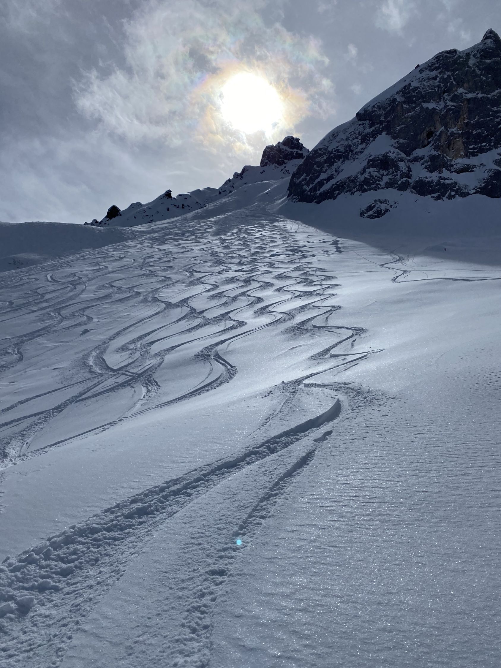 Heute wieder viel los im Tourengebiet. Aufstieg zur Rotspitze auf guter Spur bis zum Gipfel und bei Sonnenschein. Abfahrt im Tälli bietet schattseitig noch sehr guten Pulverschnee. Der Abstecher (Aufstieg) über das Silbertälli zu Schollberg mit der nordseitigen Abfahrt sehr lohnenswert und viel Platz für Schwünge im Pulver. Der Schnee bleibt auf der Abfahrt bis zum Tällibach (ca. 1.800m) pulvrig und gut zu fahren. Über Partnun zum Parkplatz dann harschig und zum Teil leicht aufgefirnt.
