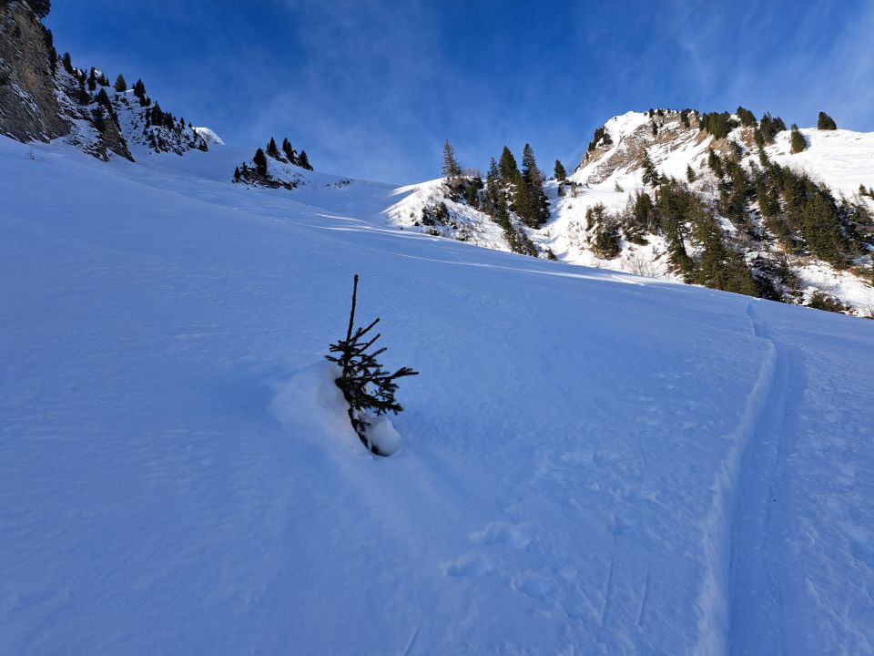 Dort habe ich umgedreht weil es im couli teils Winddeckel und wieder lockerschnee und mit ca 70cm und sehr steil zu gefährlich wurde