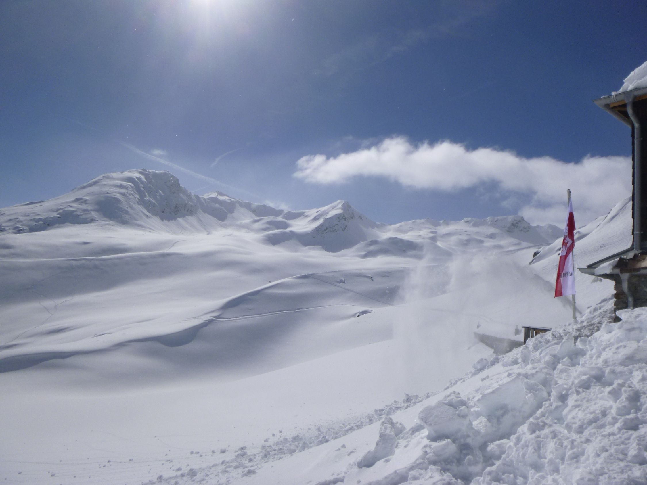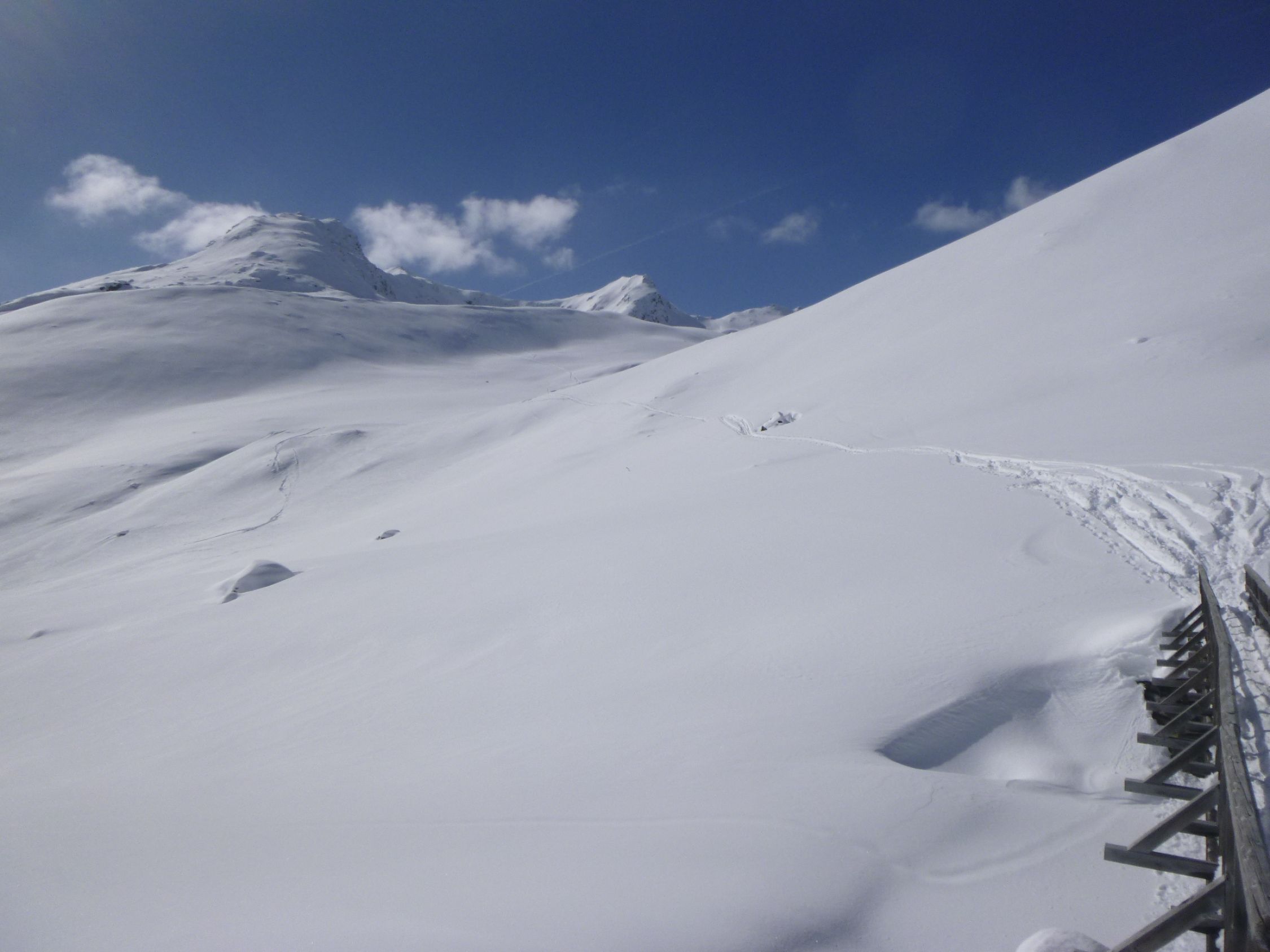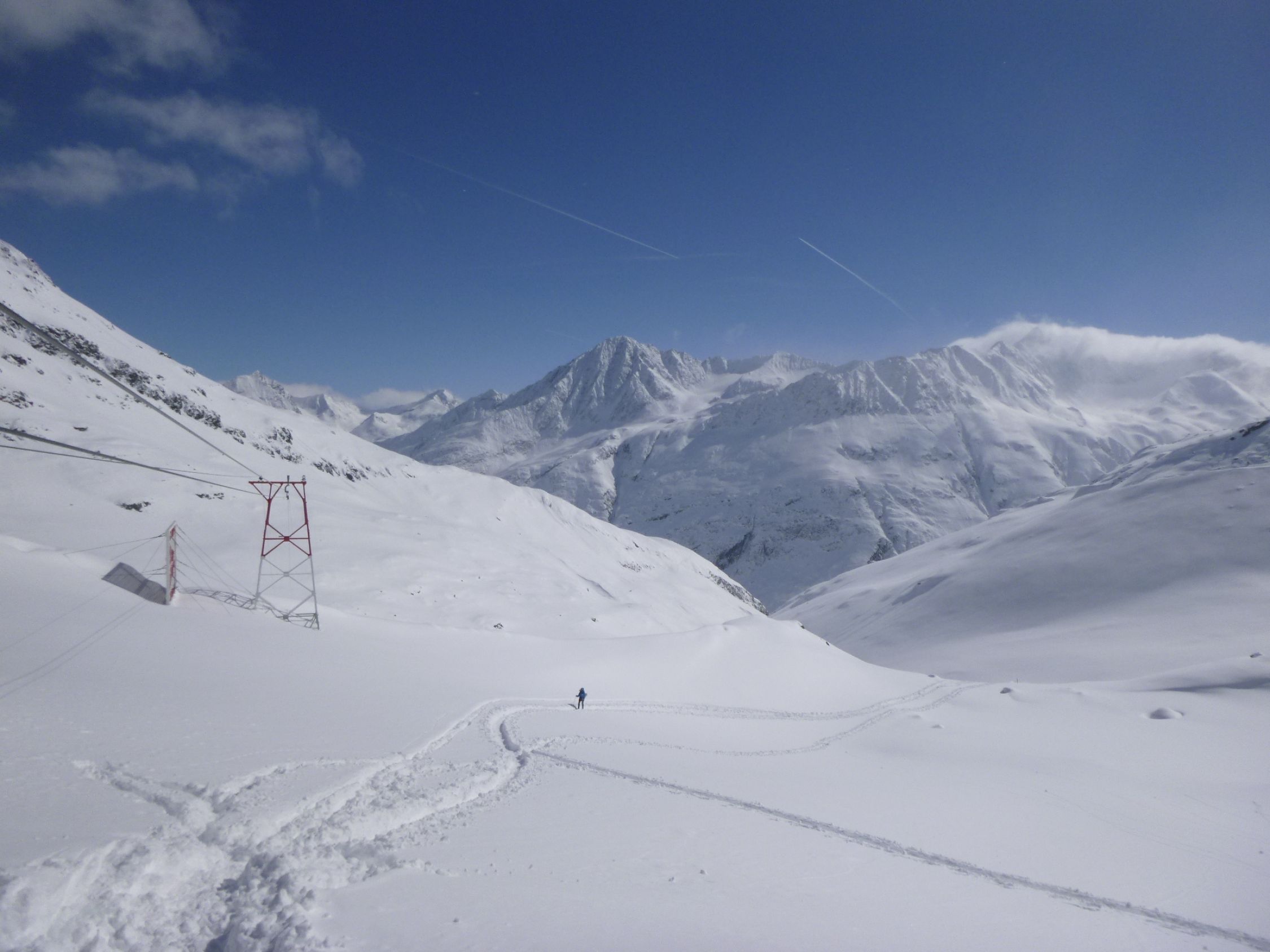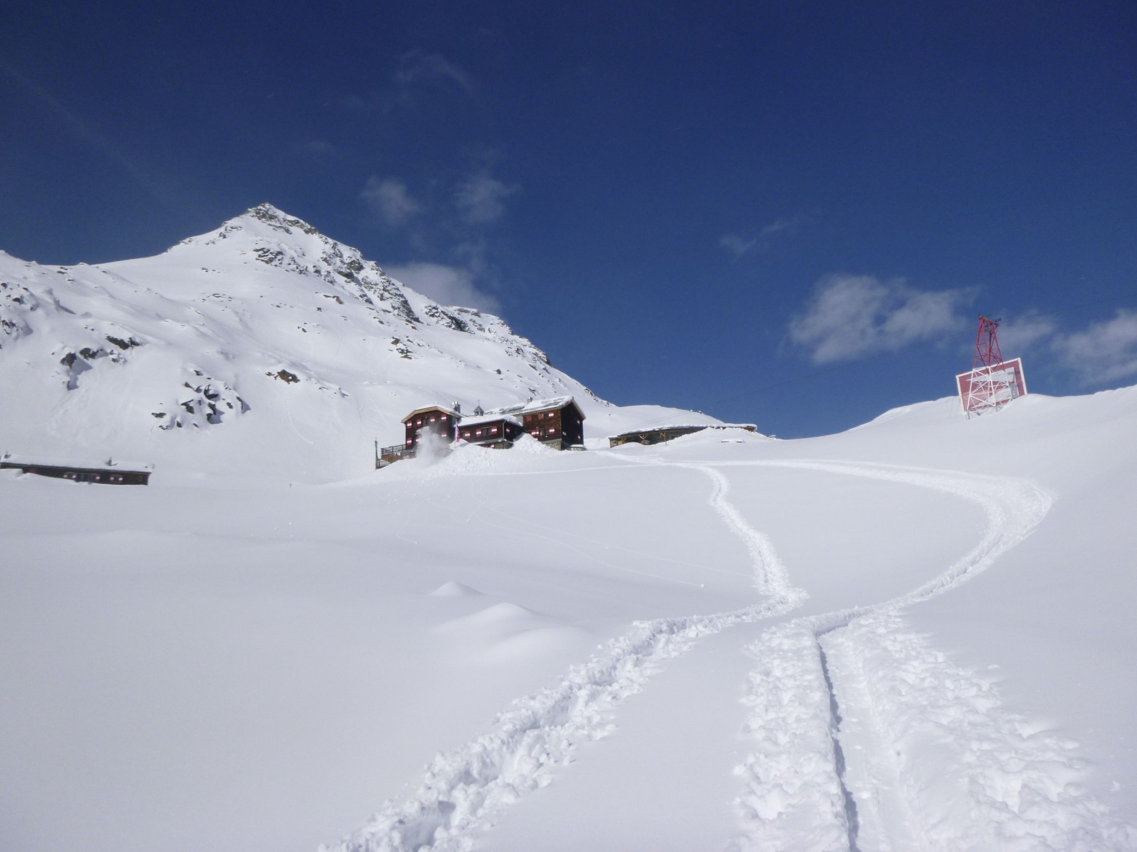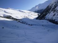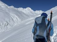 Route: Rofen – Rofenalm – Wegekreuz – Auf Plattei – P 2508 – Brücke (P 2595) - Vernagthütte Es liegt hier oben noch erstaunlich viel Schnee in bester Pulverform zur Freude der Skitourengänger. Wird vorläufig auch so bleiben. Hütte öffnet am 9.3.