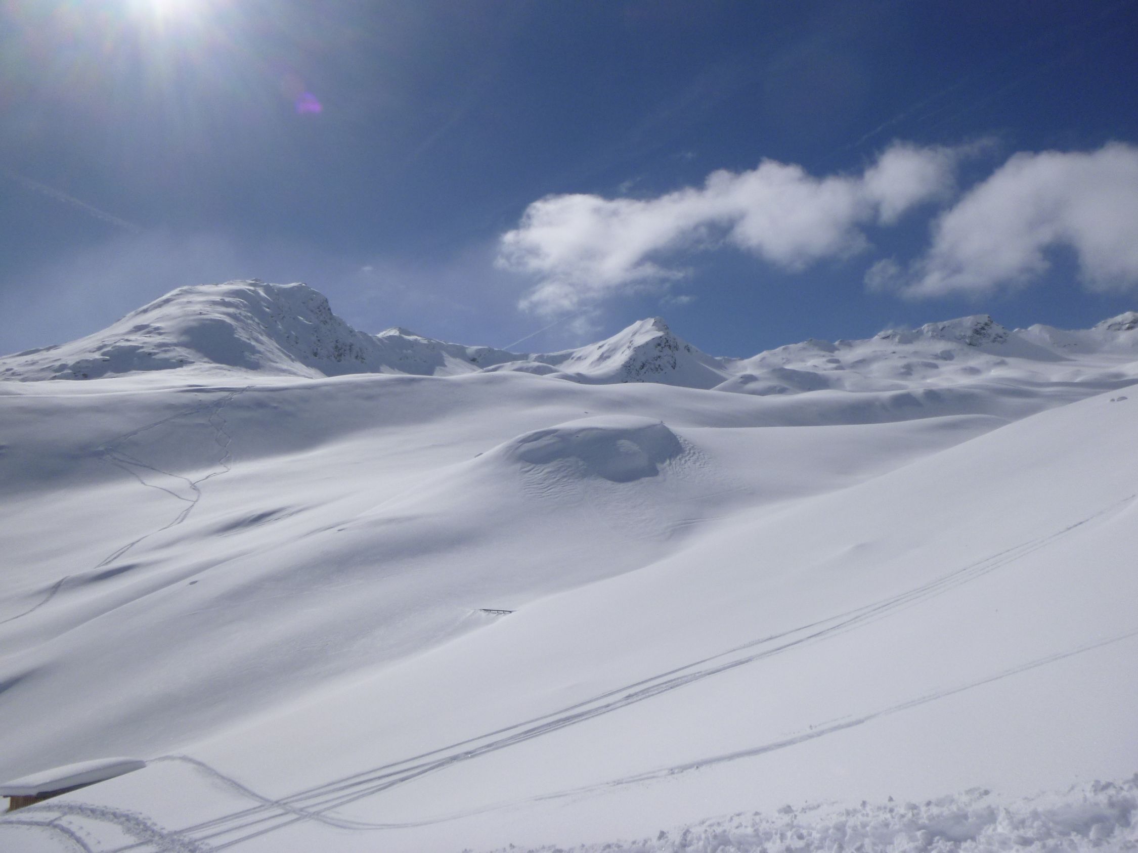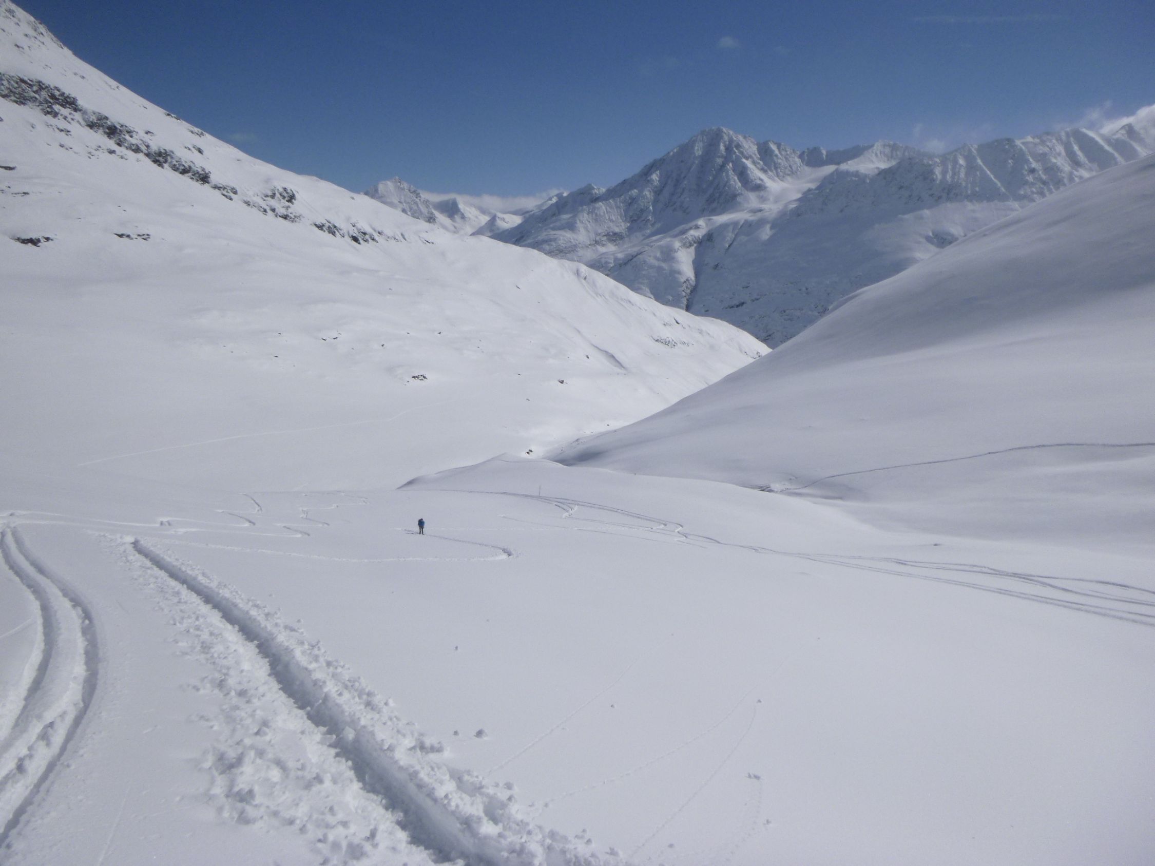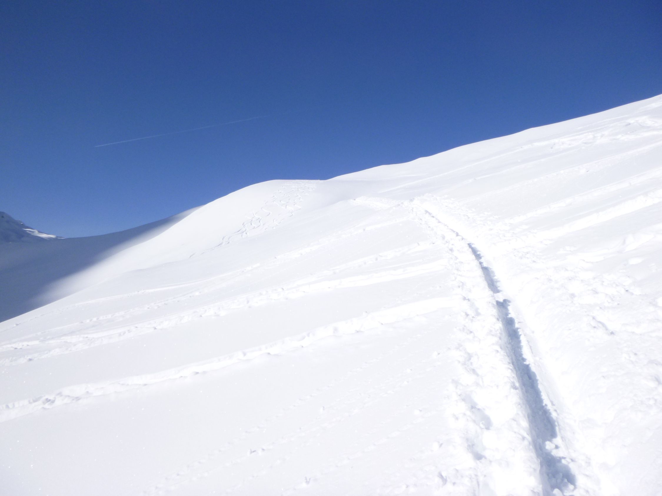 Route: Rofen – Rofenalm – Wegekreuz – Auf Plattei – P 2508 – Brücke (P 2595) - Vernagthütte Es liegt hier oben noch erstaunlich viel Schnee in bester Pulverform zur Freude der Skitourengänger. Wird vorläufig auch so bleiben. Hütte öffnet am 9.3.