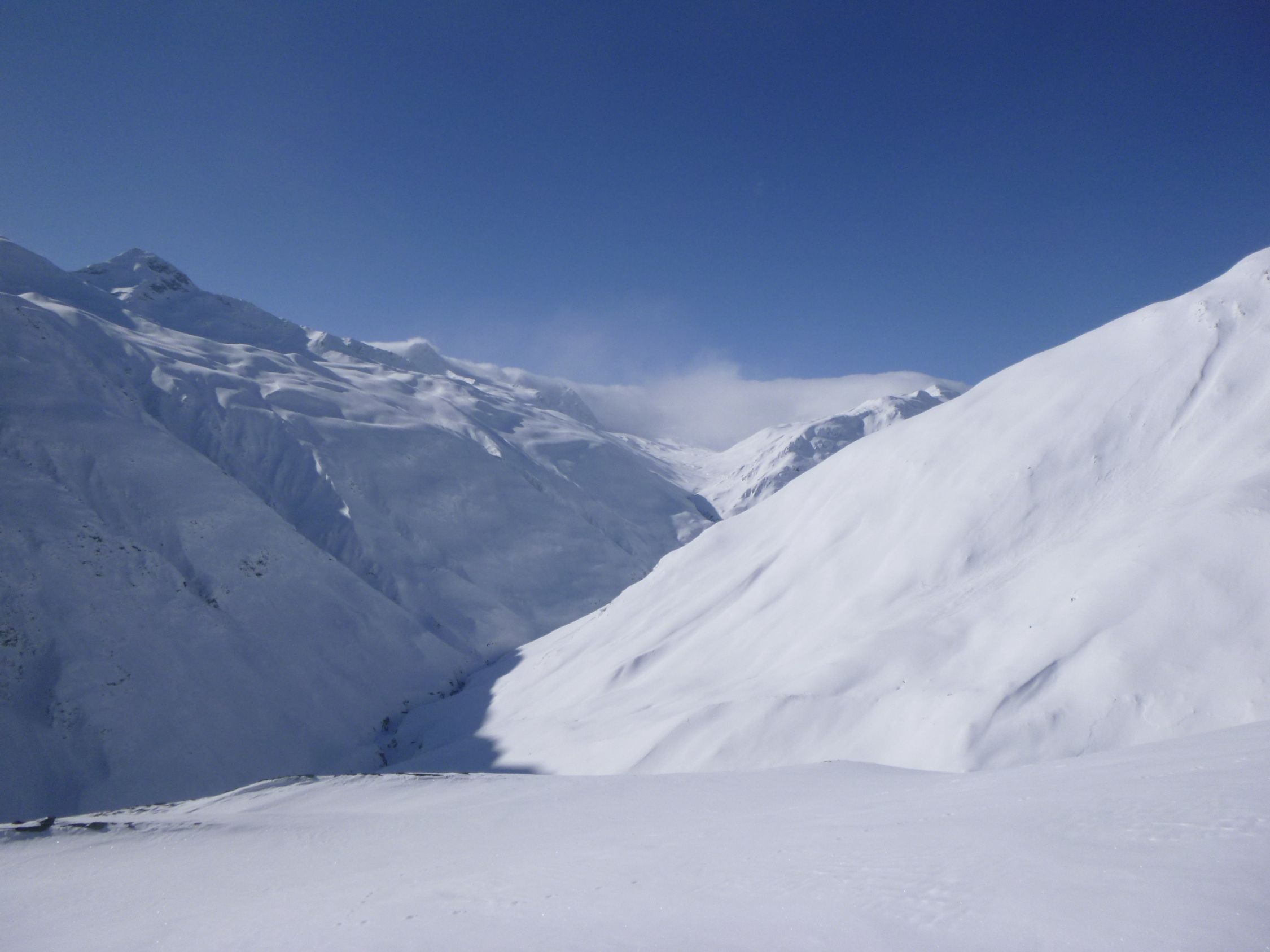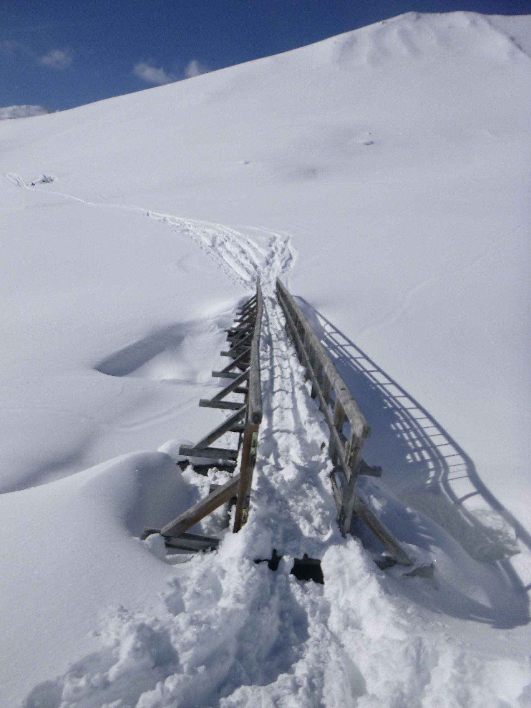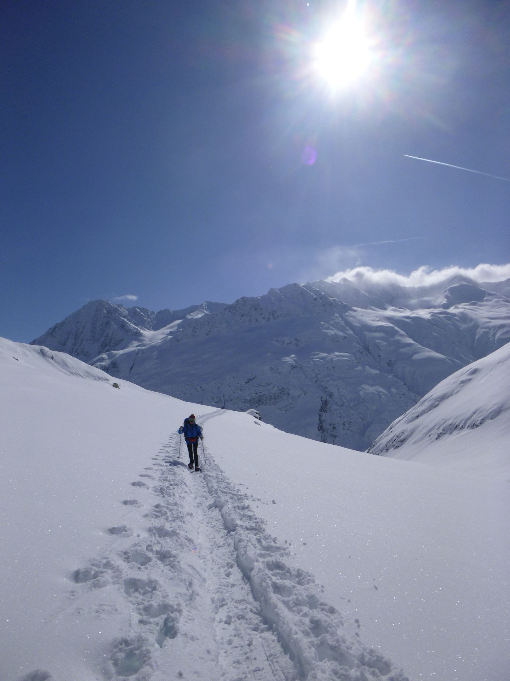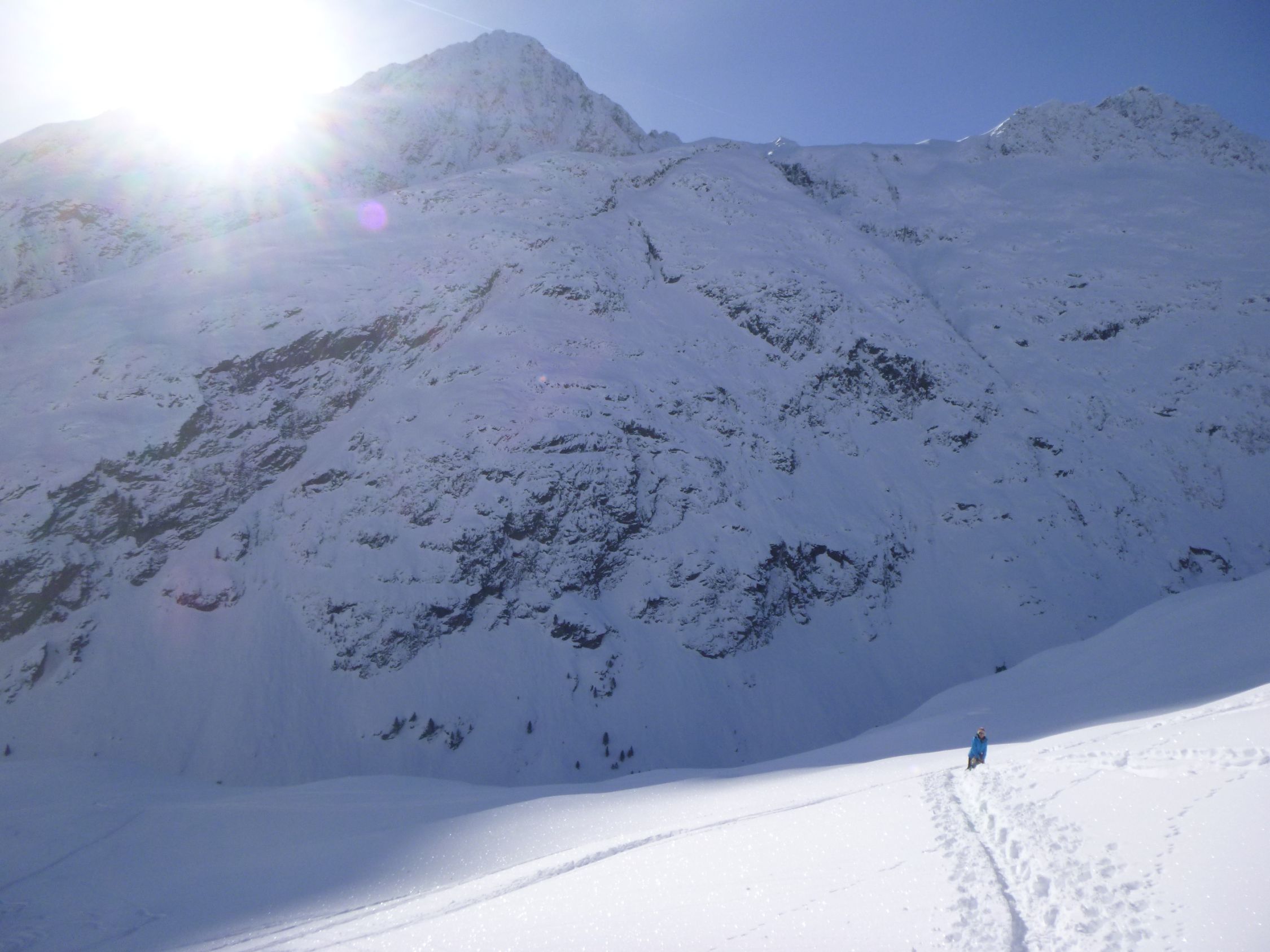 Route: Rofen – Rofenalm – Wegekreuz – Auf Plattei – P 2508 – Brücke (P 2595) - Vernagthütte Es liegt hier oben noch erstaunlich viel Schnee in bester Pulverform zur Freude der Skitourengänger. Wird vorläufig auch so bleiben. Hütte öffnet am 9.3.