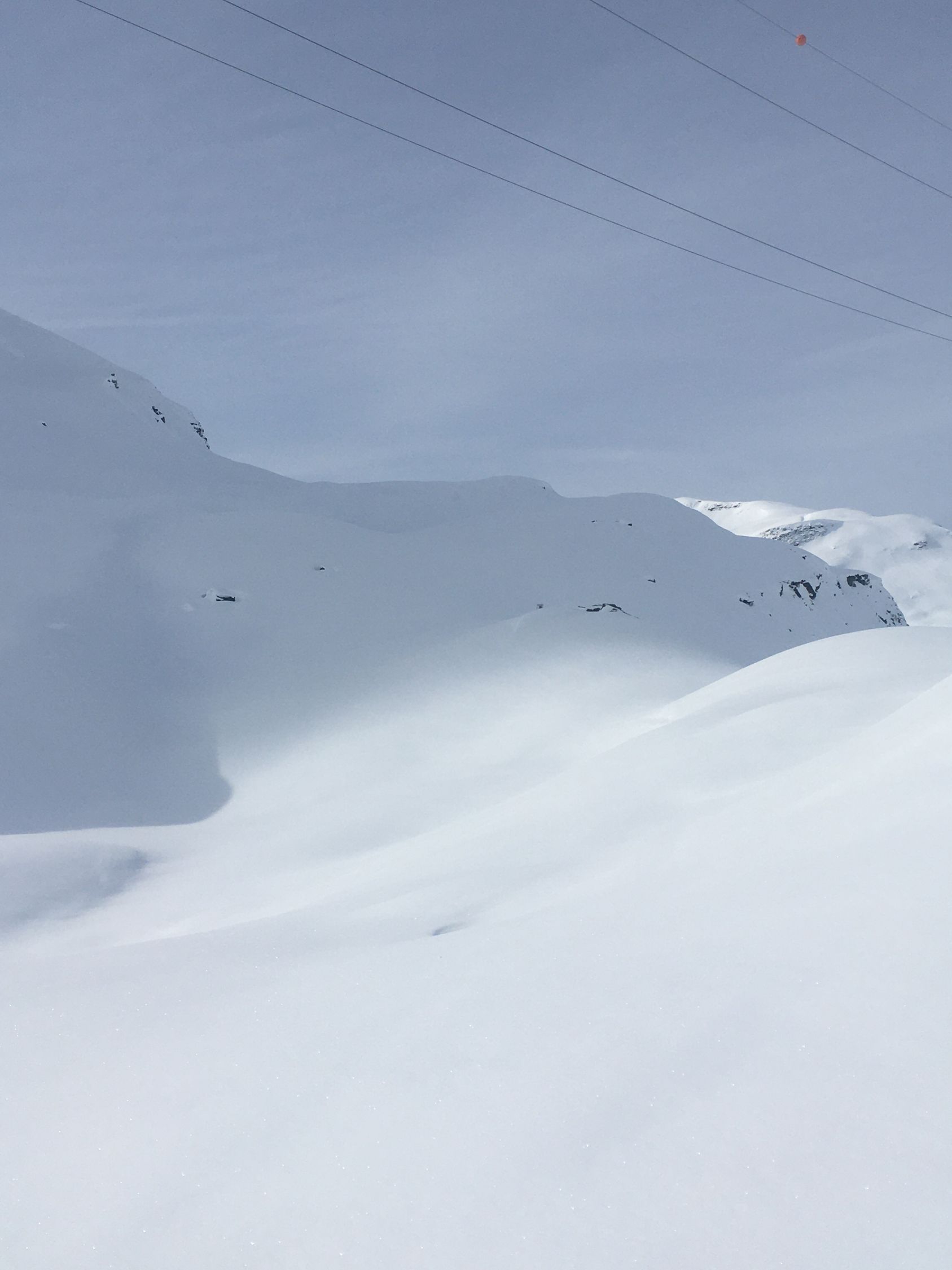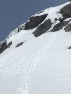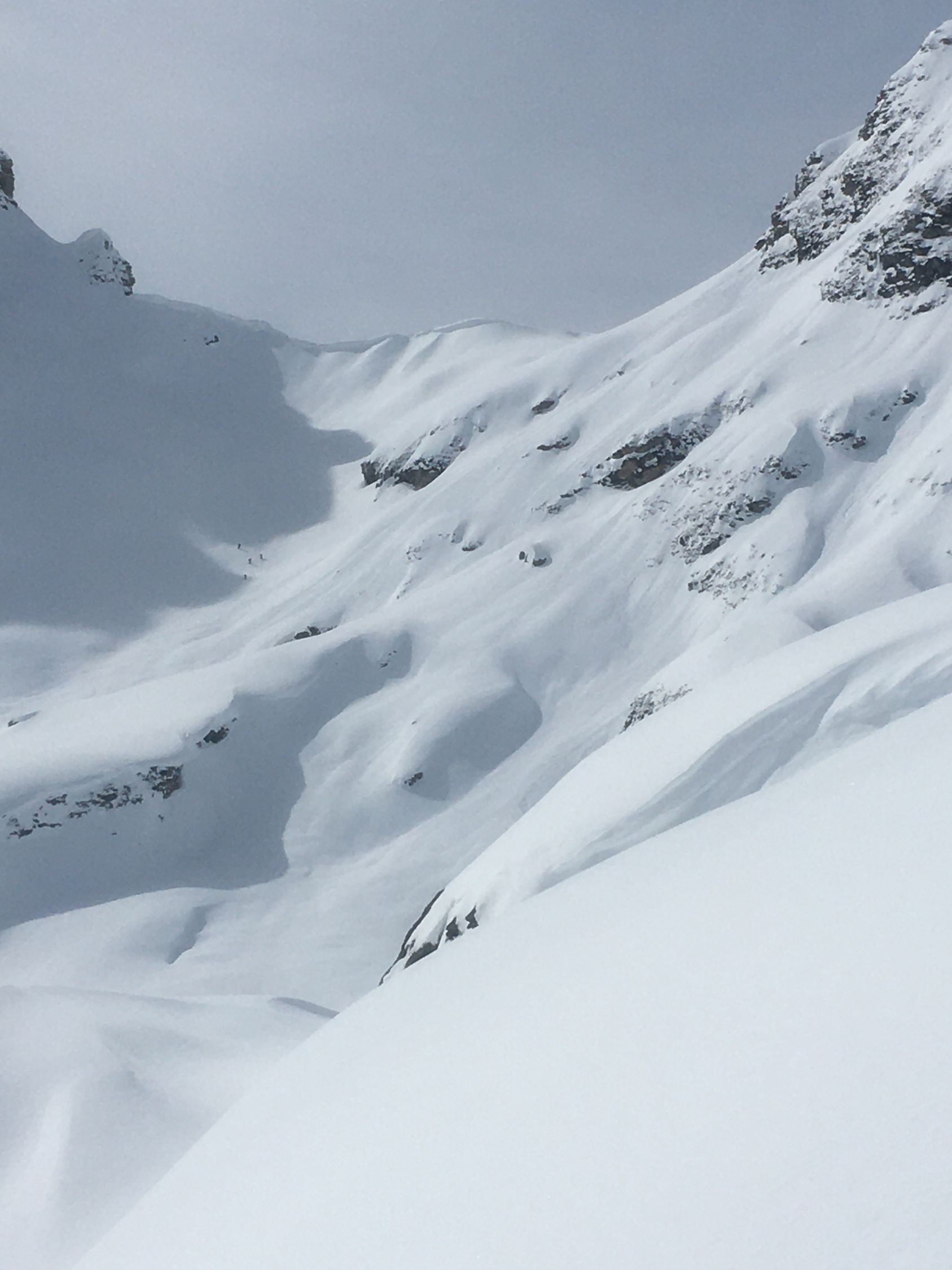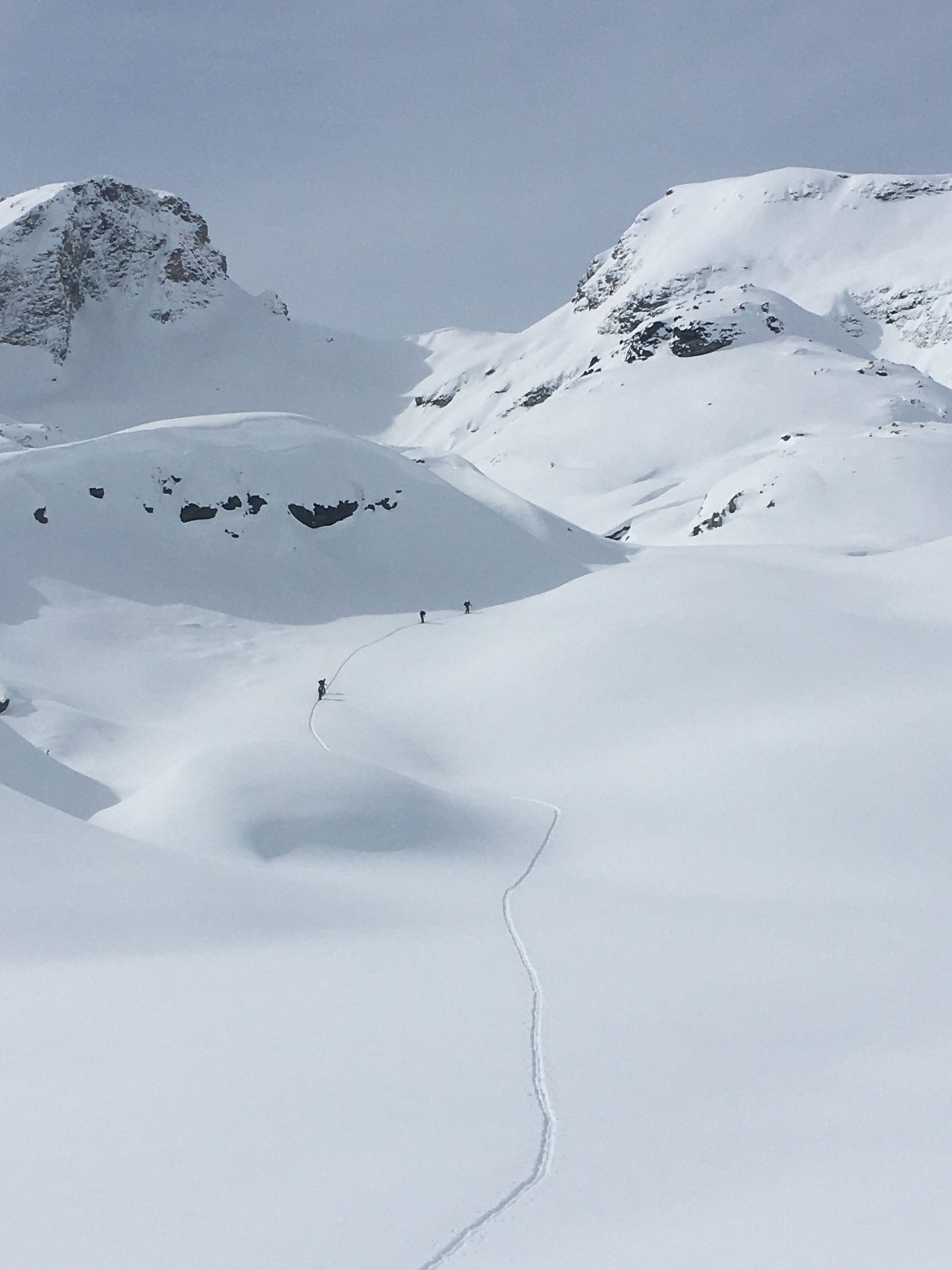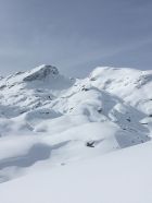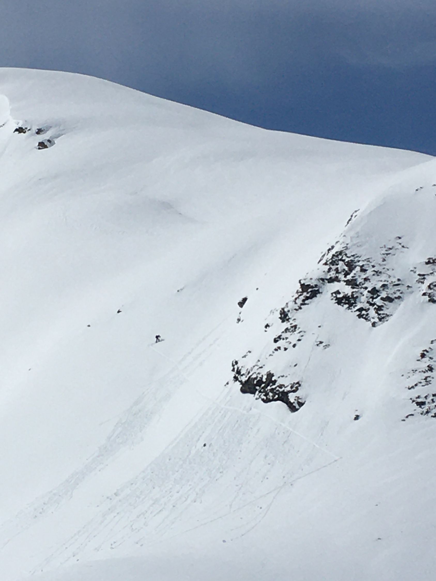 Kurze Tour auf den Felskopf P. 2581 nahe steile Ostflanke Piz Emmat Dadora. Start La Veduta 8.30 Uhr, minus 2 Grad, Schleierwolken, windstill. Wunderschöne unberührte Nordflanke Punkt 2549. Spuren wie auf weichem Teppich! Bei Leg Grevasalvas 2390 m überholten mich vier junge Tourengänger welche mir eine schöne Spur legten bis Abzweigung Emmat Dadora. Die vier hatten Ziel Fuorcla d‘Emmat 2755 m. Ich spurte noch das Steilstück um den Gipfelfelsen zu Punkt 2581. Zu meiner Überraschung spurte noch ein Einzelgänger die steile Ostflanke hoch auf den Rücken Piz Emmat Dadora. Er erreichte zu meiner Erleichterung den Rücken. Abfahrt auf Aufstiegsroute, etwas feuchter Pulverschnee aber schön zu fahren. Am schönsten war die Nordflanke ab P. 2549 zur Veduta, perfekte Verhältnisse und keine Spuren!