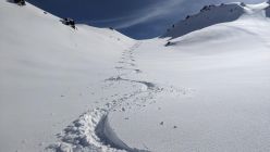 Lawinentechnisch schien es mir heute kein 3er - habe viel gespurt und nirgends Setzungsgeräusche oder andere Warnzeichen wahrgenommen. Offenbar haben dies auch andere Tourengänger so beurteilt, wurden doch im Lauf des Tages diverse echt steile Linien befahren.