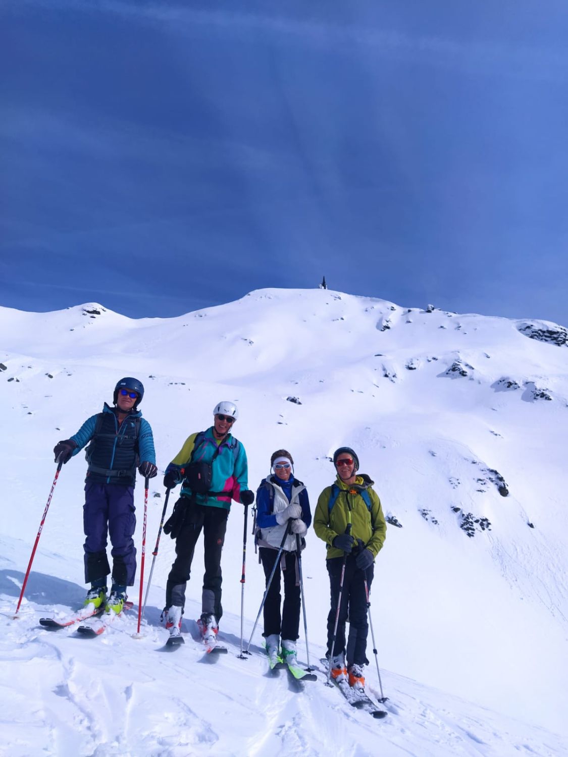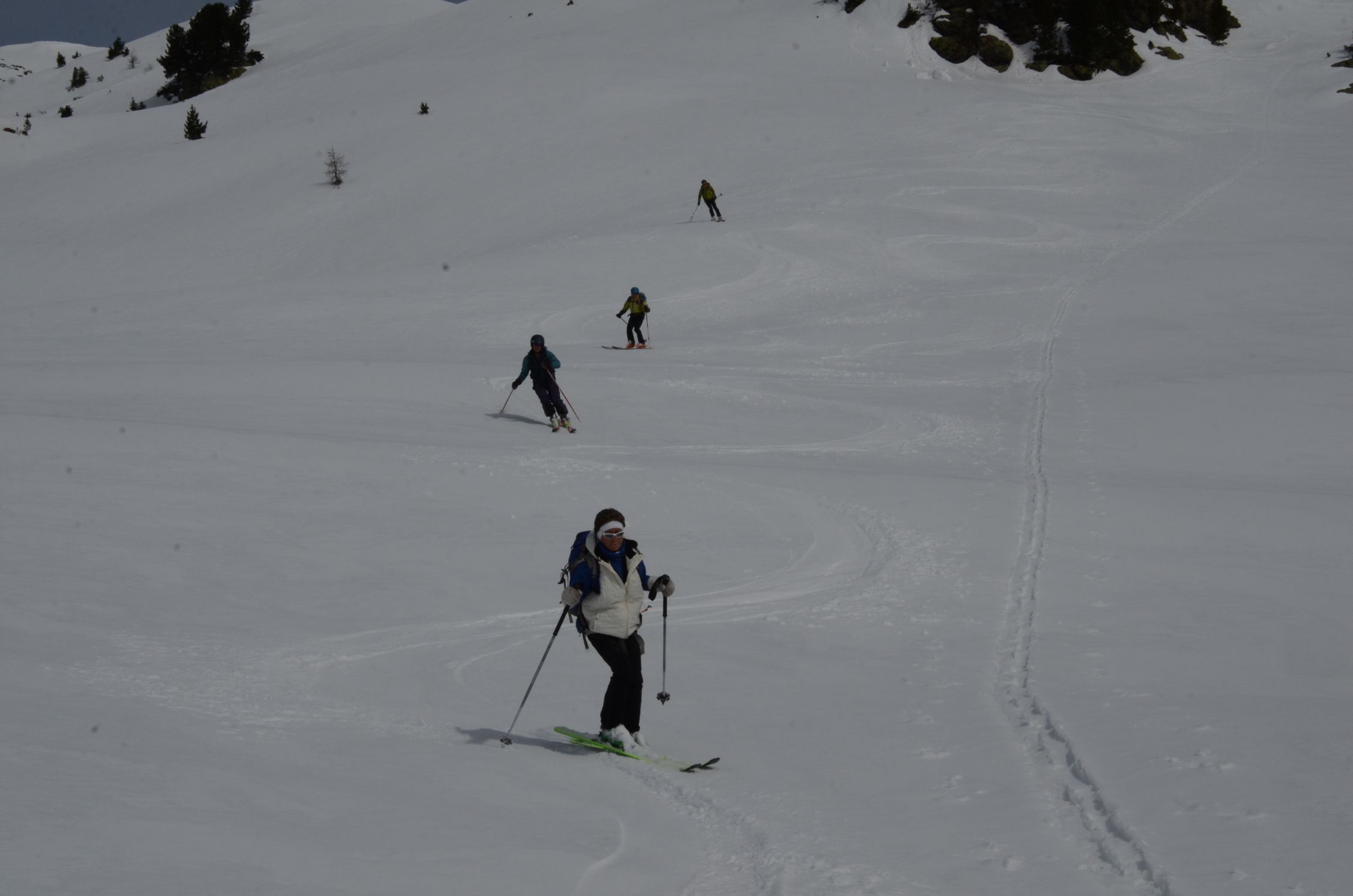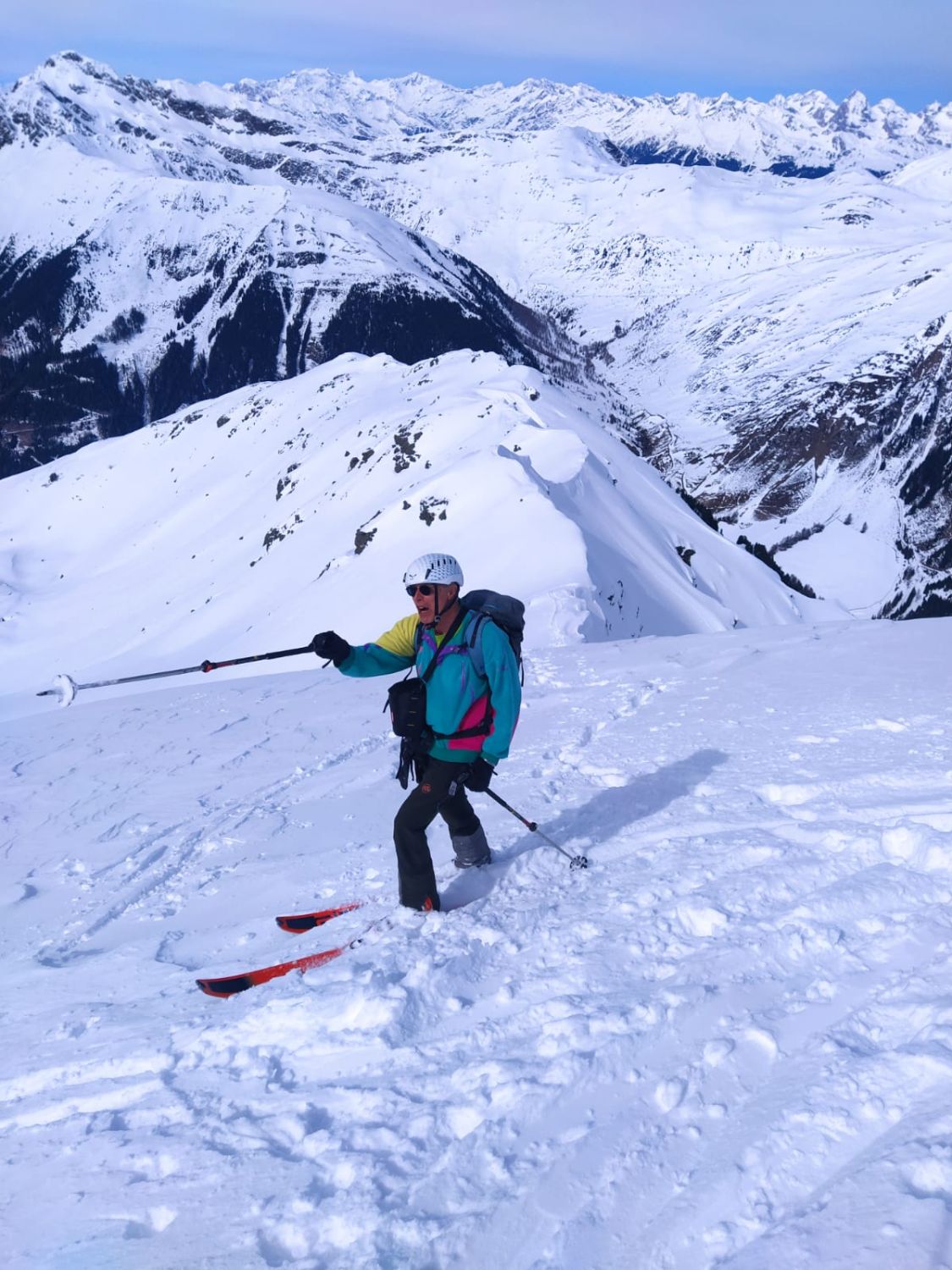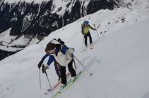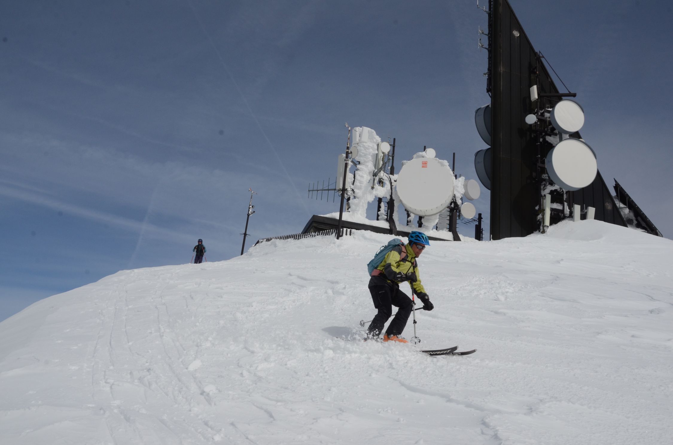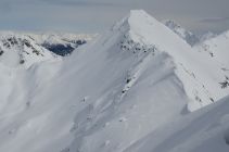 Der Gipfelhang war mit einem Winddeckel versehen und musste durchbrochen werde. Nicht besonders gut, bzw. mit Kraft zu befahren. Weiter unten gab es guten Firn und erwies sich gut zu fahren.