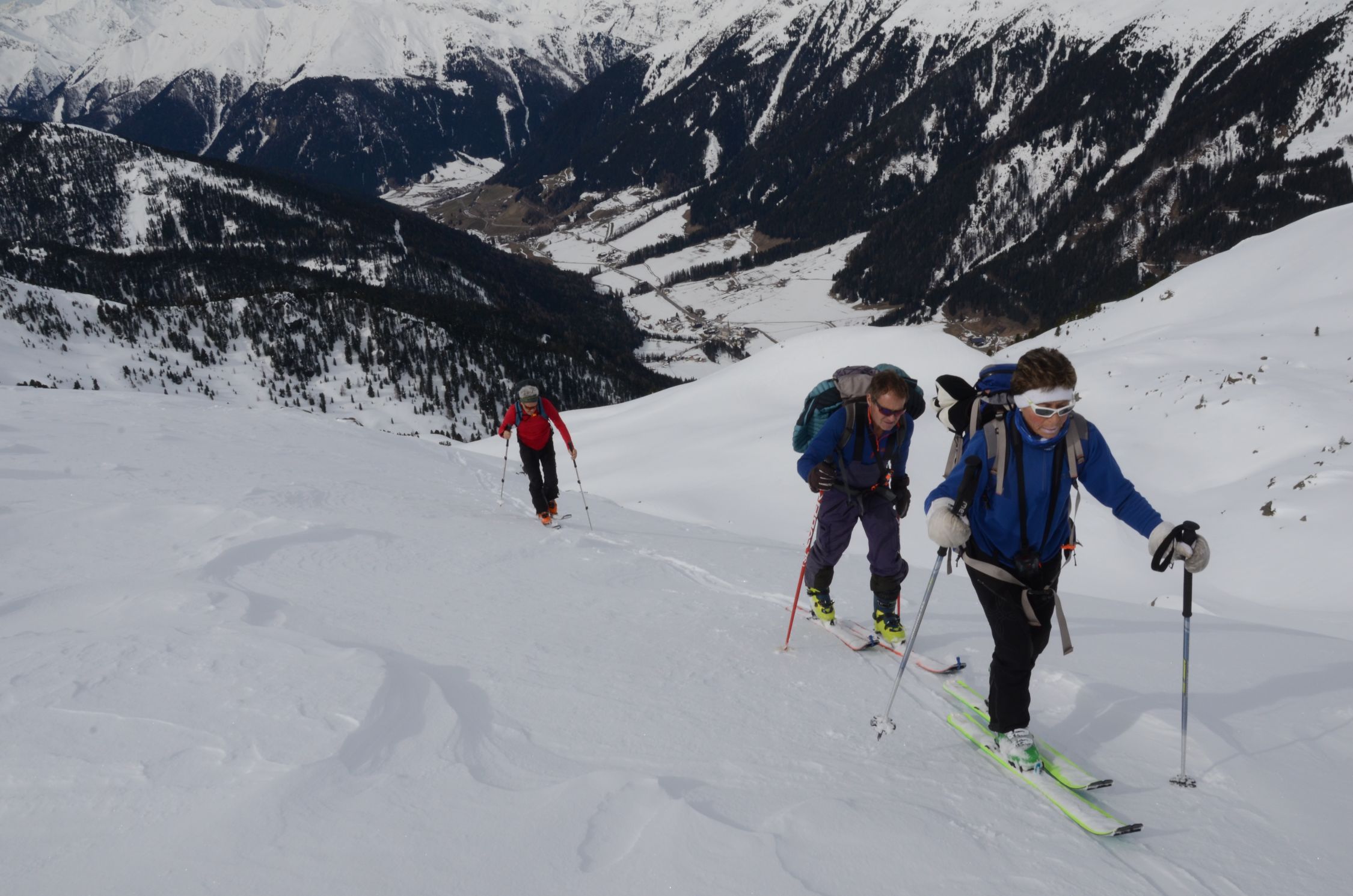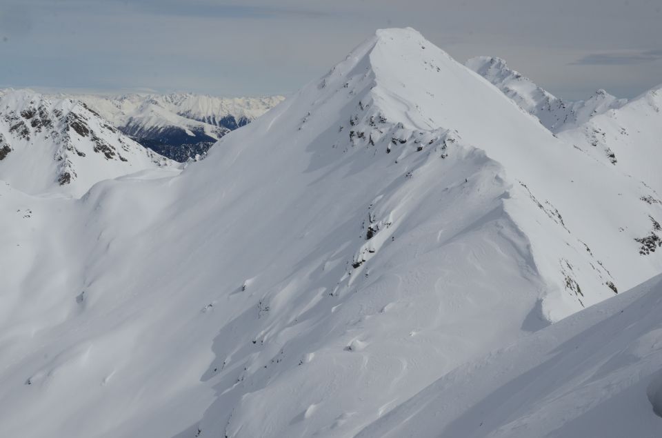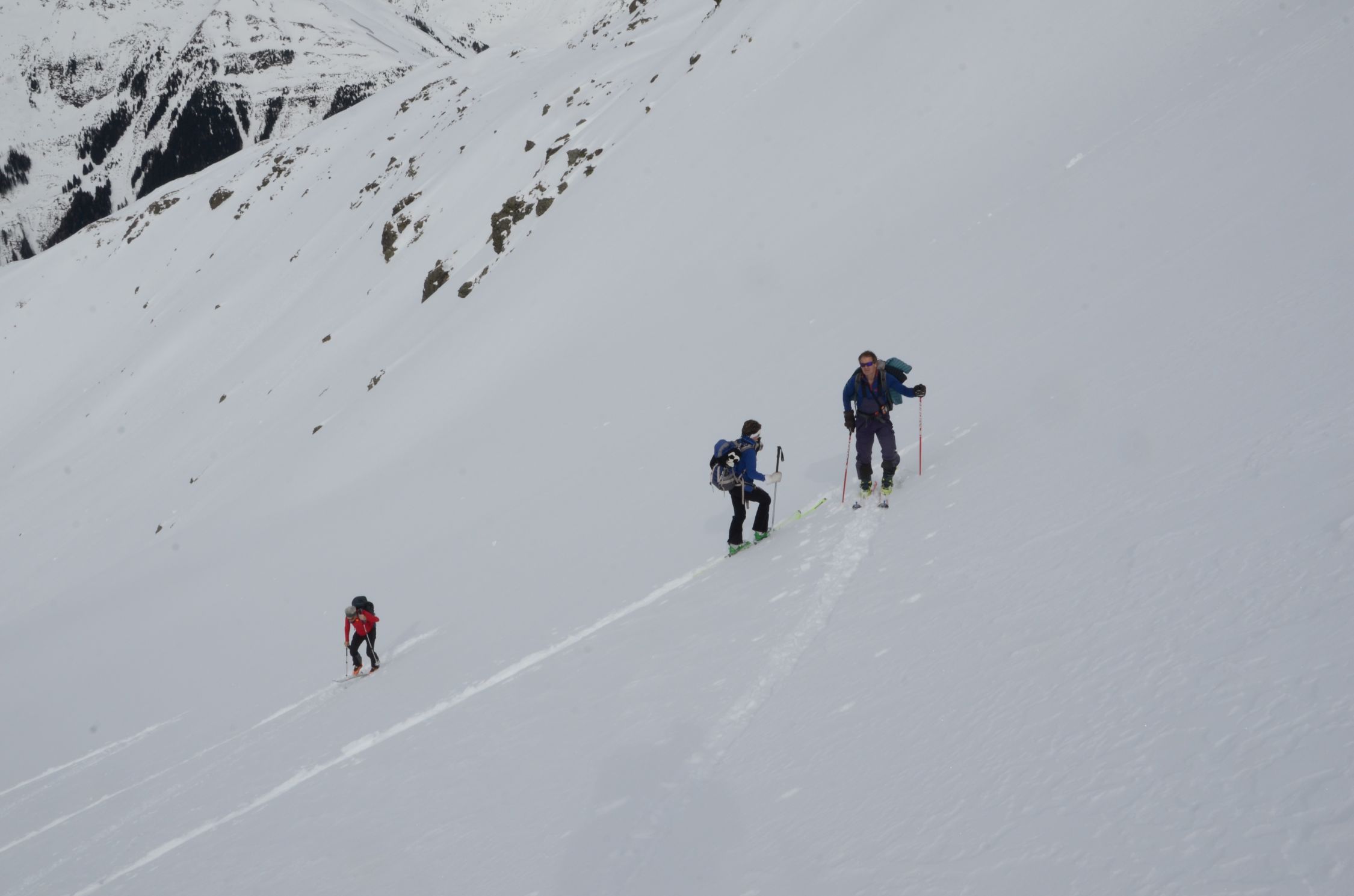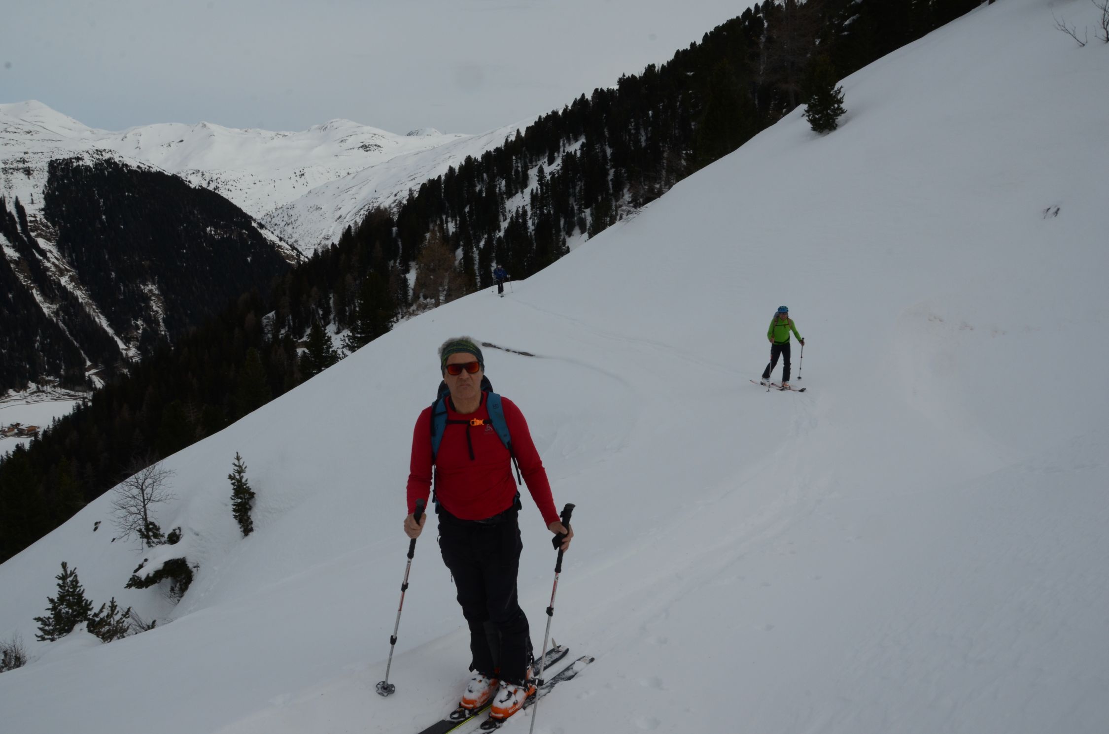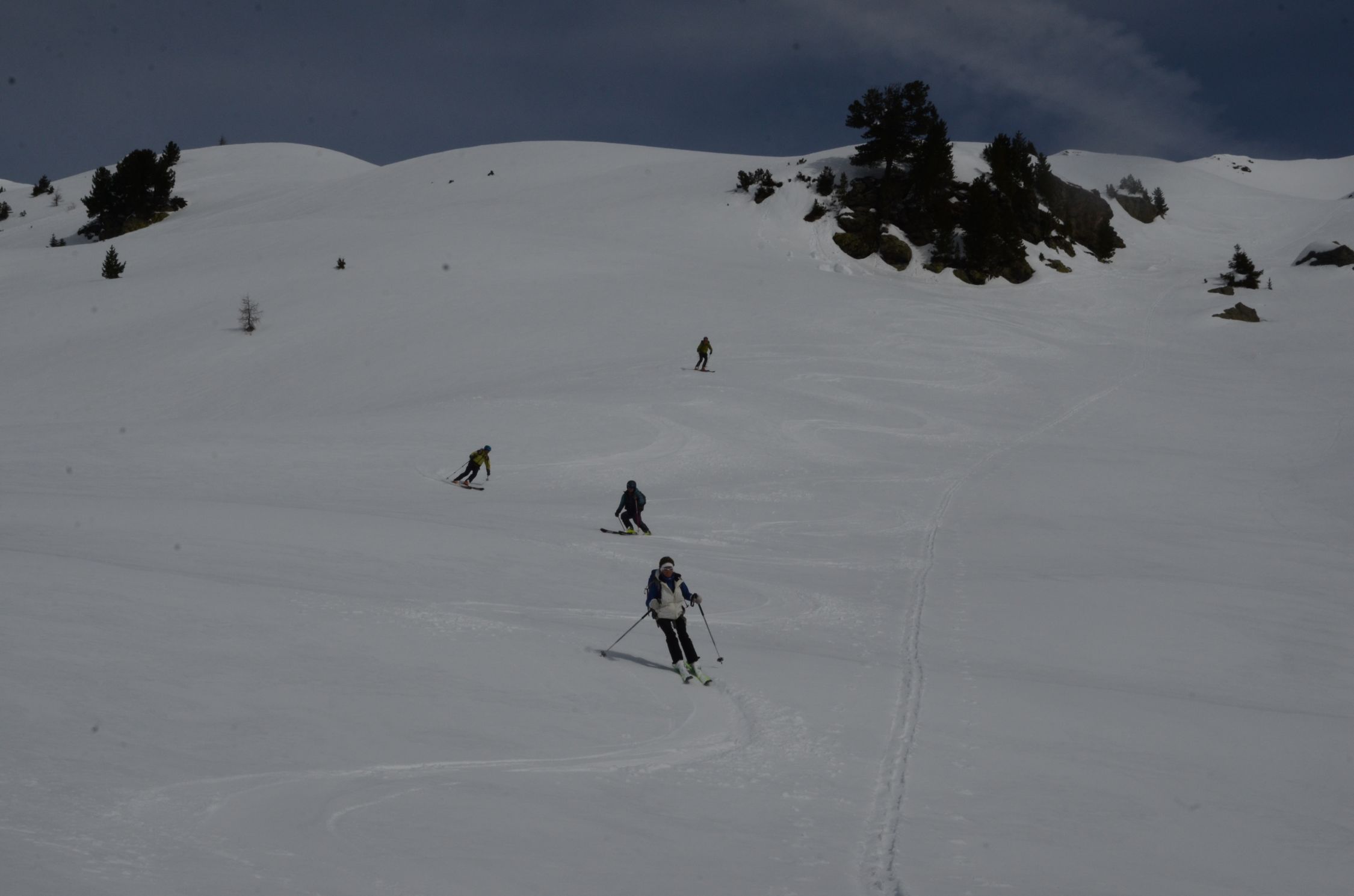Der Gipfelhang war mit einem Winddeckel versehen und musste durchbrochen werde. Nicht besonders gut, bzw. mit Kraft zu befahren. Weiter unten gab es guten Firn und erwies sich gut zu fahren.