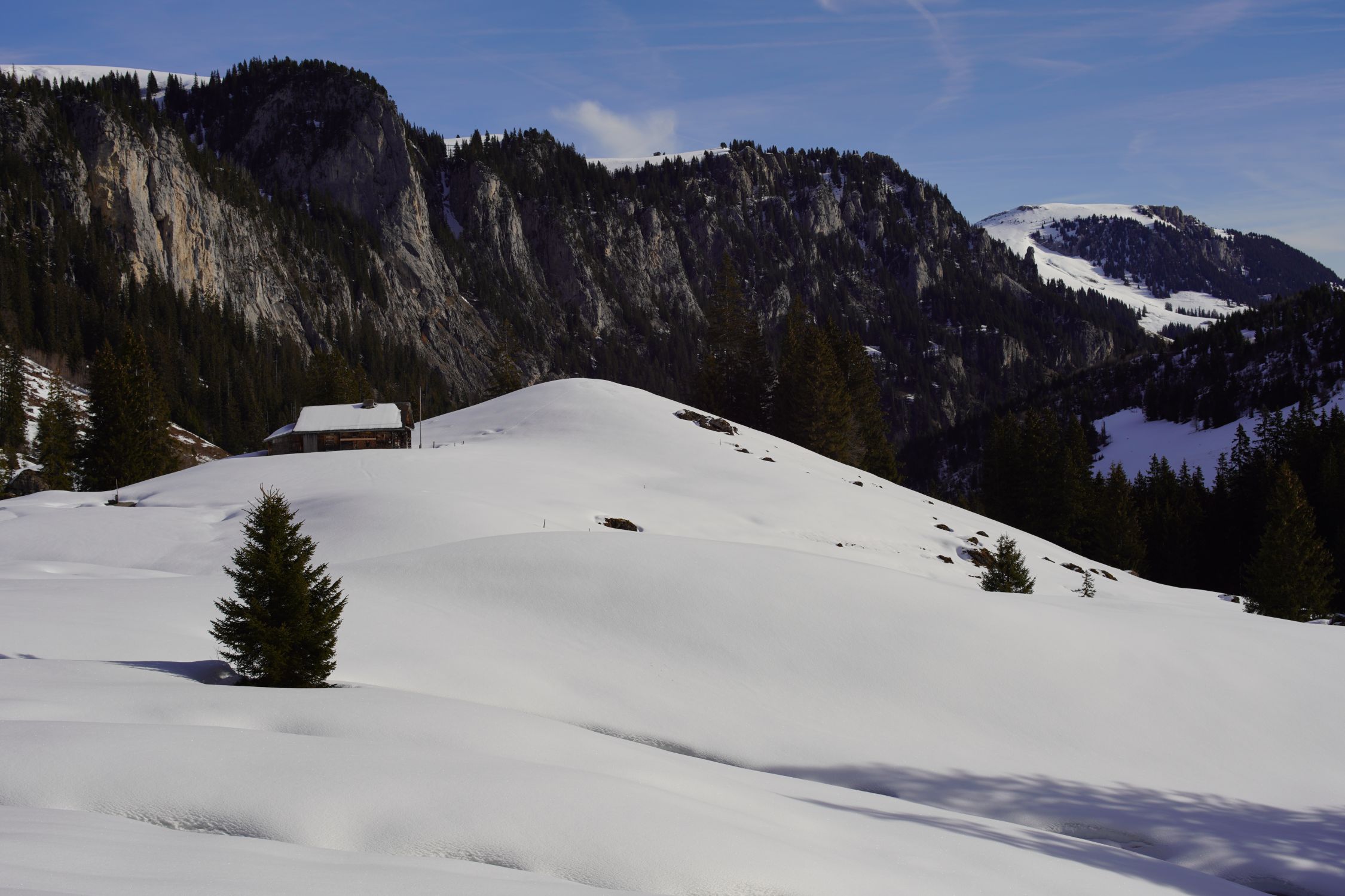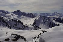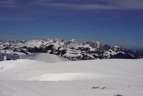 Gipfelhang sehr gut eingeschneit. Abfahrt: Gipfelhang sehr gut zu fahren, Kruste leicht aufgeweicht. Dann über den steilen Südosthang unter den Felsen direkt runter zum Pkt. 1801 sehr schwerer Nassschnee. Von dort bis Steilhang oberhalb Guetmatte mehr oder weniger stossen im nassen Bremsschnee. Nach der Waldquerung über den Steilhang direkt runter nach Untergestelen. Auch hier sehr Nass und aufgeweicht. Alpstrasse bis Brätliplatz Bremserschnee.
