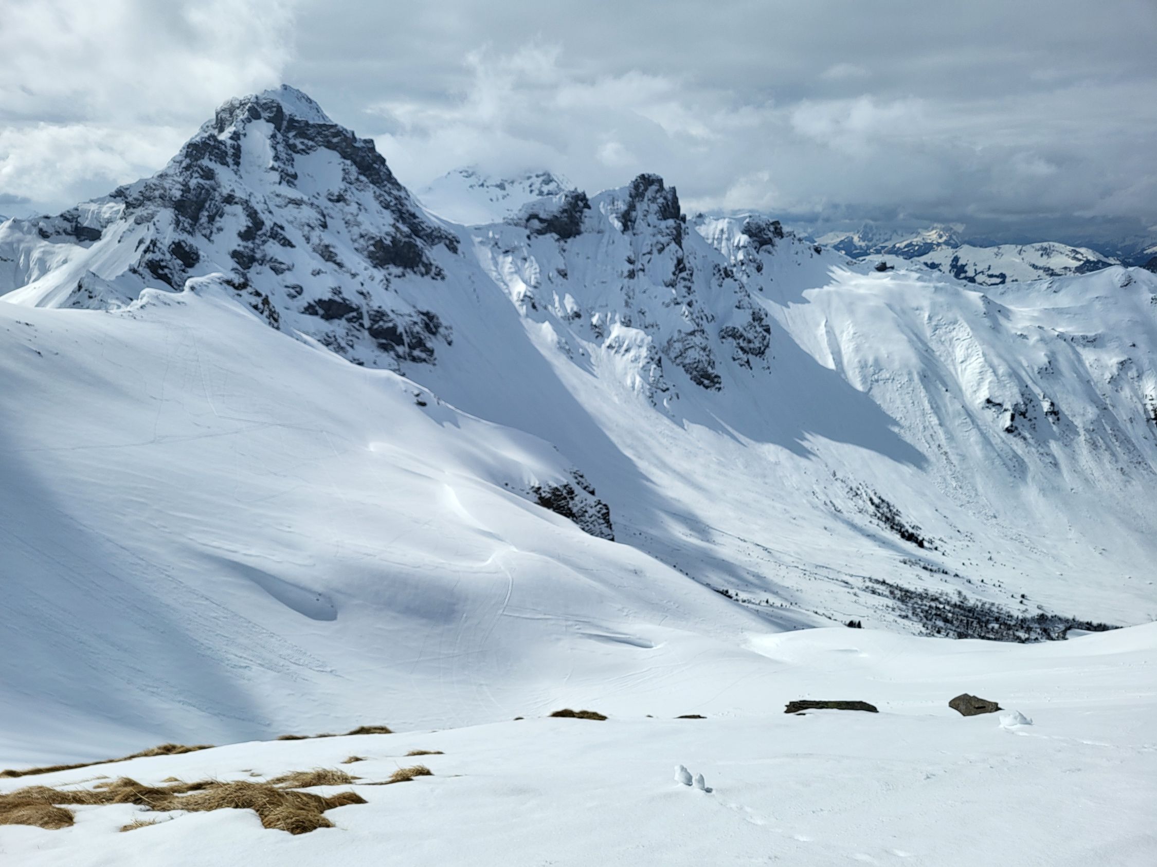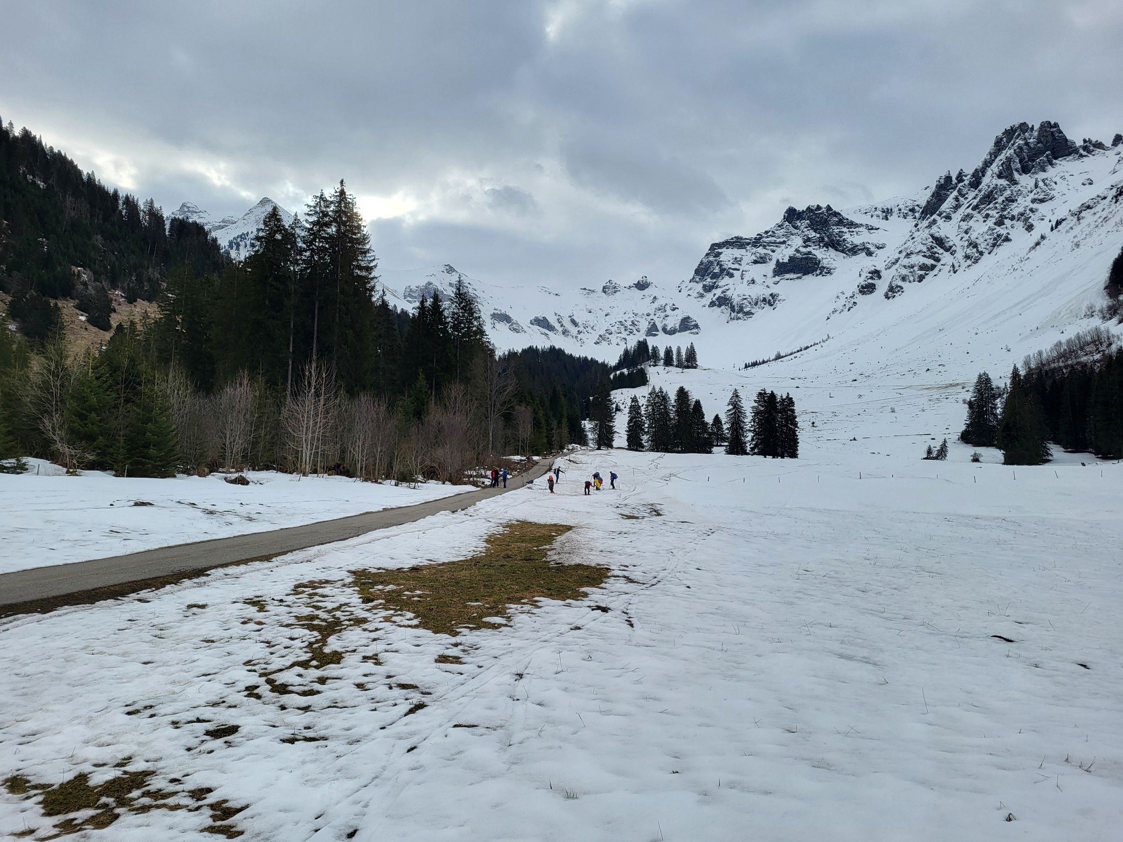 Start nach 8 Uhr beim Parkplatz der Alpkäserei Kiley. Strasse wäre geräumt, aber Fahrverbot ab dort. Zu Fuss bis nach der Brücke, ab dort genug Schnee für Aufstieg. Im oberen Teil hat es viel Schnee, aber leider sehr nass