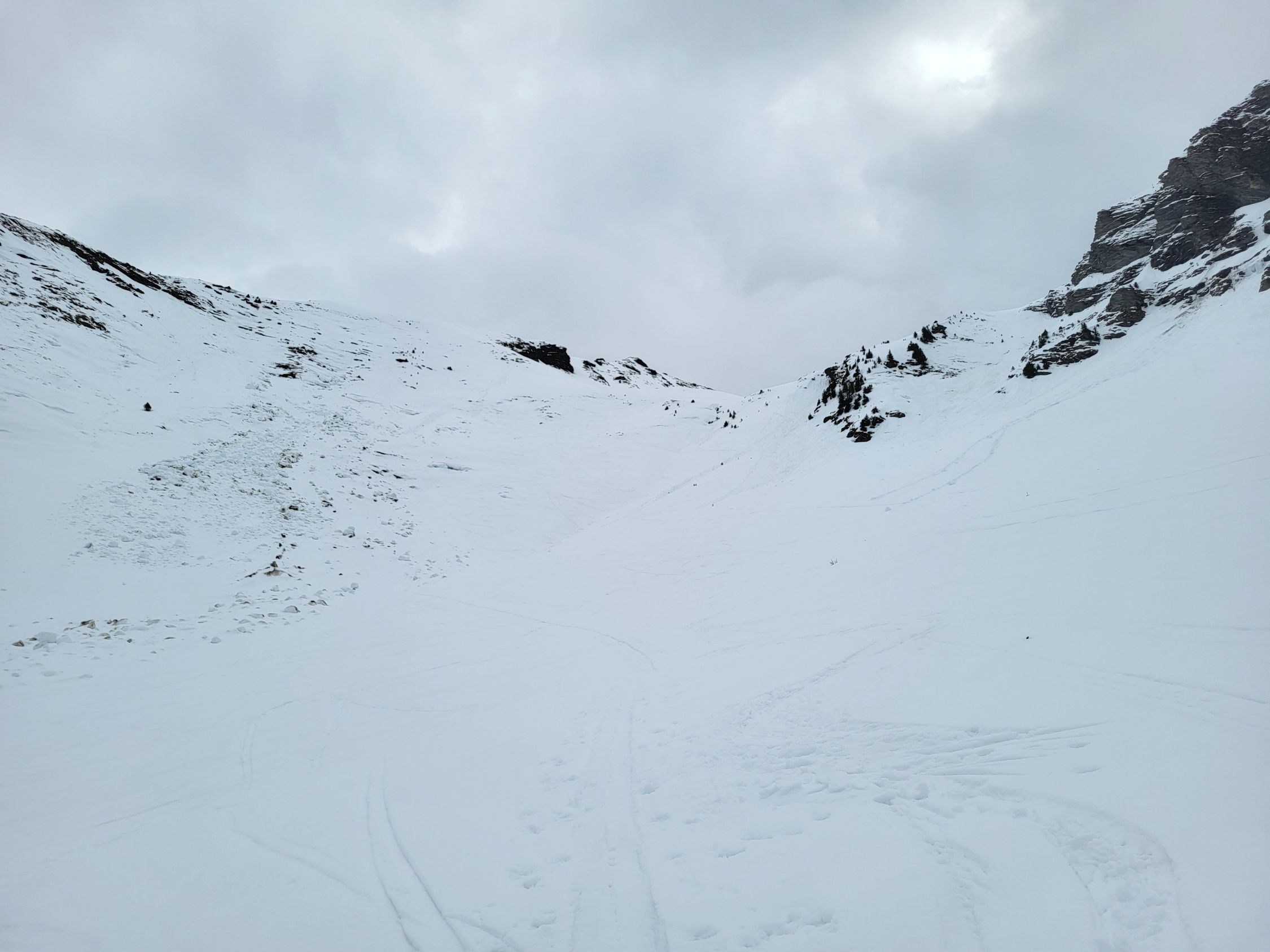 Die Abfahrt war sehr anstrengend mit dem schweren Schnee.
