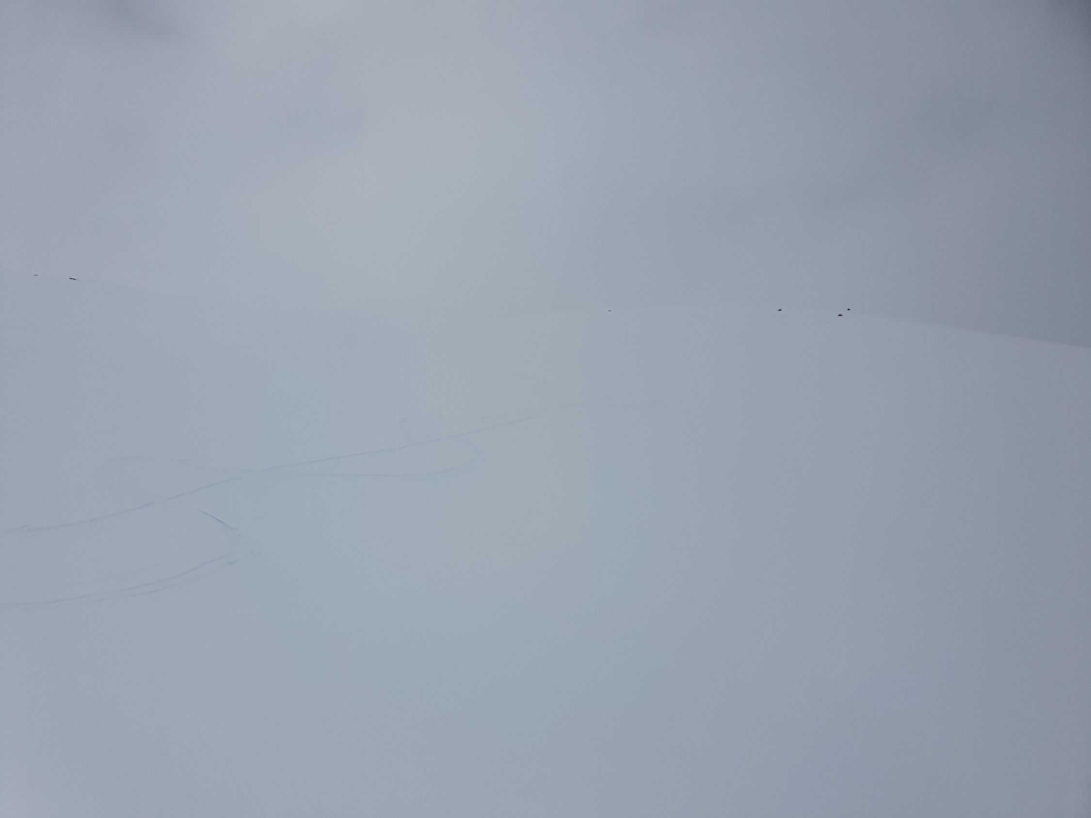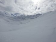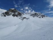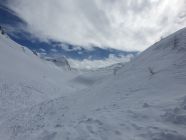 Heute war es viel zu warm. Trotzdem keine Stollenbildung und somit ein flottes forwärtskommen. Leider verschlechterte sich die Sicht im Gipfelbereich, so, dass sich der Abfahrtsgenuss, trotz tollem Sulzschnee, in grenzen hielt. Weiter unten noch immer kein Nassschnee vorhanden.
