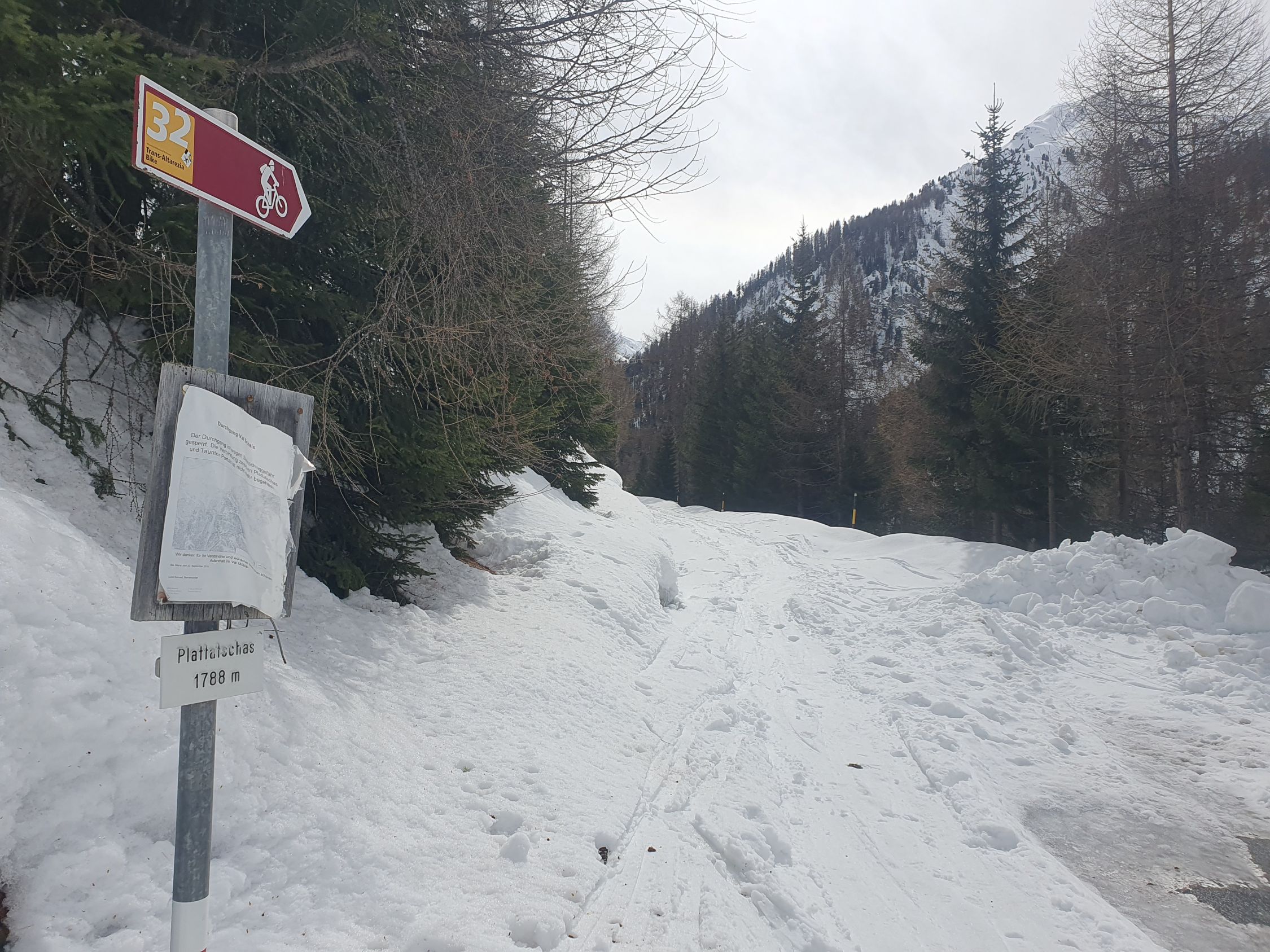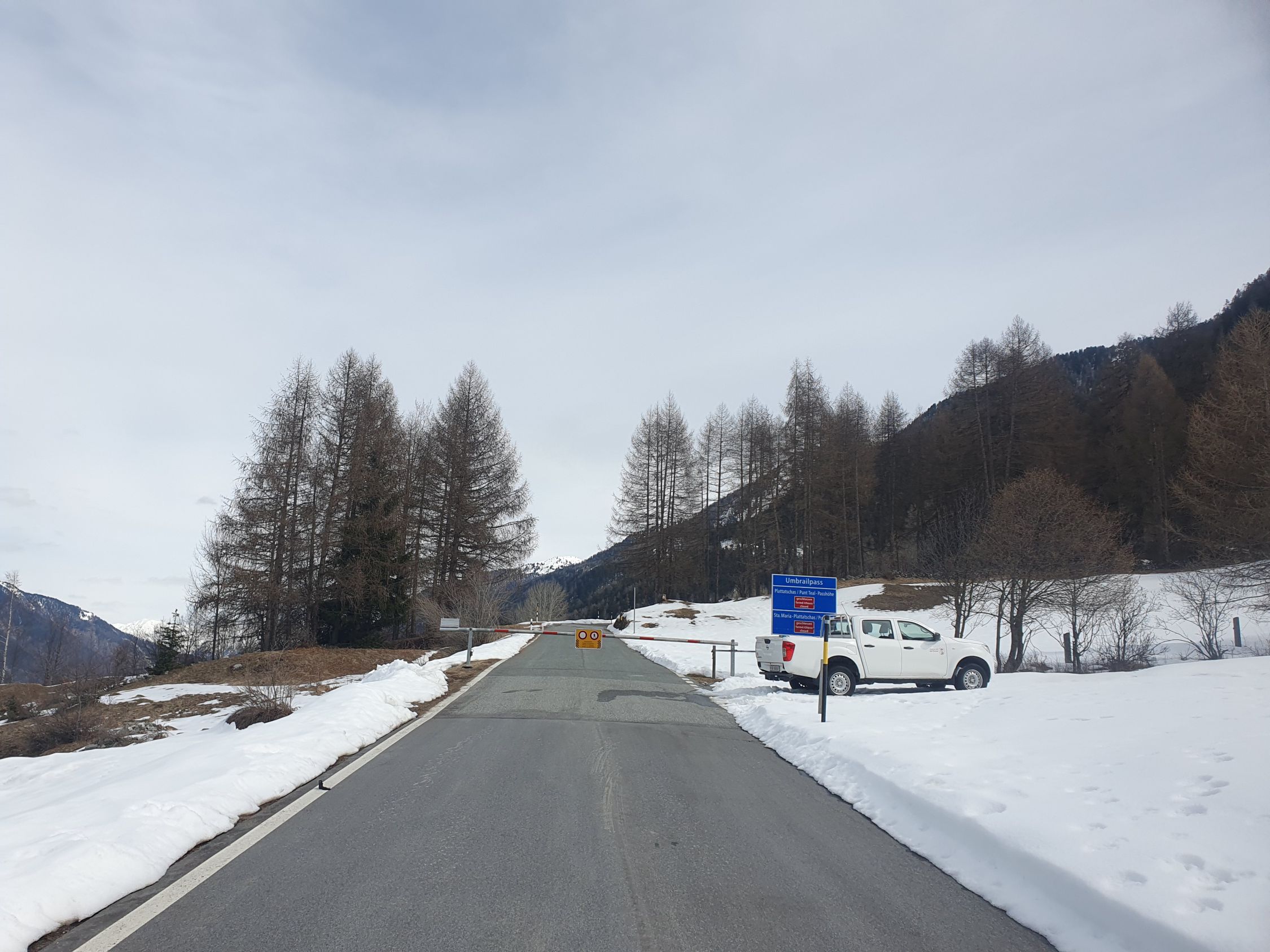 Die Umbrailstrasse ist bis Plattatschas (P1793), resp. Gasthaus Alpenrose, einspurig geräumt (und nicht wie sonst bis Punt Teal P1882). in Sta. Maria ist die Umbrailpassstrasse jedoch mit einer Barriere gesperrt. Der Schlüssel kann beim Kiosk in Sta. Maria (Abzweigung Umbrailstrasse) bezogen werden. Kostenpunkt: Fr. 10.-- / Person / Tag, minimum Fr. 30.--. Mit Gästekarte Fr. 5.-- / Person / Tag, minimum Fr. 20.--.