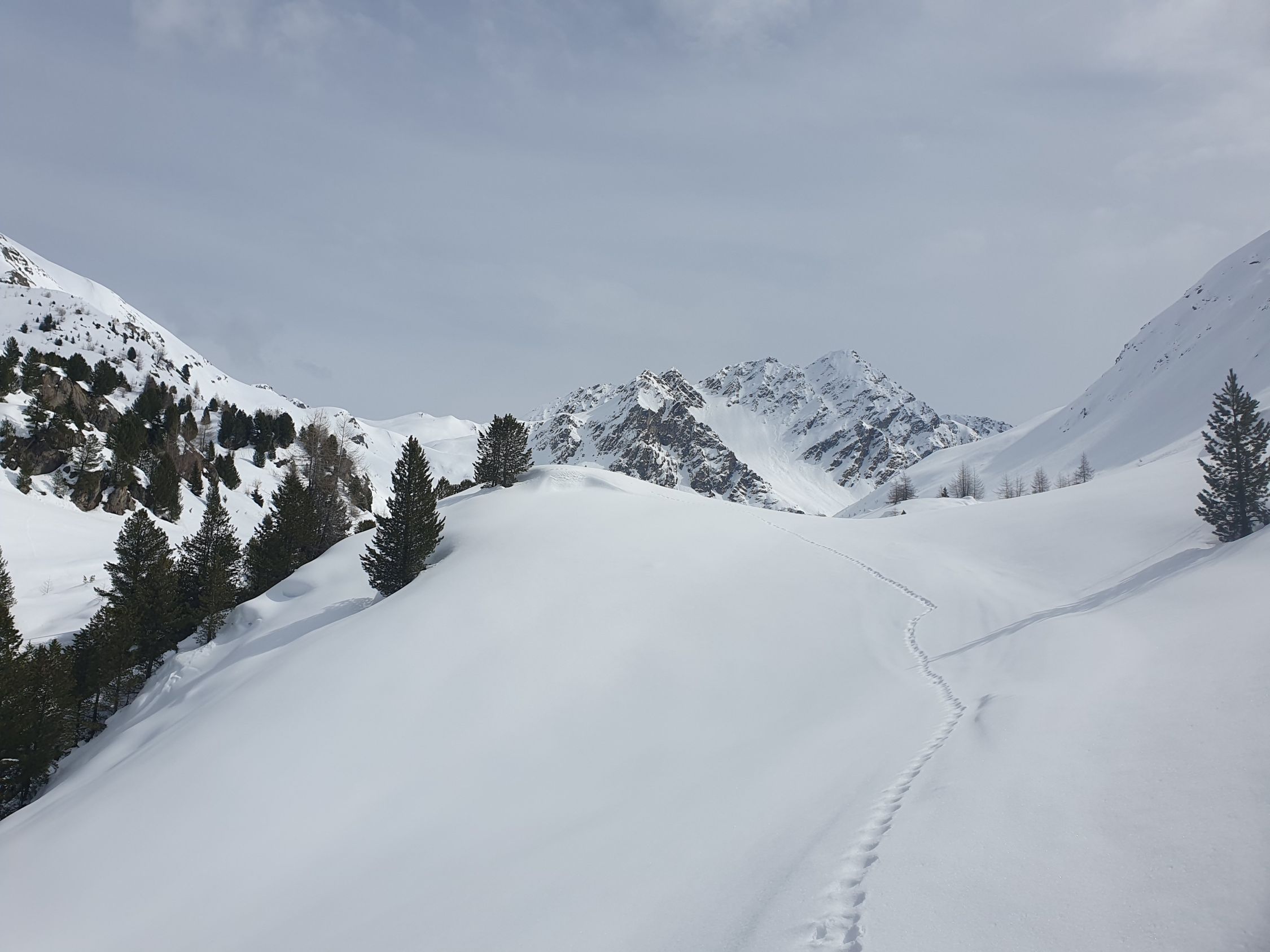 Bei der Abfahrt habe ich dann bei der Alp Prasüra (P2209) noch zwei Abfahrtsspuren gesichtet, kommend vom Piz Minschuns.