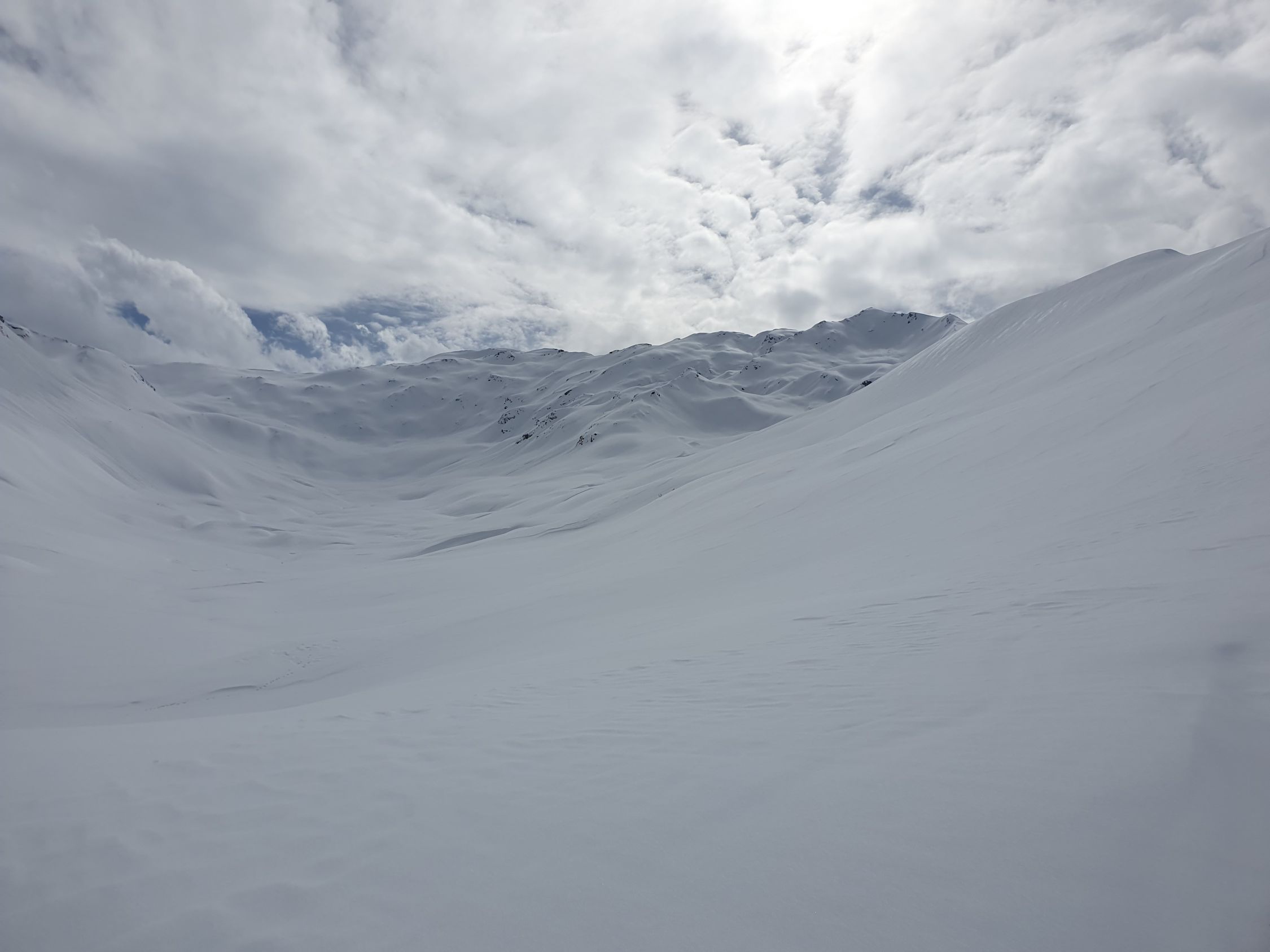 Im Val Costainas spielte ich mit dem Gedanken weiter auf dem Piz Cotschen zu gehen, doch die diffusen Lichtverhältnisse haben mich dann doch zum kürzer erreichbaren Piz Val Gronda geführt.