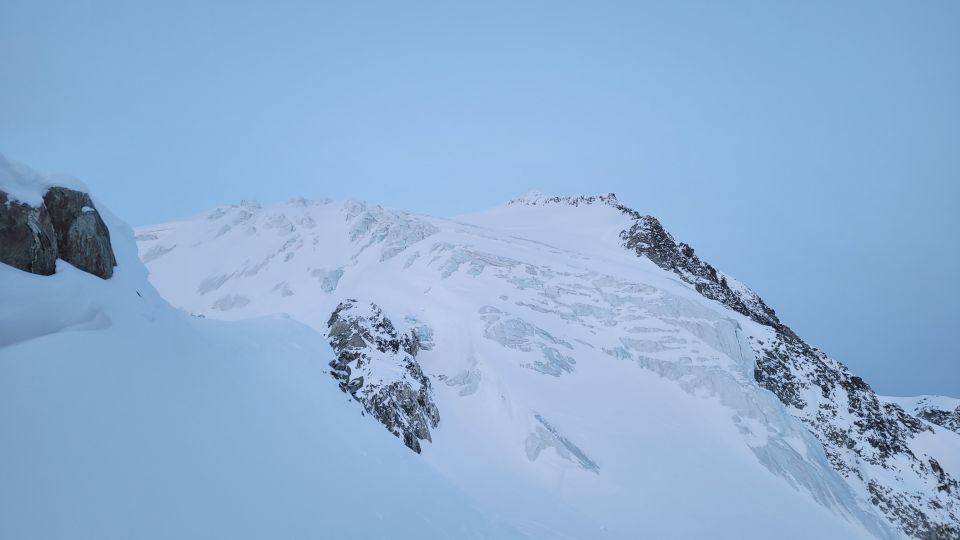 Dann unschwer in Anfangs guter Spur, später selbst gespurt da verblasen, auf den Gipfel. Kein sichtbares Spaltenproblem. Wir hatten das Seil dabei aber nicht genutzt.