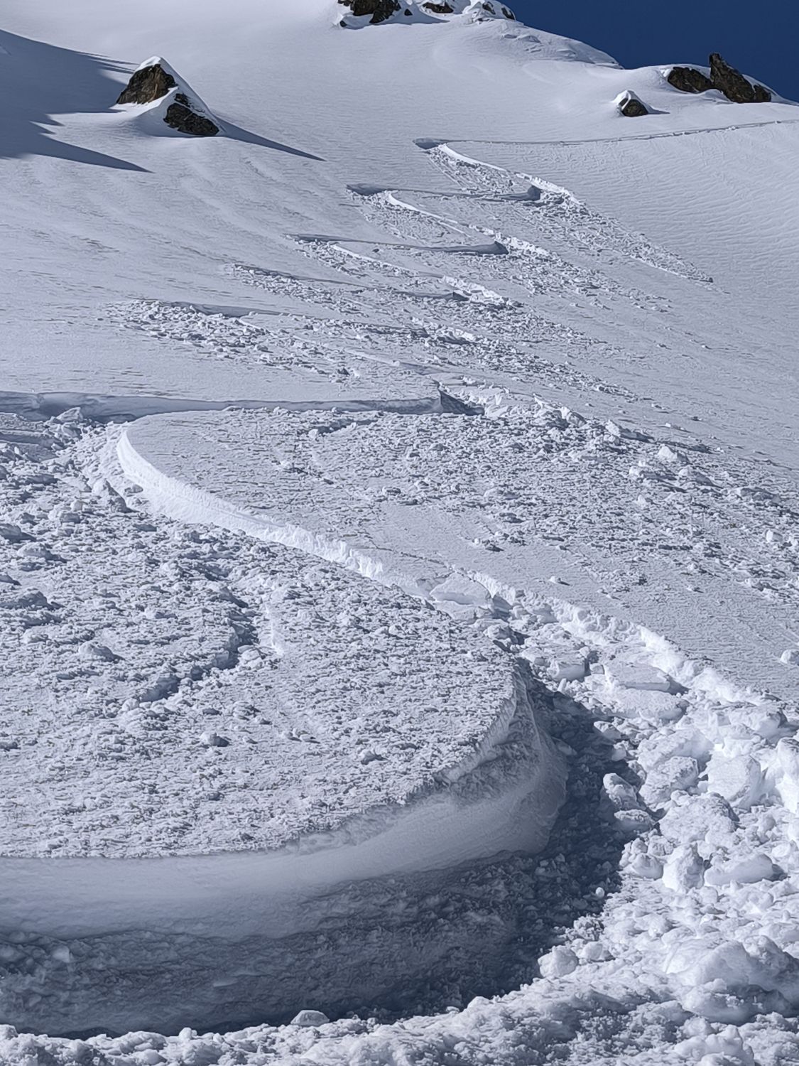 Triebschnee im steilen Gelände sollte man beachten. Siehe private Bilder...in dem Fall nichts passiert. Und für den Betroffenen Glück gehabt.