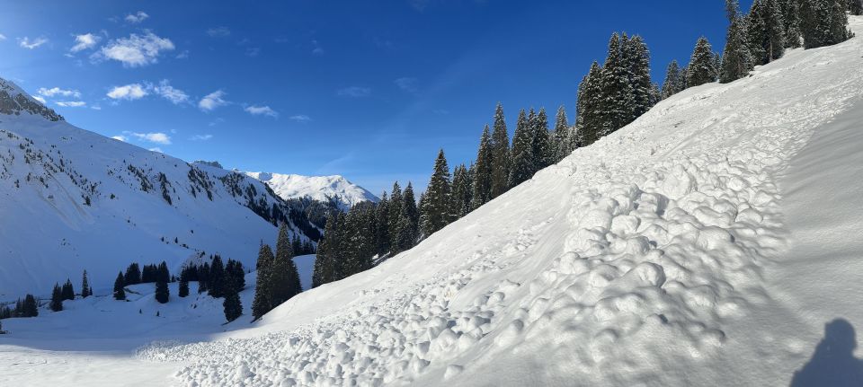 am Gipfel ca. 10 cm Pulver . Viele Locker- Nassschnee Lawienen von der Sulzfluh- Südwand .